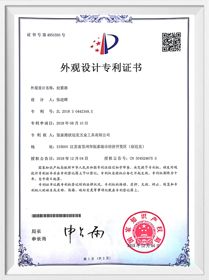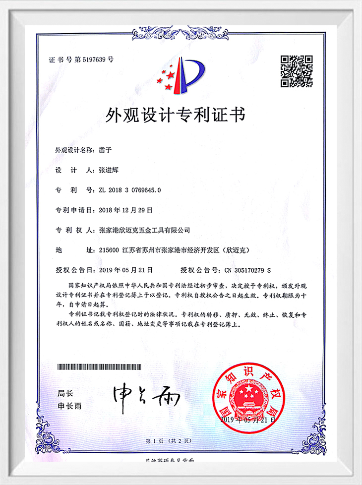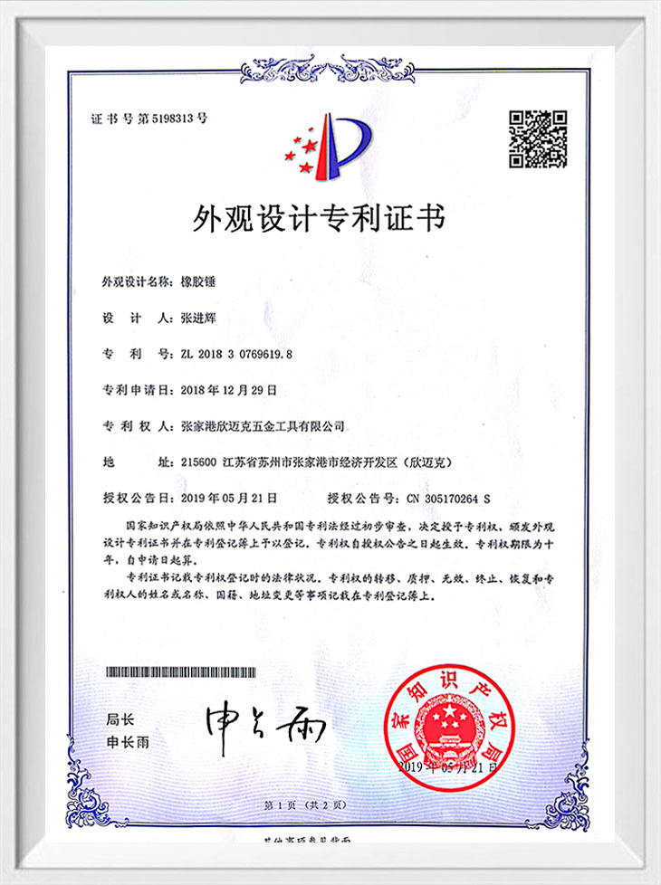 Sertipiko ng Patent ng Hitsura