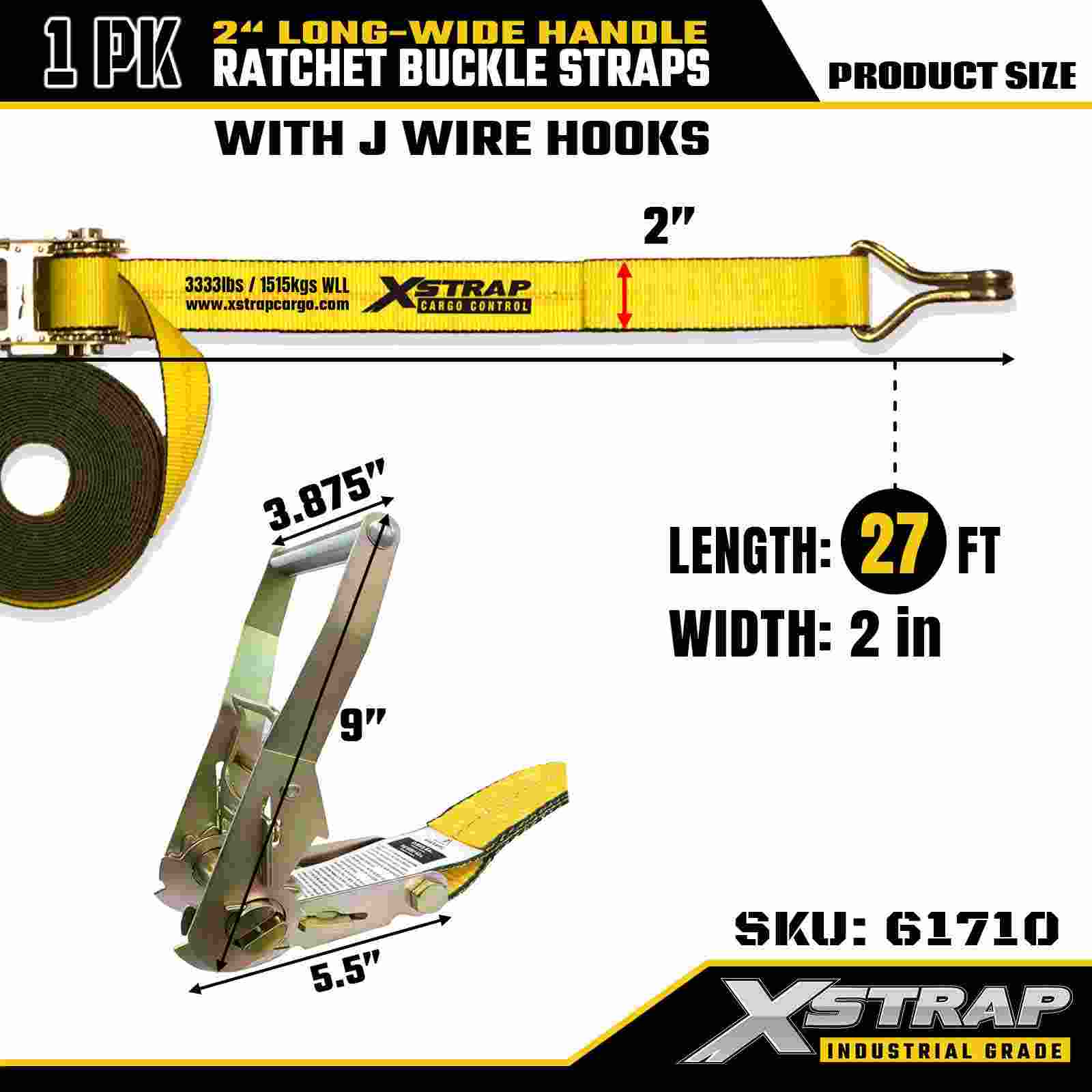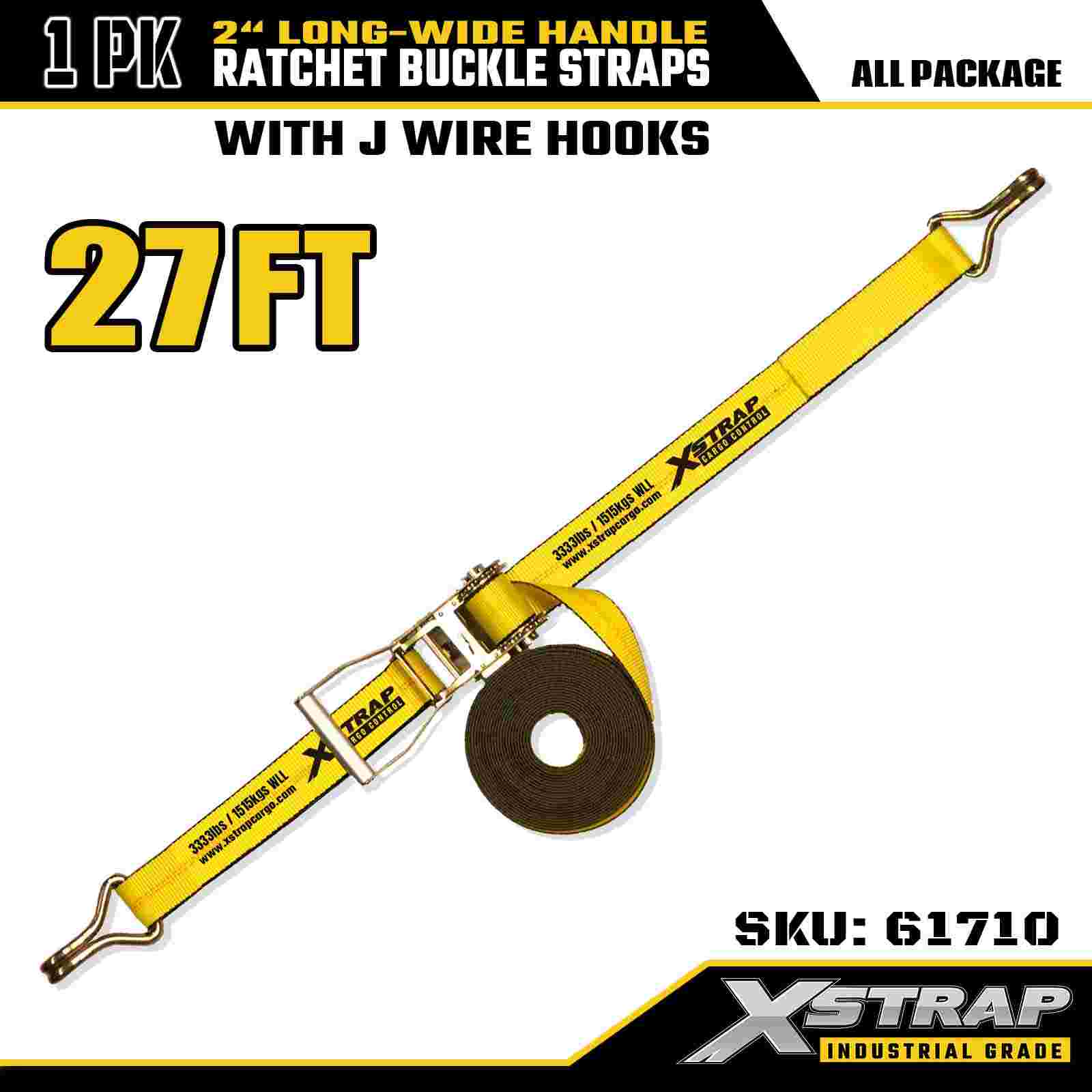 Xstrap 61710 Premium Ratchet Tie Down 2" x 27ft (1-Pack) 10000 LBS Break Strength Double J Hook Cargo Straps Perpekto para sa Paglipat ng Appliances, Lawn Equipment at Motorsiklo