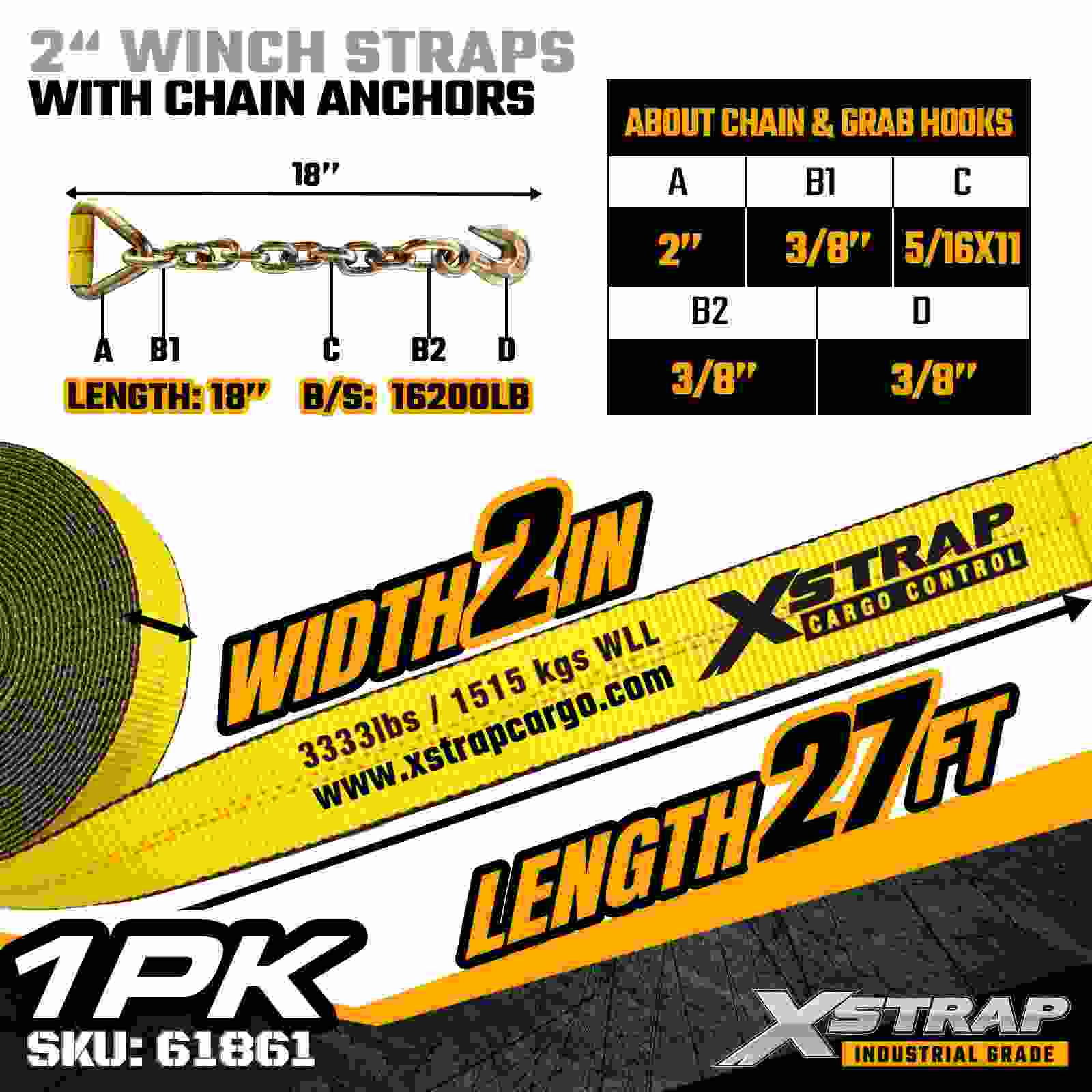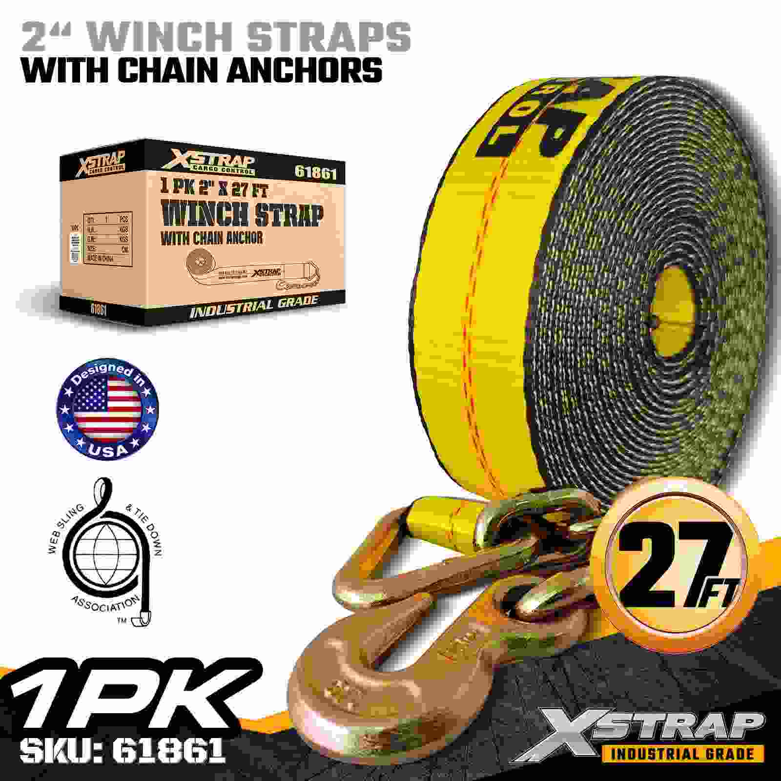 2" × 27ft Standard Winch Strap na may Chain Anchors