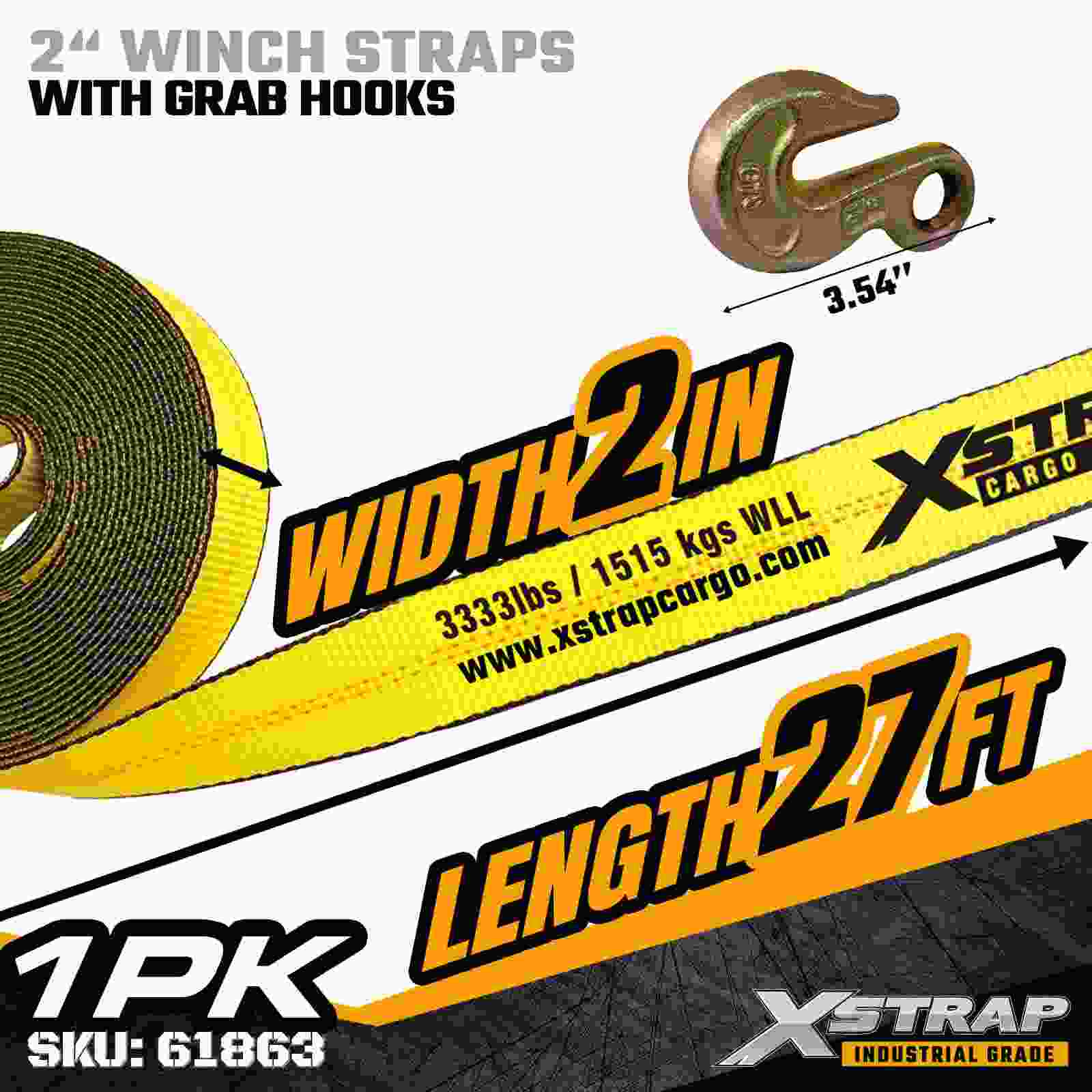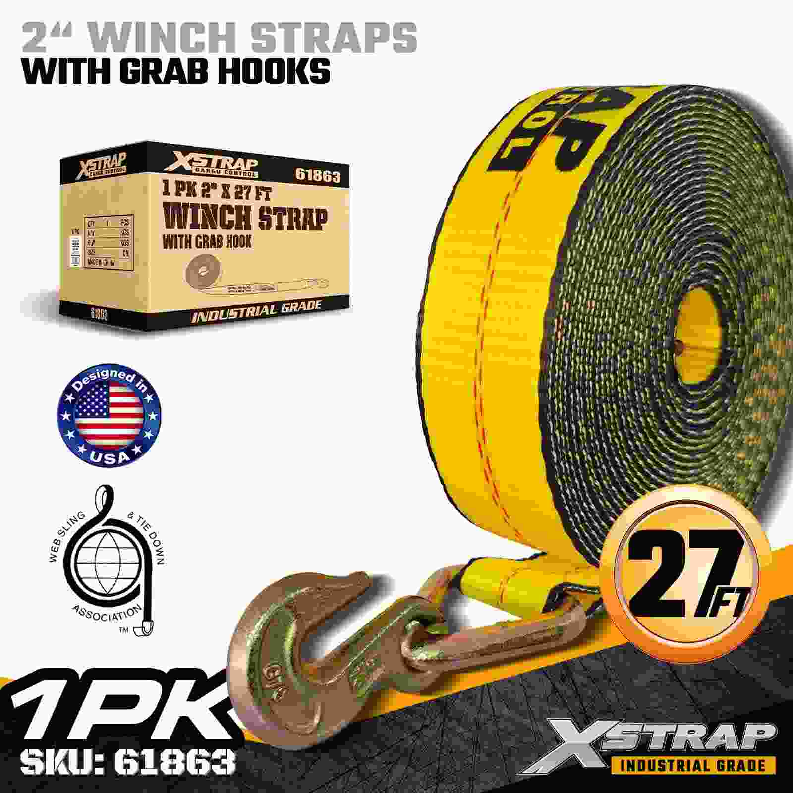 2" × 27ft Standard Winch Strap na may Grab Hook