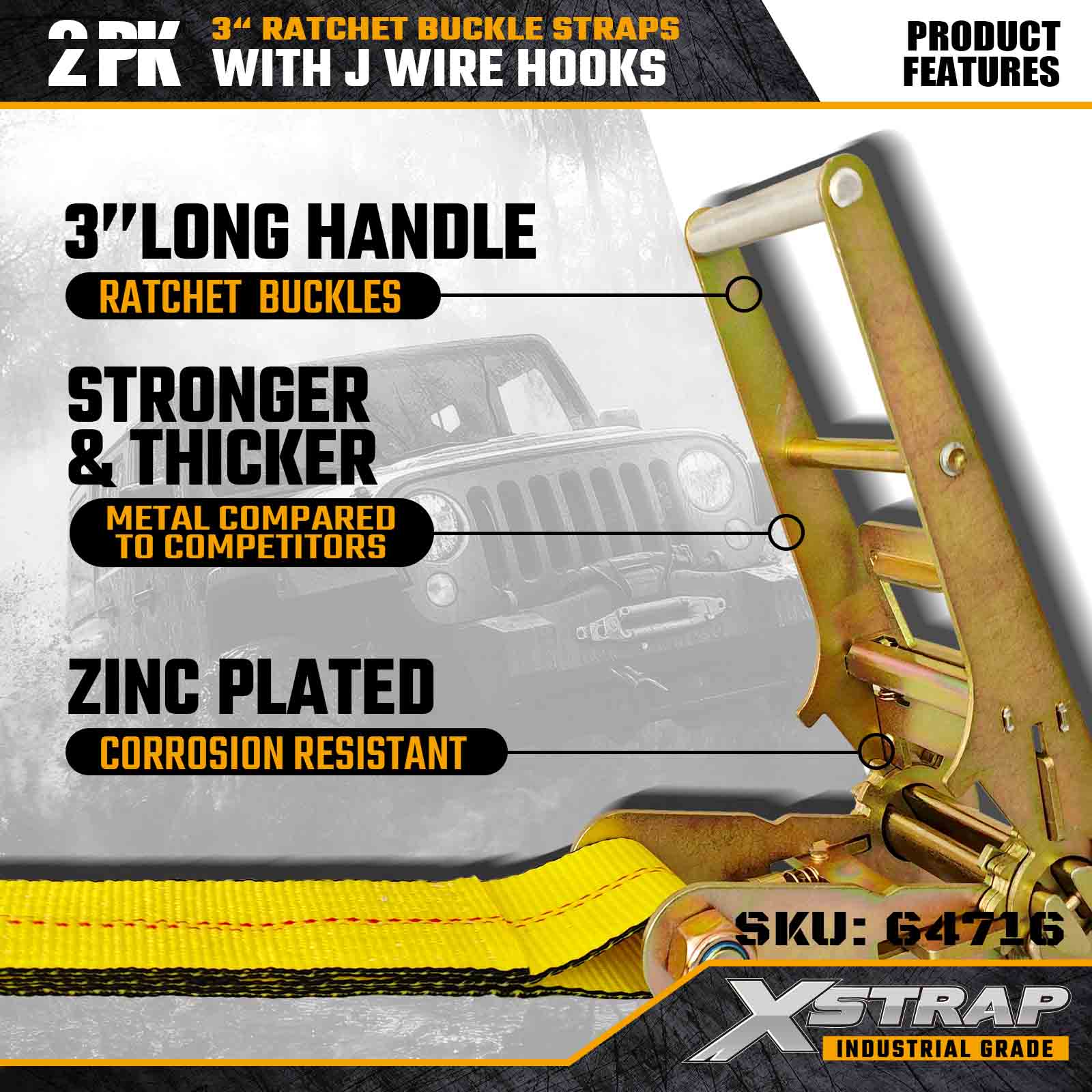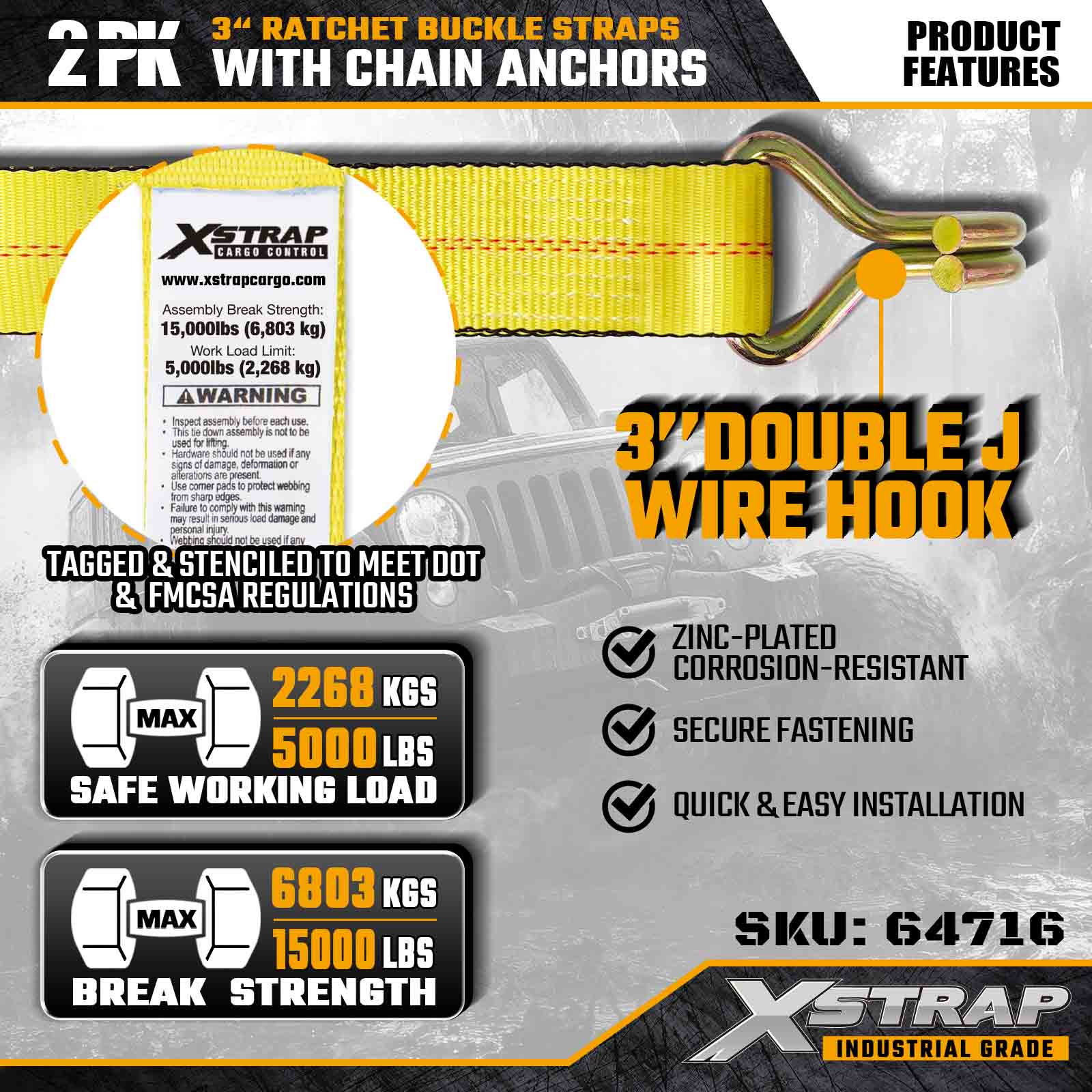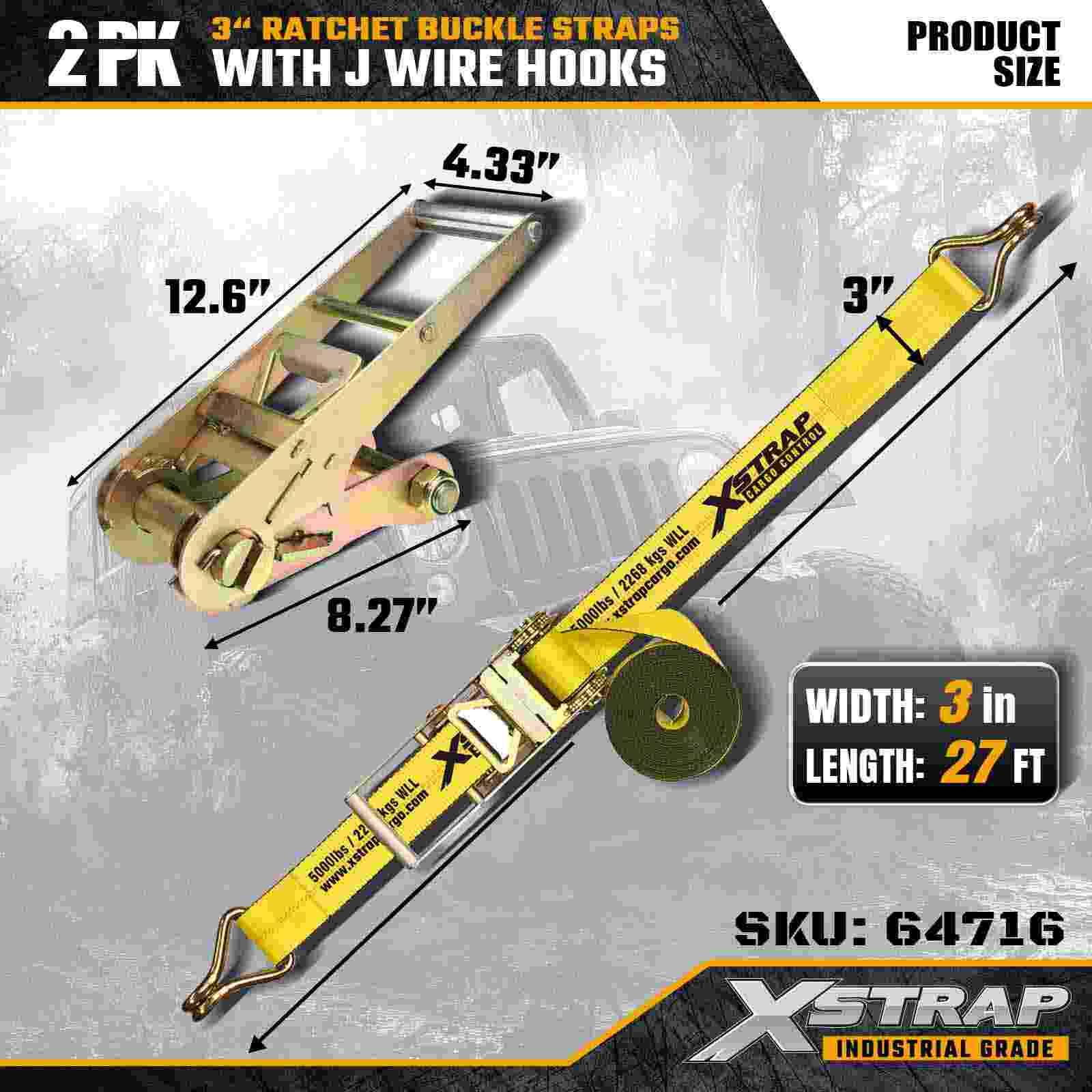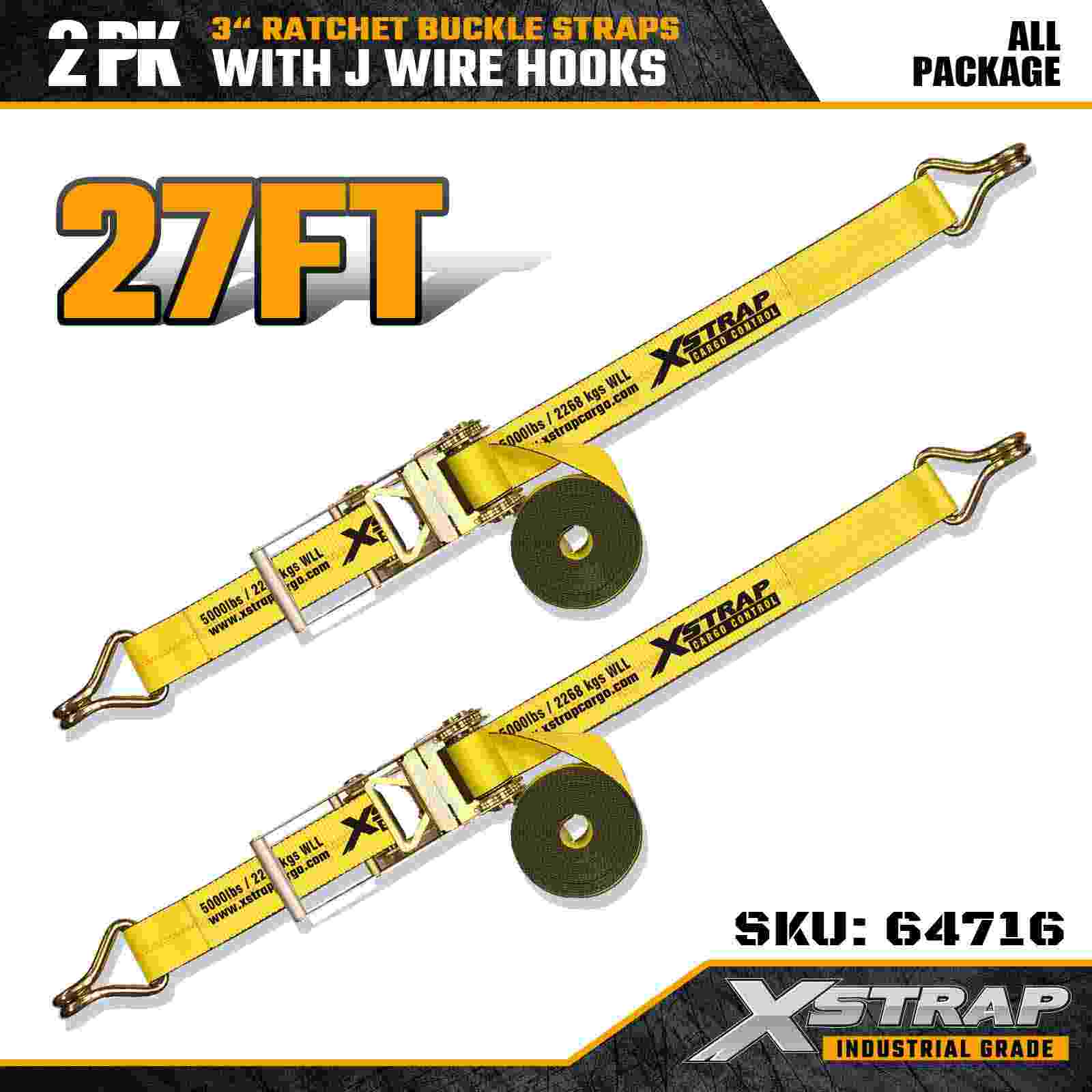 Ang Xstrap 64716 3" × 27ft Ratchet Buckle Straps (2-Pack) ay idinisenyo para sa propesyonal na pag-secure ng kargamento, na nagtatampok ng mga high-strength Mga Kawit ng Kawad at isang matibay na mekanismo ng ratchet. May 5,000 lbs na Working Load Limit at 15,000 lbs na Break Strength, ang mga kagamitang ito ay naghahatid ng mga flatbed na pang-industriya na gumagana, ang mga kagamitang ito ay naghahatid ng mga flatbed.