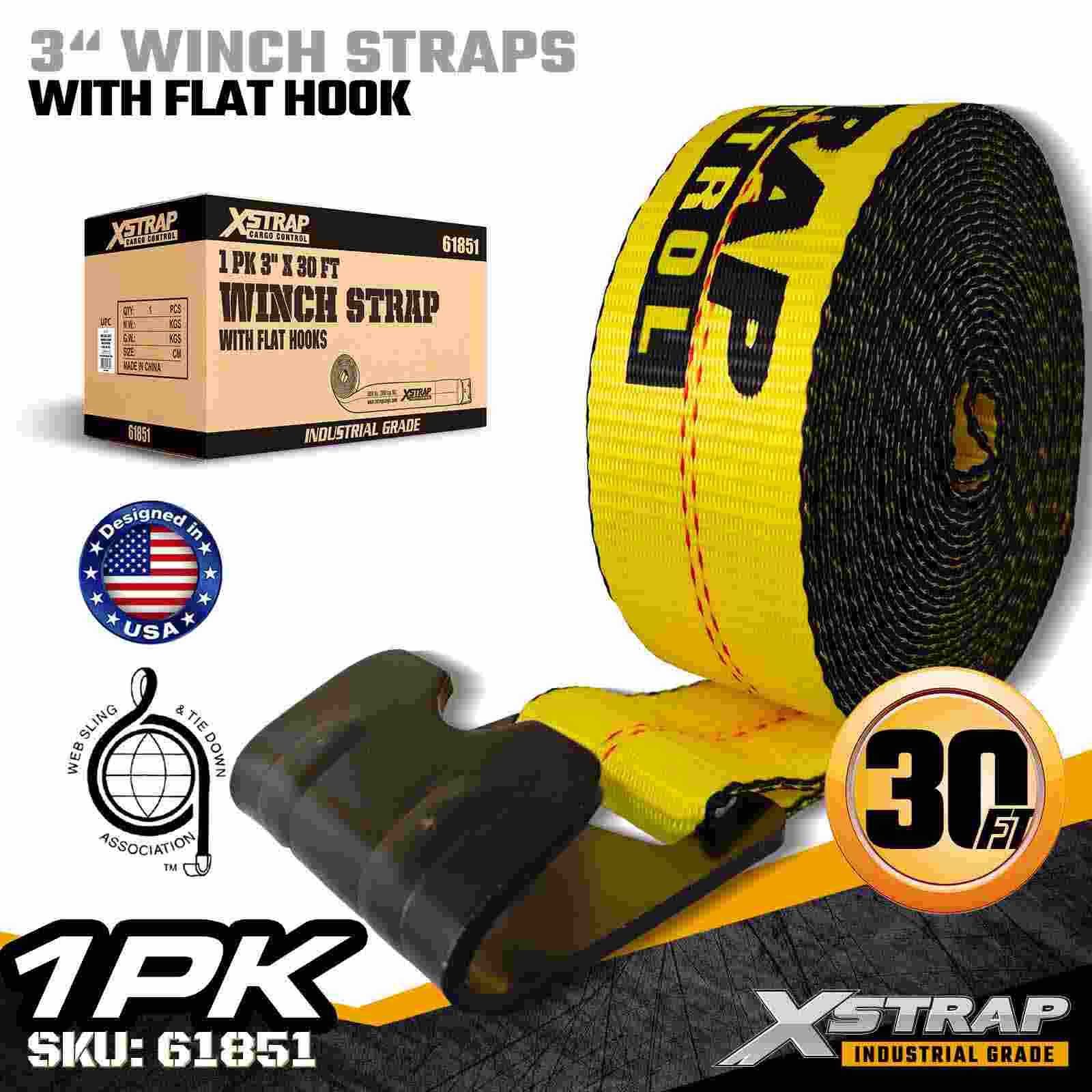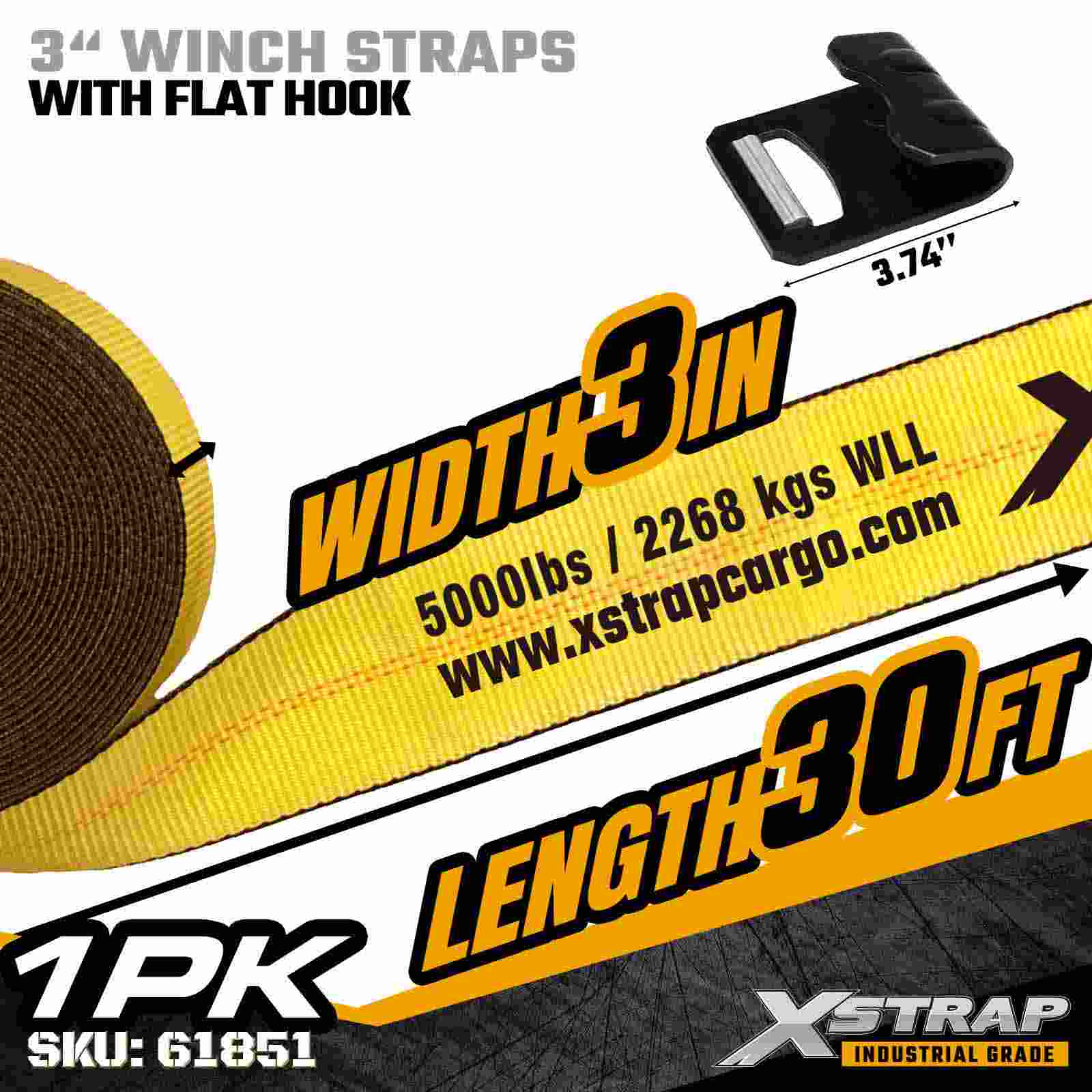3" × 30ft Standard Winch Strap na may Flat Hook