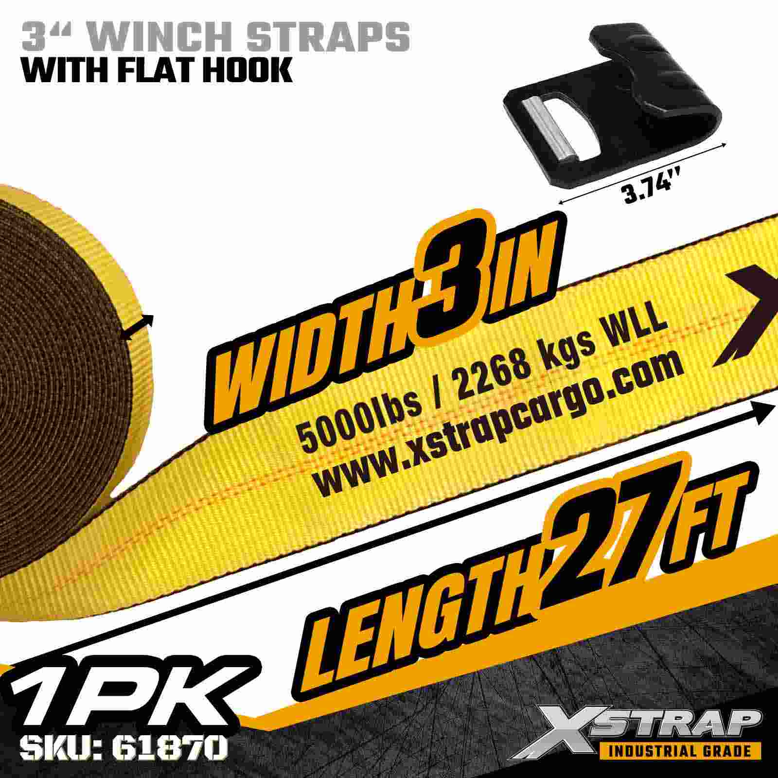 Ang Xstrap 61870 3" × 27ft Standard Winch Strap ay isang heavy-duty na cargo securement strap na idinisenyo para sa mga flatbed trailer at high-capacity na transportasyon. Nagtatampok ng reinforced Flat Hook at extra-wide 3-inch polyester webbing, ang 3 inch winch strap na ito ay naghahatid ng 5,000 lbs. Ito ay mainam para sa pag-secure ng tabla, bakal, makinarya, at pang-industriya na kargamento sa panahon ng hinihingi na mga operasyon ng paghakot.