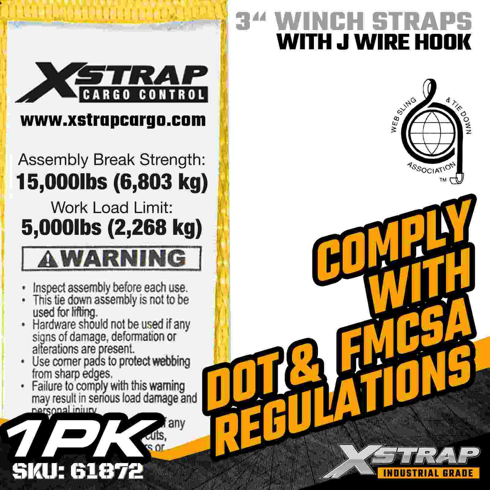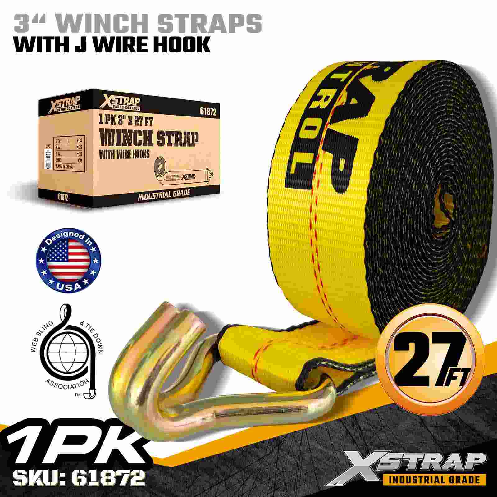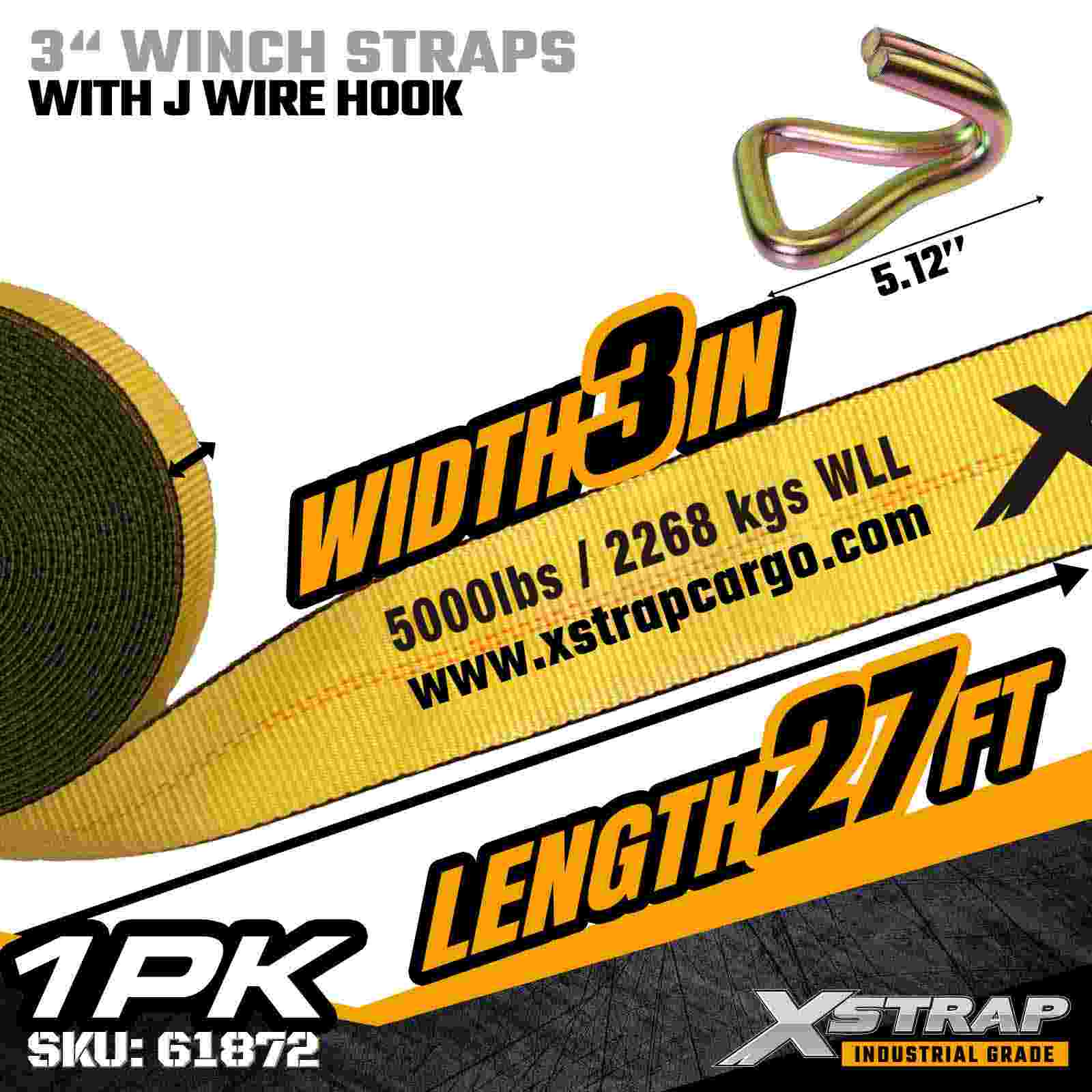 3" × 27ft Standard Winch Strap na may Wire Hook