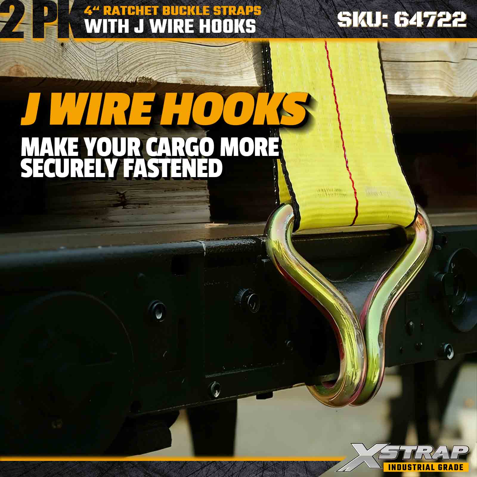 Ang Xstrap 64722 4" × 27ft Ratchet Buckle Straps (2-Pack) ay idinisenyo para sa heavy-duty na pag-secure ng kargamento, na nagtatampok ng reinforced Mga Kawit ng Kawad at isang matibay na mekanismo ng ratchet. May 6,000 lbs na Working Load Limit at 18,000 lbs na kargamento, tamang-tama para sa mga flatbed na transportasyon, ang mga flatbed na Lakas ng Break, ang mga strabed na ito ay mahusay para sa strabed na transportasyon. load, at pang-industriya na mga aplikasyon ng kargamento.