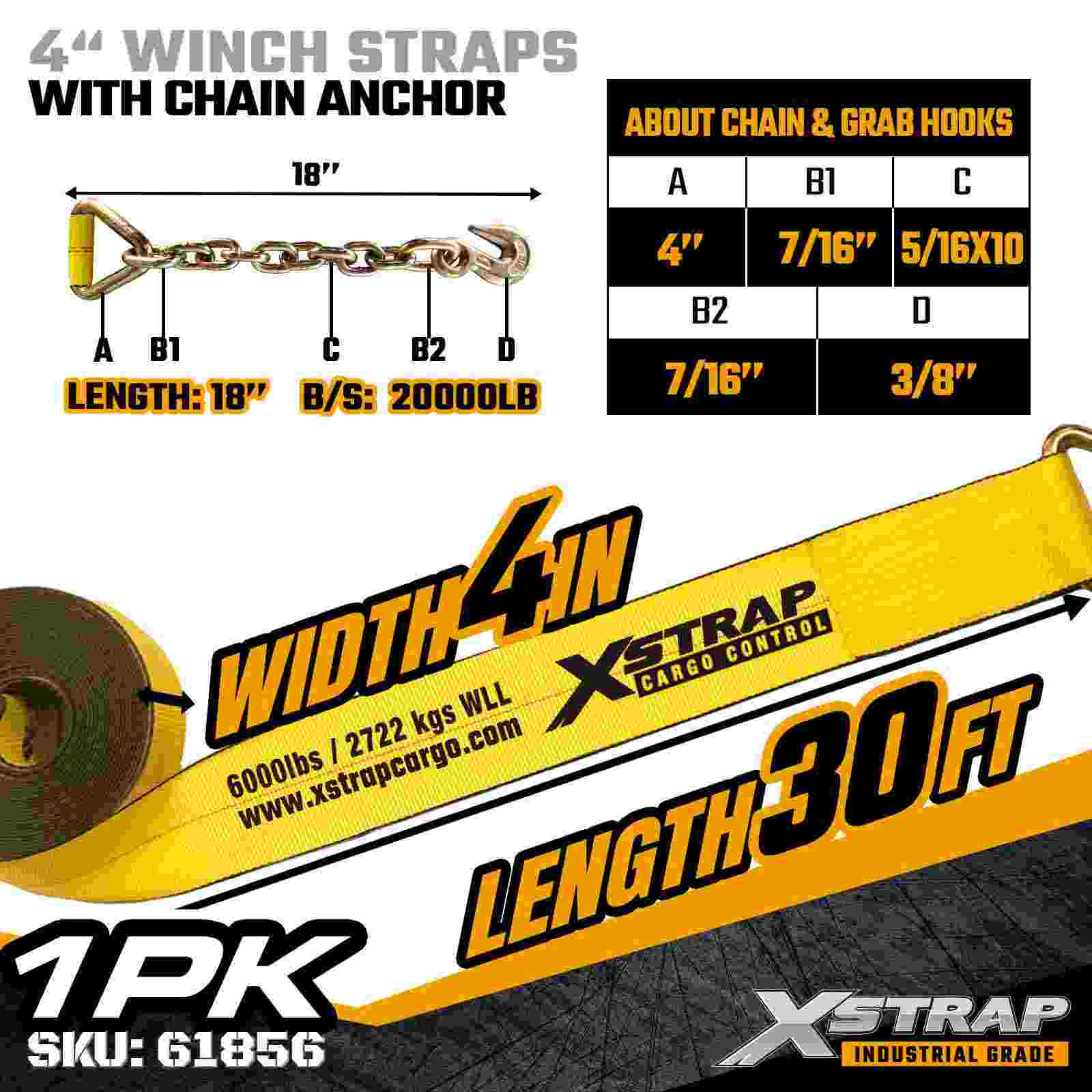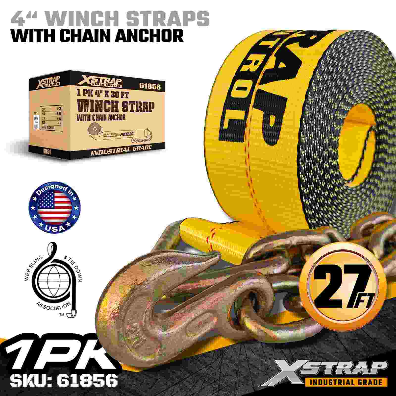4" × 30ft Standard Winch Strap na may Chain Anchor
