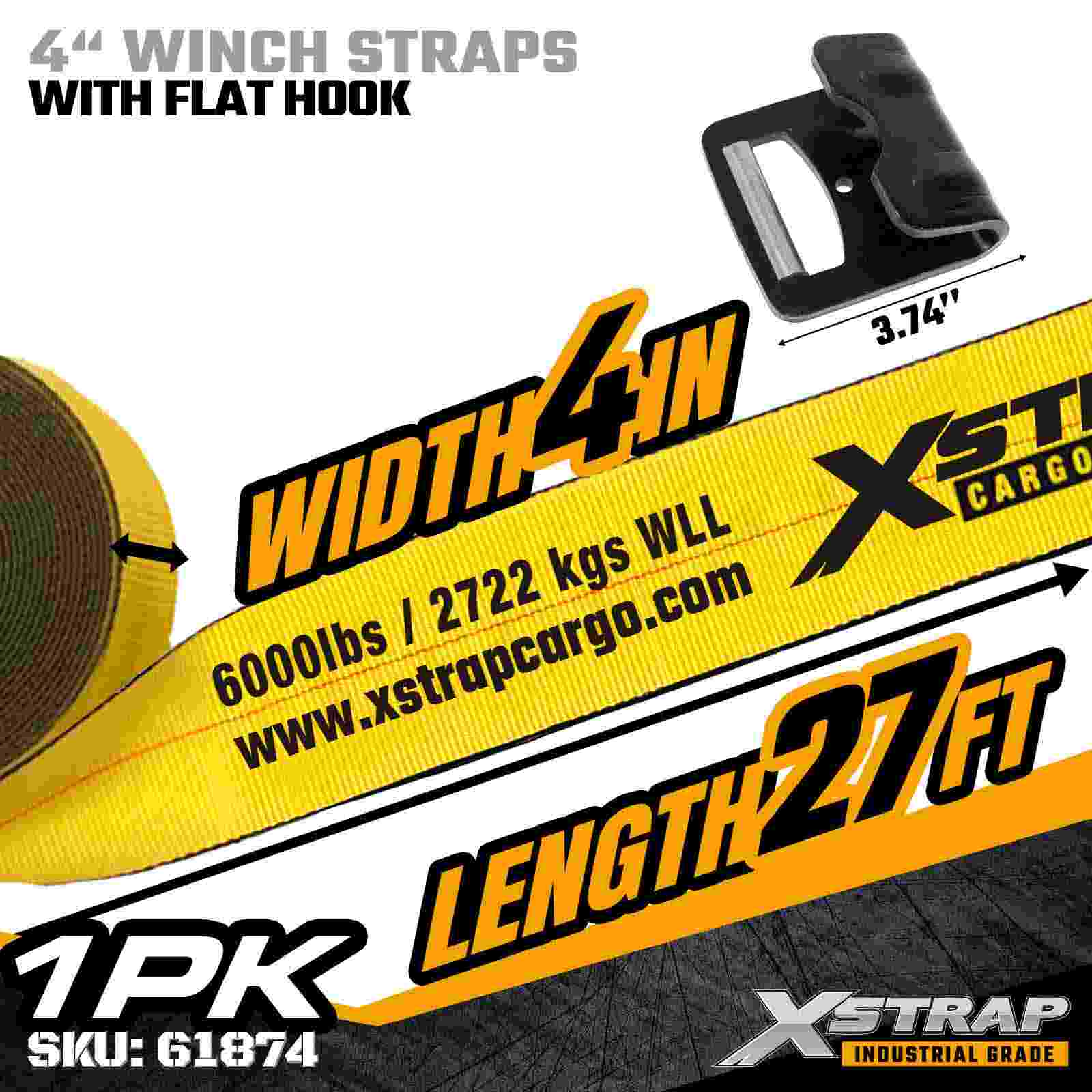 Ang Xstrap 61874 4" × 27ft Standard Winch Strap ay isang heavy-duty, high-capacity na cargo securement strap na inengineered para sa flatbed trailers at industrial transport. Nagtatampok ng reinforced Flat Hook at extra-wide 4-inch polyester webbing, ang 4 inch winch strap na ito ay naghahatid ng 6,000 lbs at Working000 lb. Ang lakas.