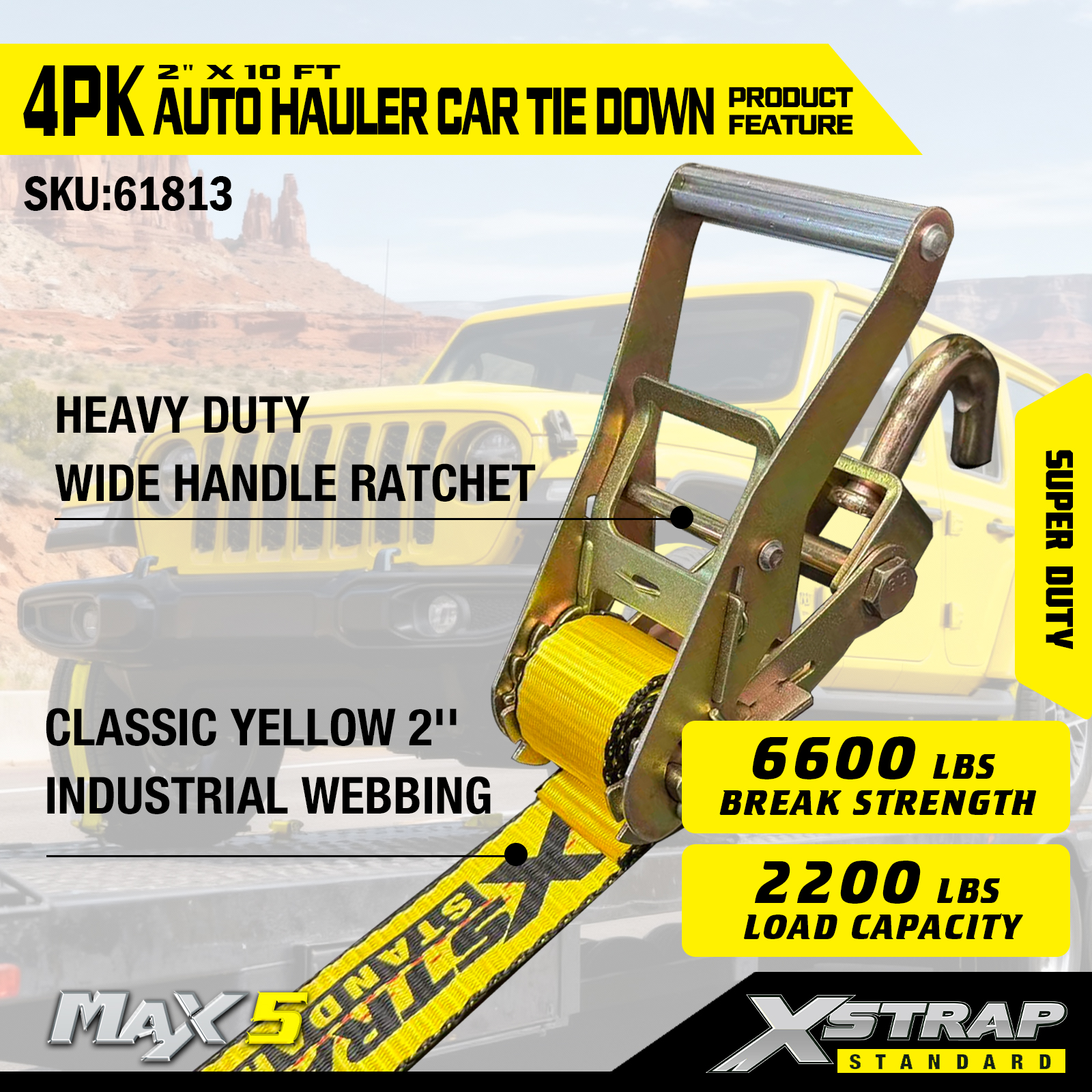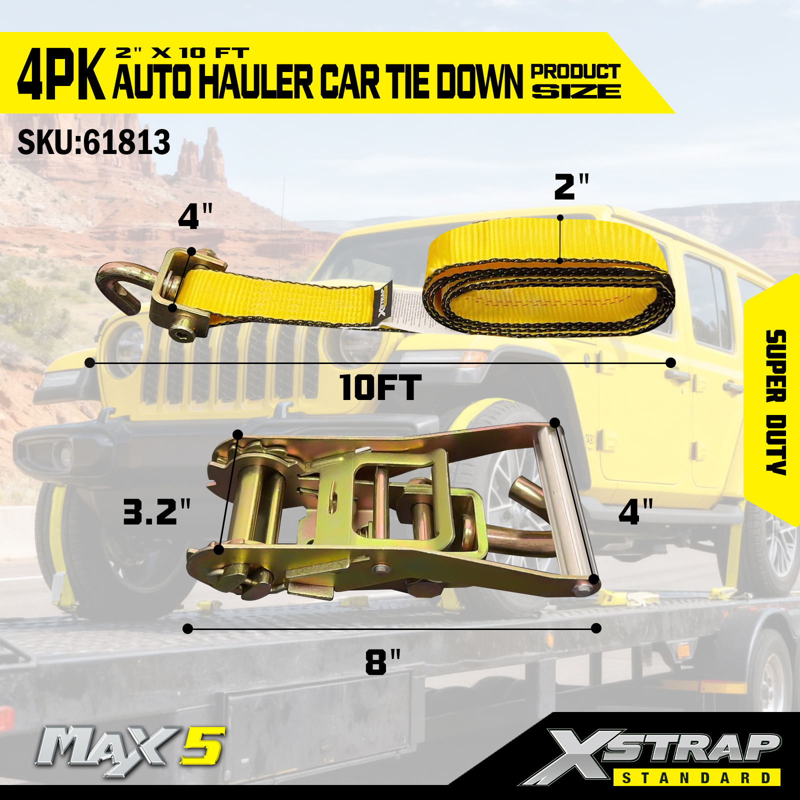 Xstrap Car Hauler Straps Heavy Duty 6,600 lbs Break Strength - Tire Tie Down Straps para sa mga Trailer, Over The Wheel Tie Downs na may Rubber Cleat para sa SUV, Truck, ATV, UTV