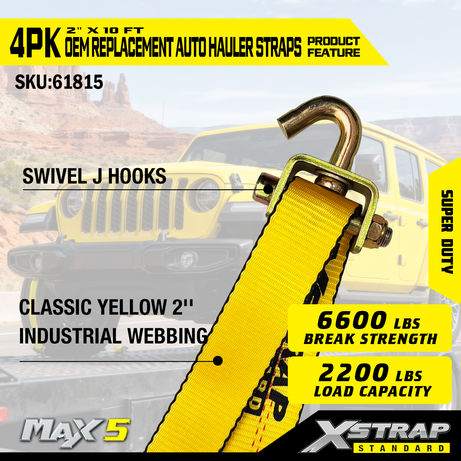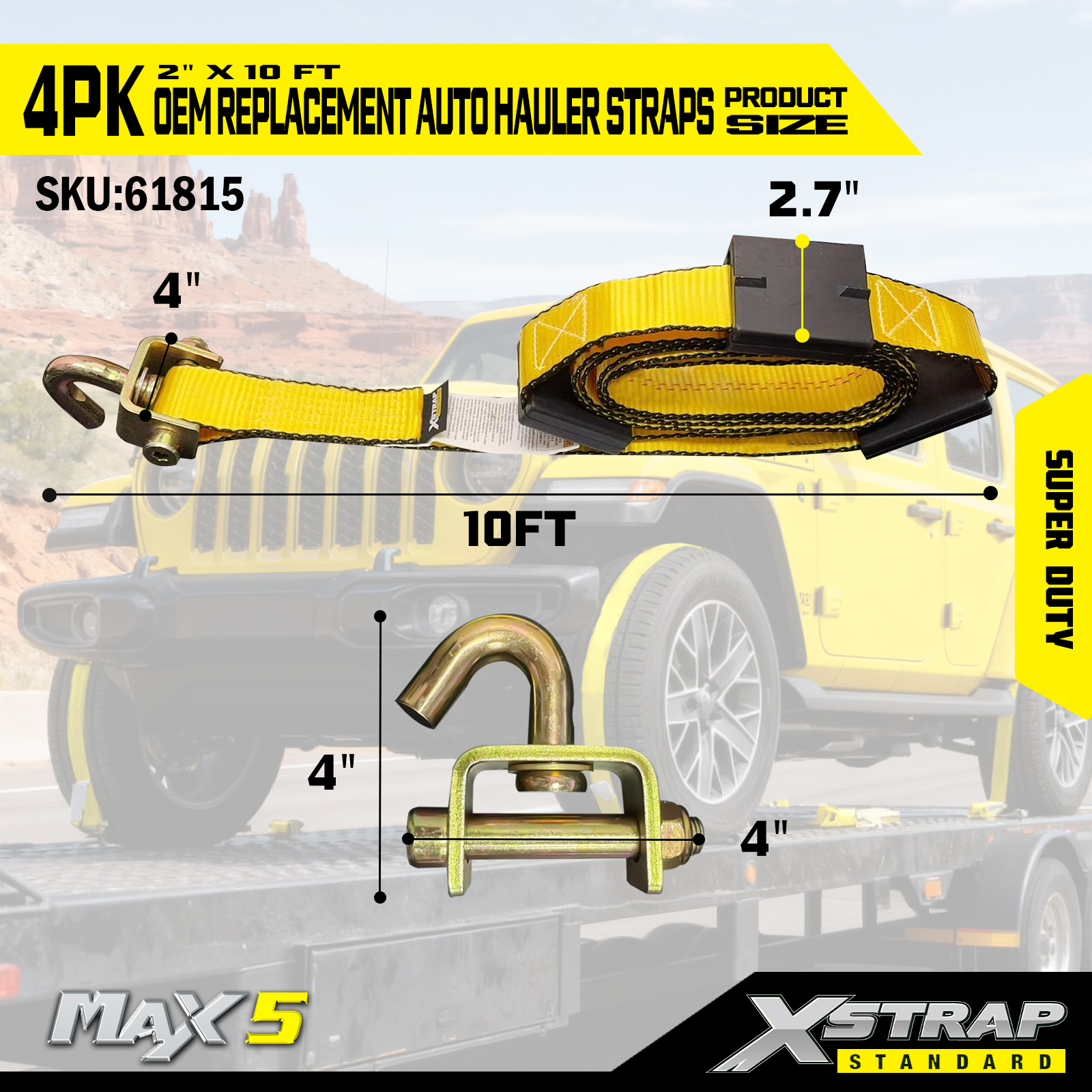 - 4-Pack Complete Replacement: Pinapalitan ng 4-piece set ang lahat ng tie down para sa isang sasakyan, na nagbibigay ng buong saklaw (isang strap bawat gulong) para sa mga hauler.
