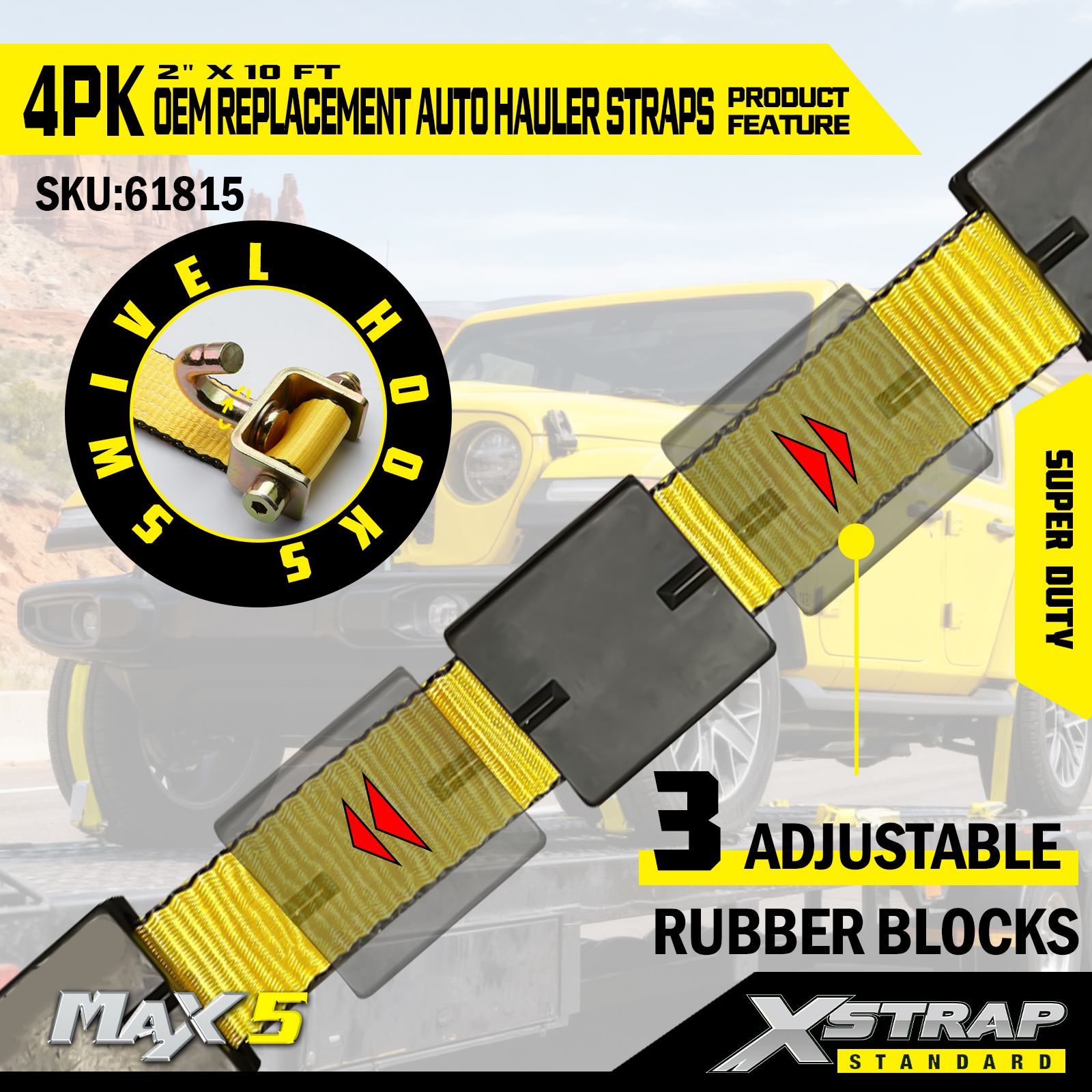 Xstrap Car Hauler Straps Heavy Duty 6,600 lbs Break Strength - Tire Tie Down Straps para sa mga Trailer, Over The Wheel Tie Downs na may Rubber Cleat para sa SUV, Truck, ATV, UTV