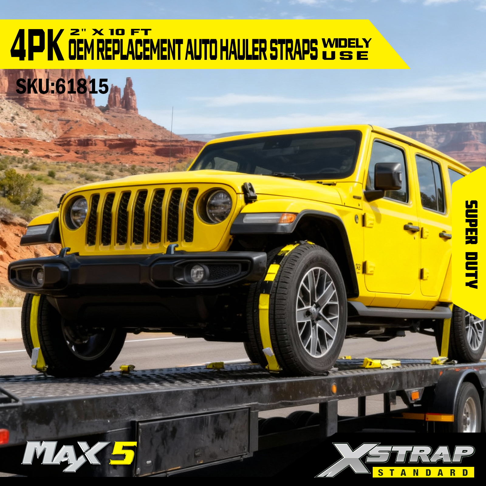 - Industrial-Grade Webbing:2" wide classic yellow webbing ay cut-resistant, UV-resistant, at binuo para makatiis ng matinding tensyon – tumutugma sa mga pamantayan ng tibay ng OEM.