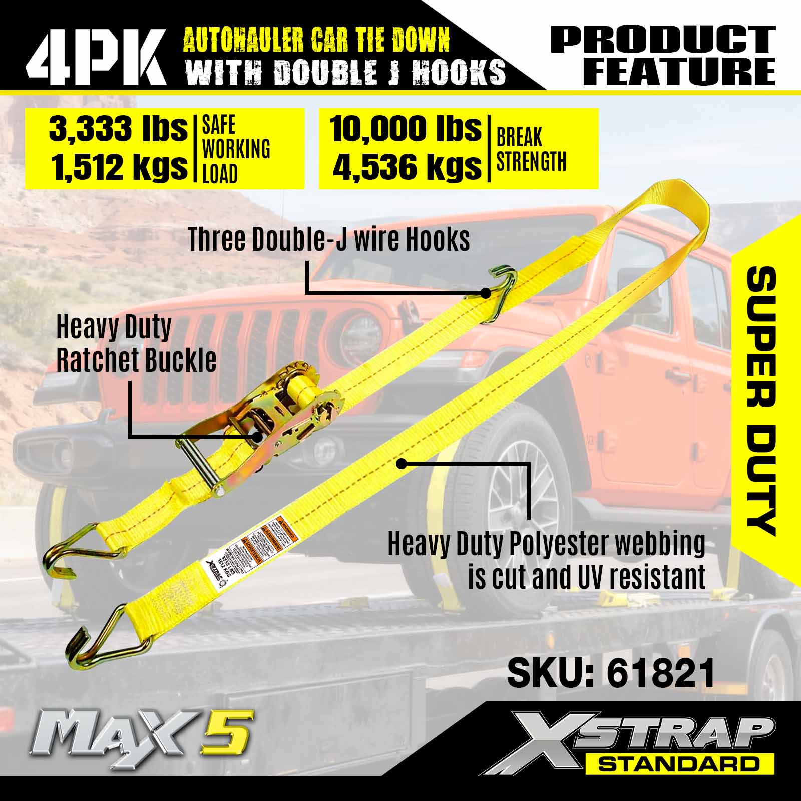 - Super Duty Performance: Na-rate para sa 3,333LBS na ligtas na working load at 10,000LBS breaking strength, ito ay ginawa upang mahawakan ang mga mabibigat na sasakyan at hinihingi ang mga senaryo sa transportasyon.