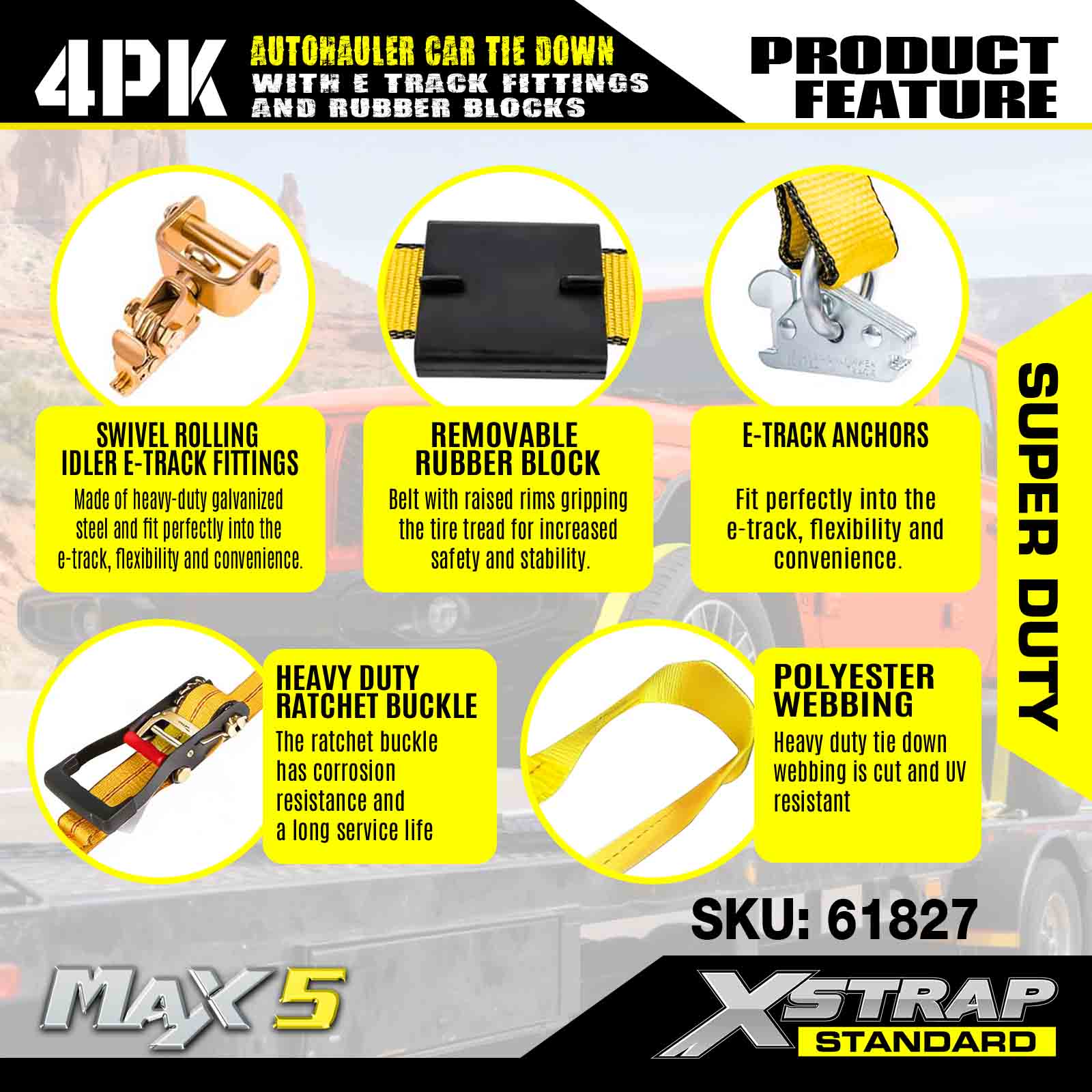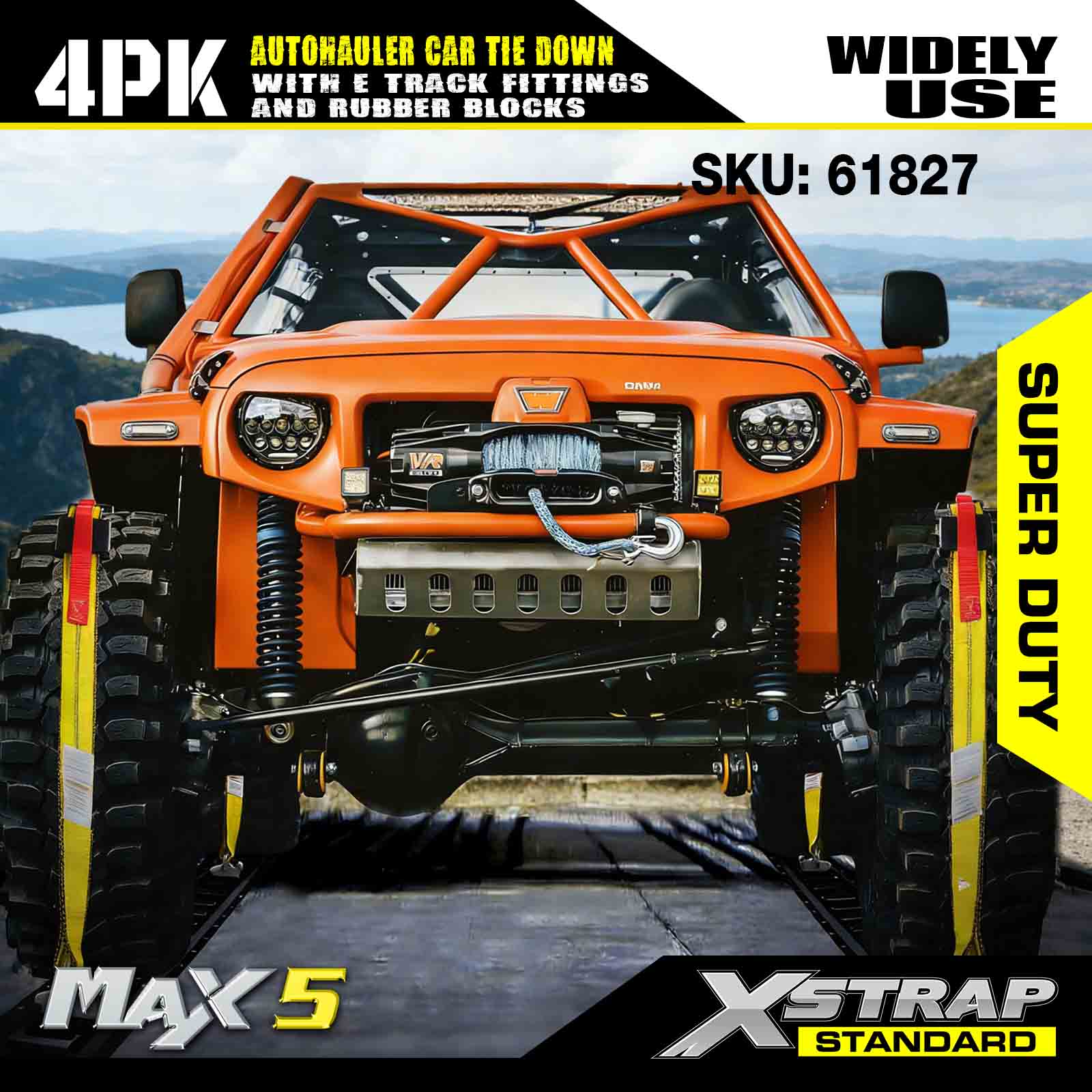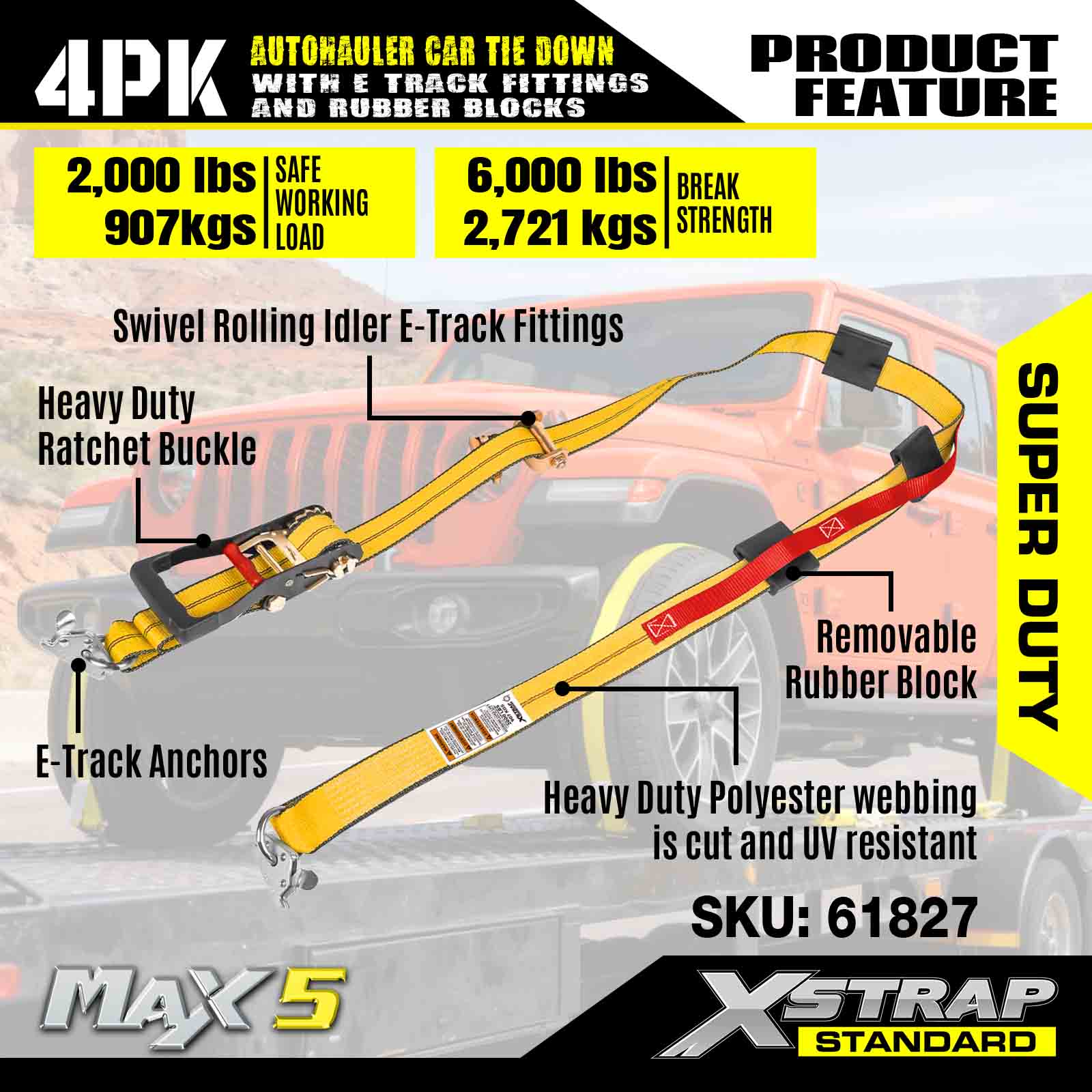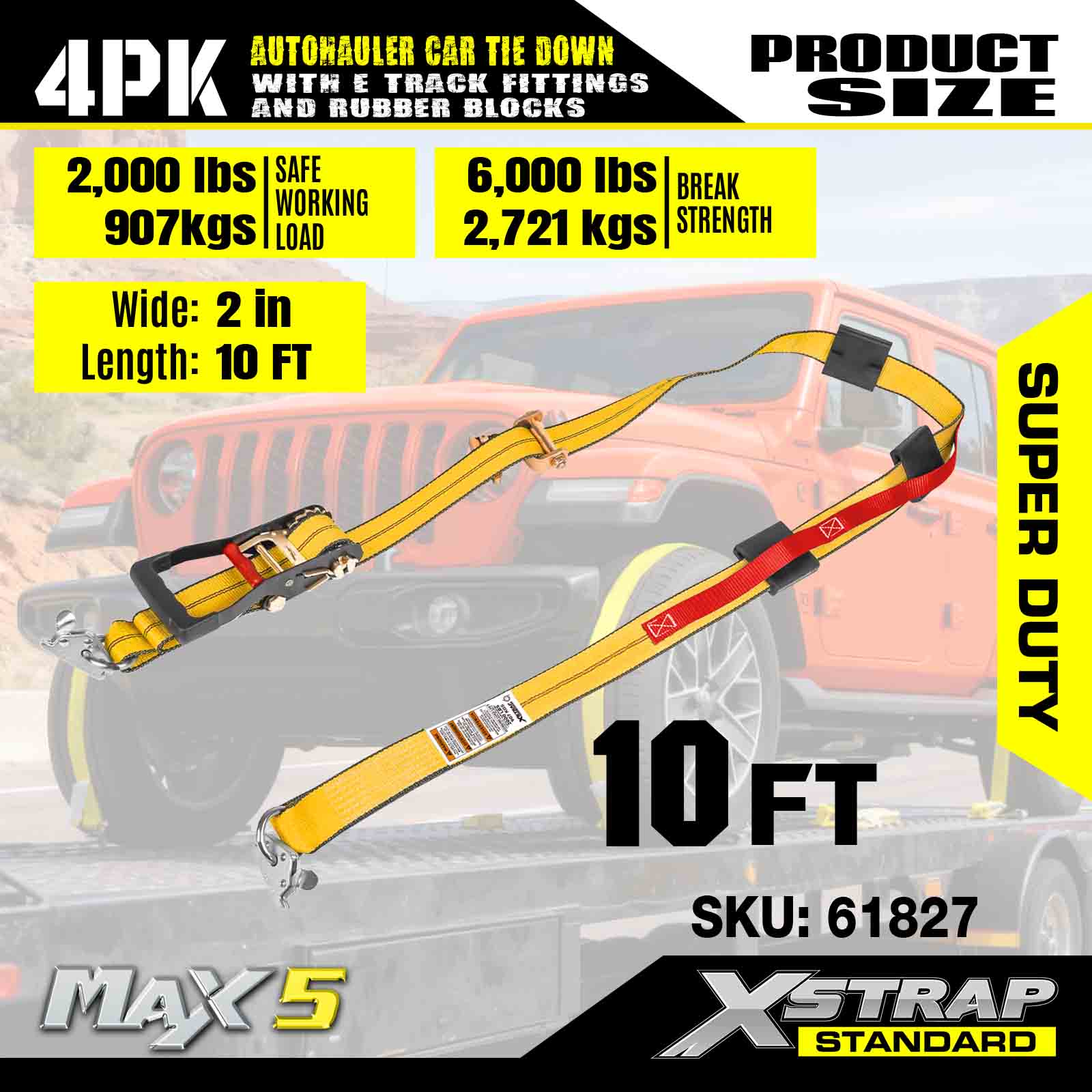 Xstrap Xstrap E Track Tire Straps para sa Trailer Heavy Duty 2" x 10' Auto Hauler Strap-6,000lb Garantisadong Lakas ng Pagkasira-(4) Premium Vehicle Tie Down Kit na may Rubber Blocks Wheel Tie-Downs para sa Truck, UTV