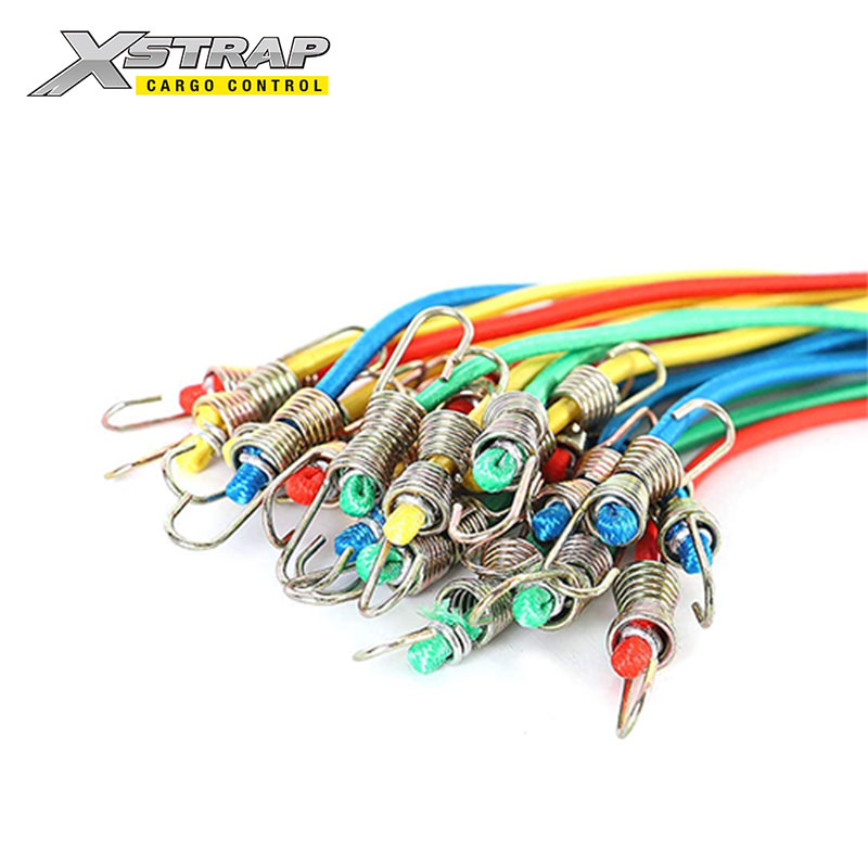 Ito ay mga mini bungee cord na malawakang ginagamit sa loob at labas. Ang mga mini bungee cord na may mga kawit ay maaaring gamitin para sa camping, mga kasangkapan, tarp cover, canvas canopies, o kahit na magsabit ng mga palamuting Pasko.