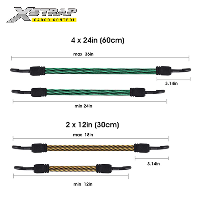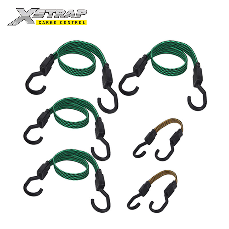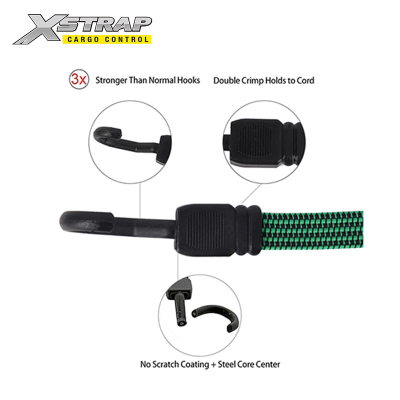 - Ang mga hook ng flat bungee cords ay 3X mas malakas kaysa sa isang ordinaryong hook. Ang mga ito ay heavy-duty cord para sa mga bagahe, Tarpaulin, Tent, Boat, Bike at Truck. Ang mga bungee cord ay nagbibigay ng maaasahan at matibay na pagganap sa tuwing gagamitin mo ito.