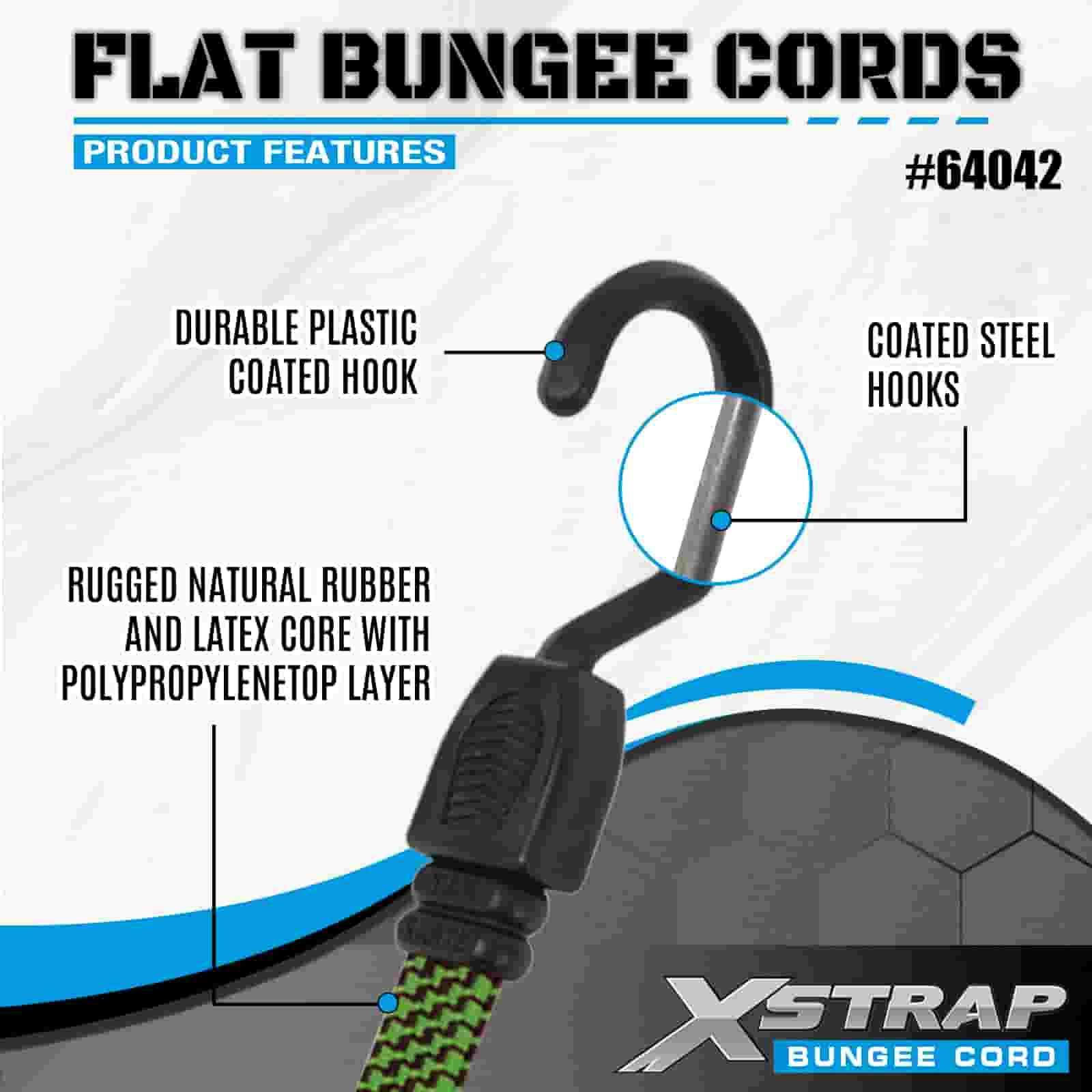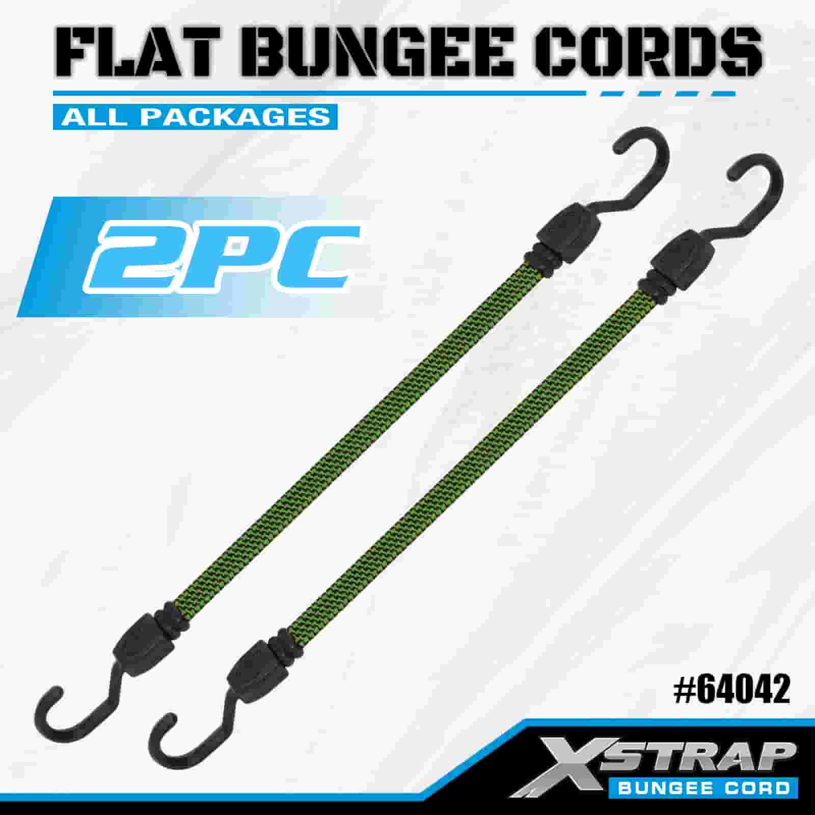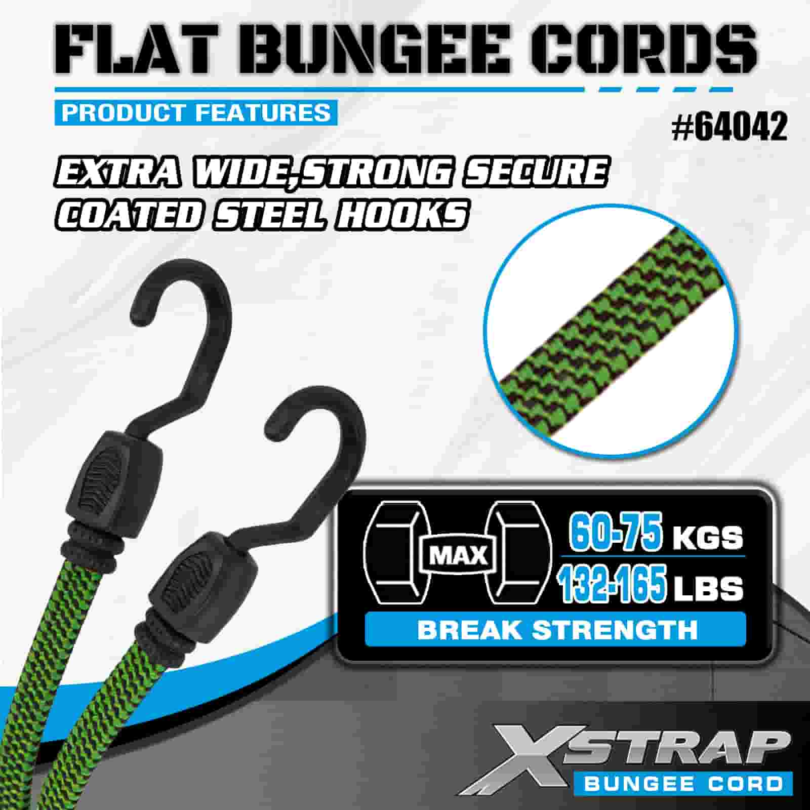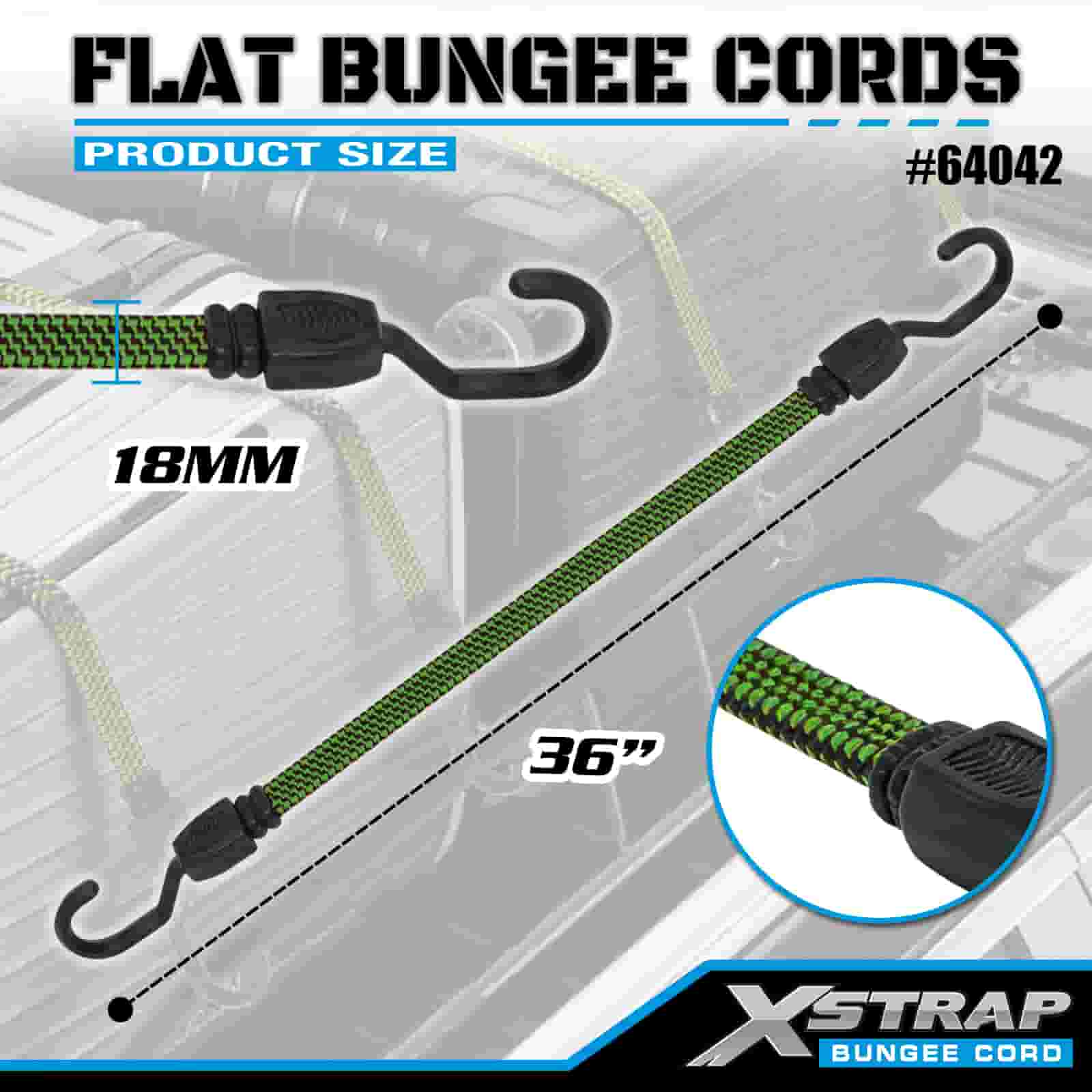 Xstrap 2PK Flat Bungee Cords 18mm x 36", 132-165lbs break strength na may malalakas na hook para sa kontrol ng kargamento .