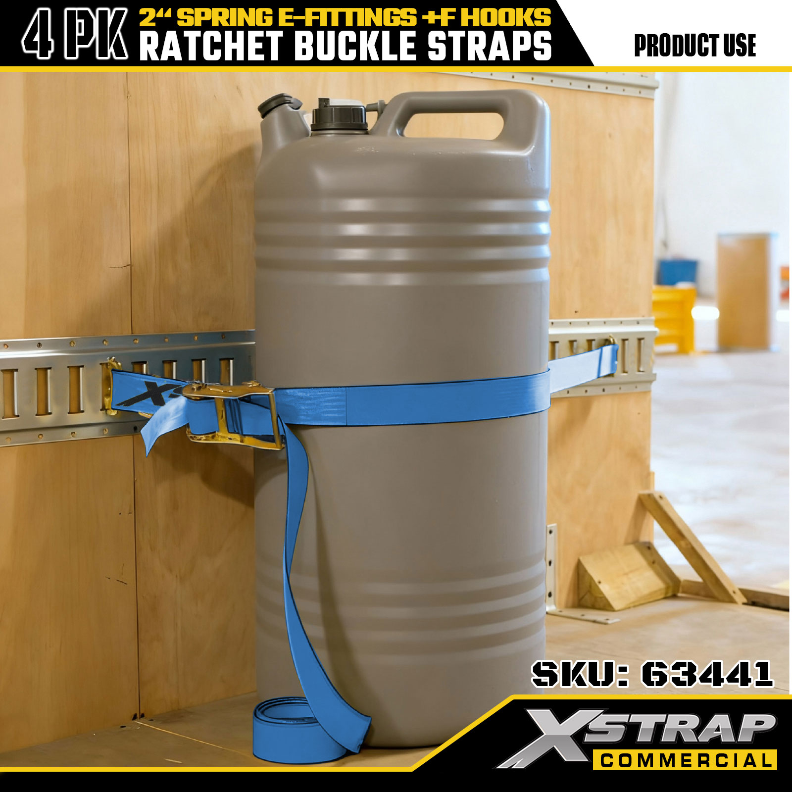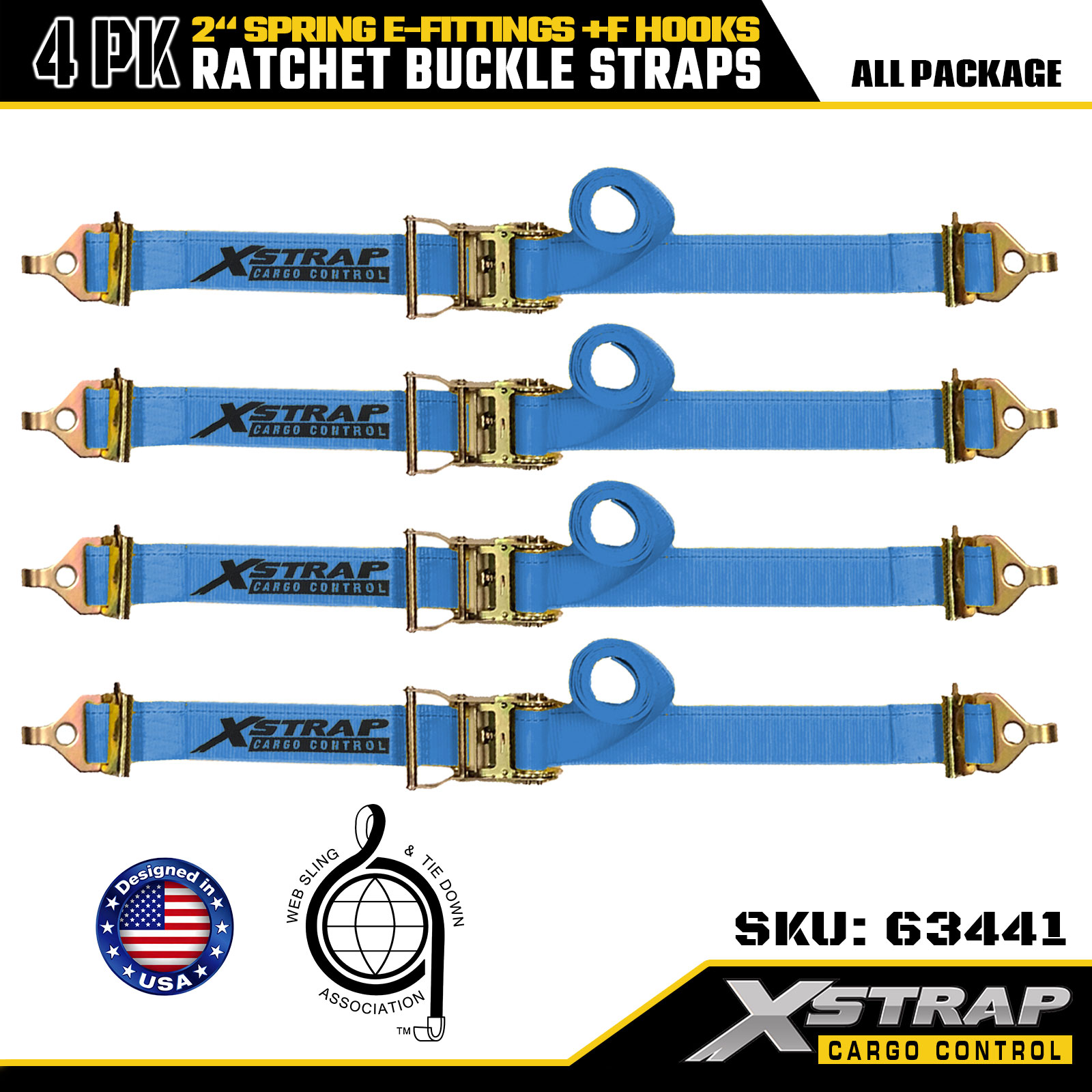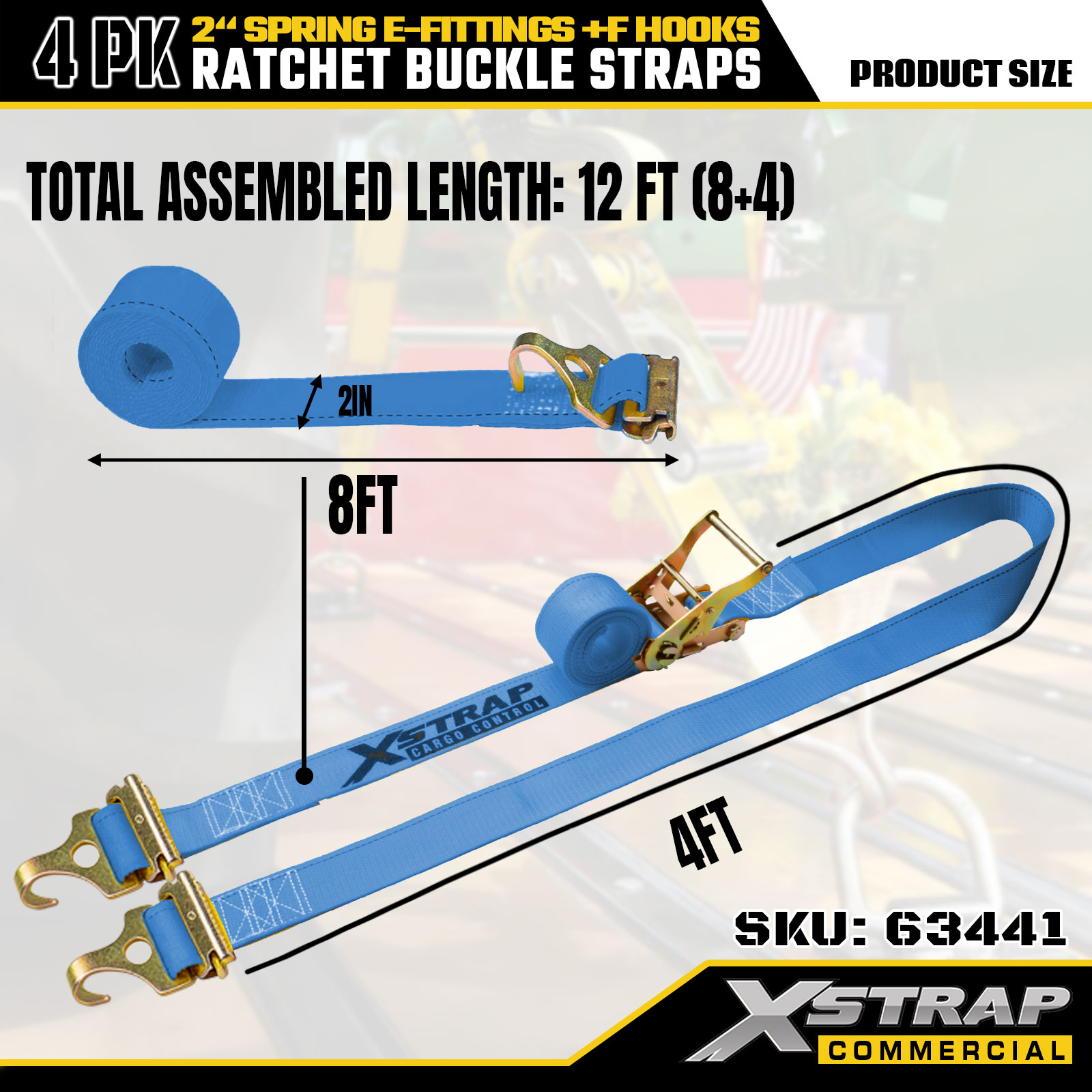 Xstrap 4 Pack Ratchet Tie-Down Straps 2" x 12' Polyester na may Spring E-Fittings & F Hooks, 733 lbs SWL & 332 lbs Breaking Strength para sa Truck, Paglipat, General Cargo Transport