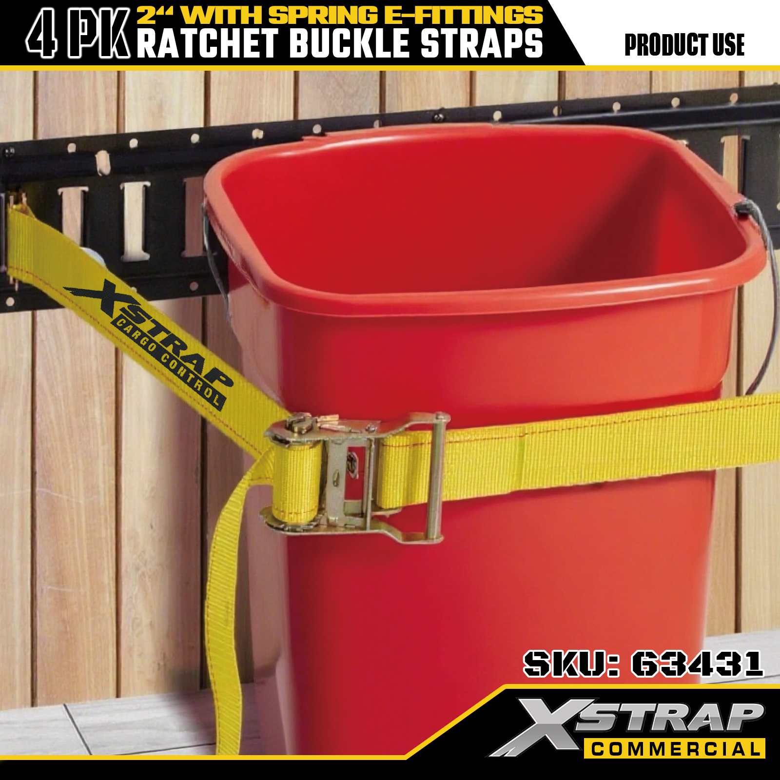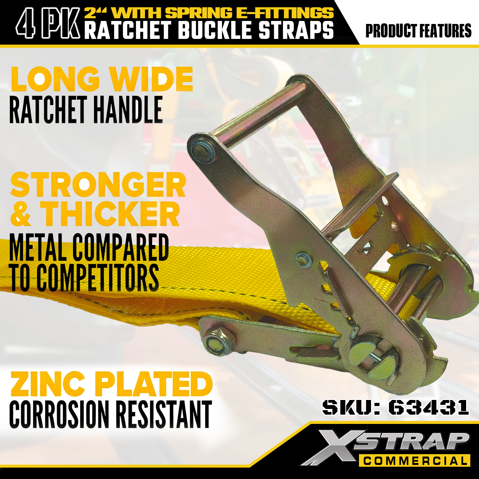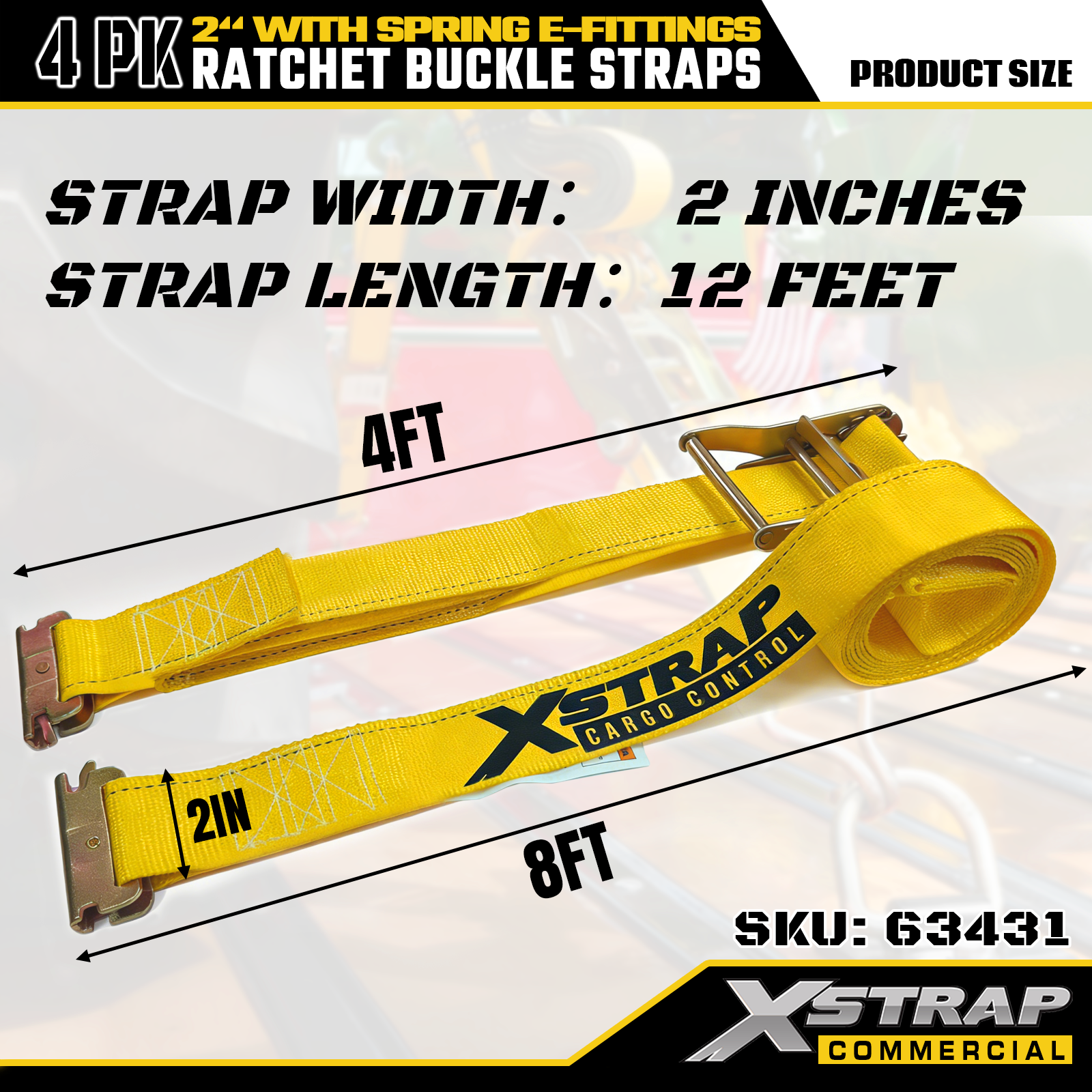 2" x 12' 4PK Ratchet Buckle Straps na may Spring E-Fittings