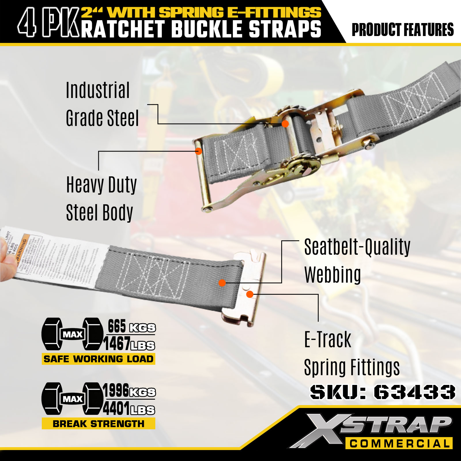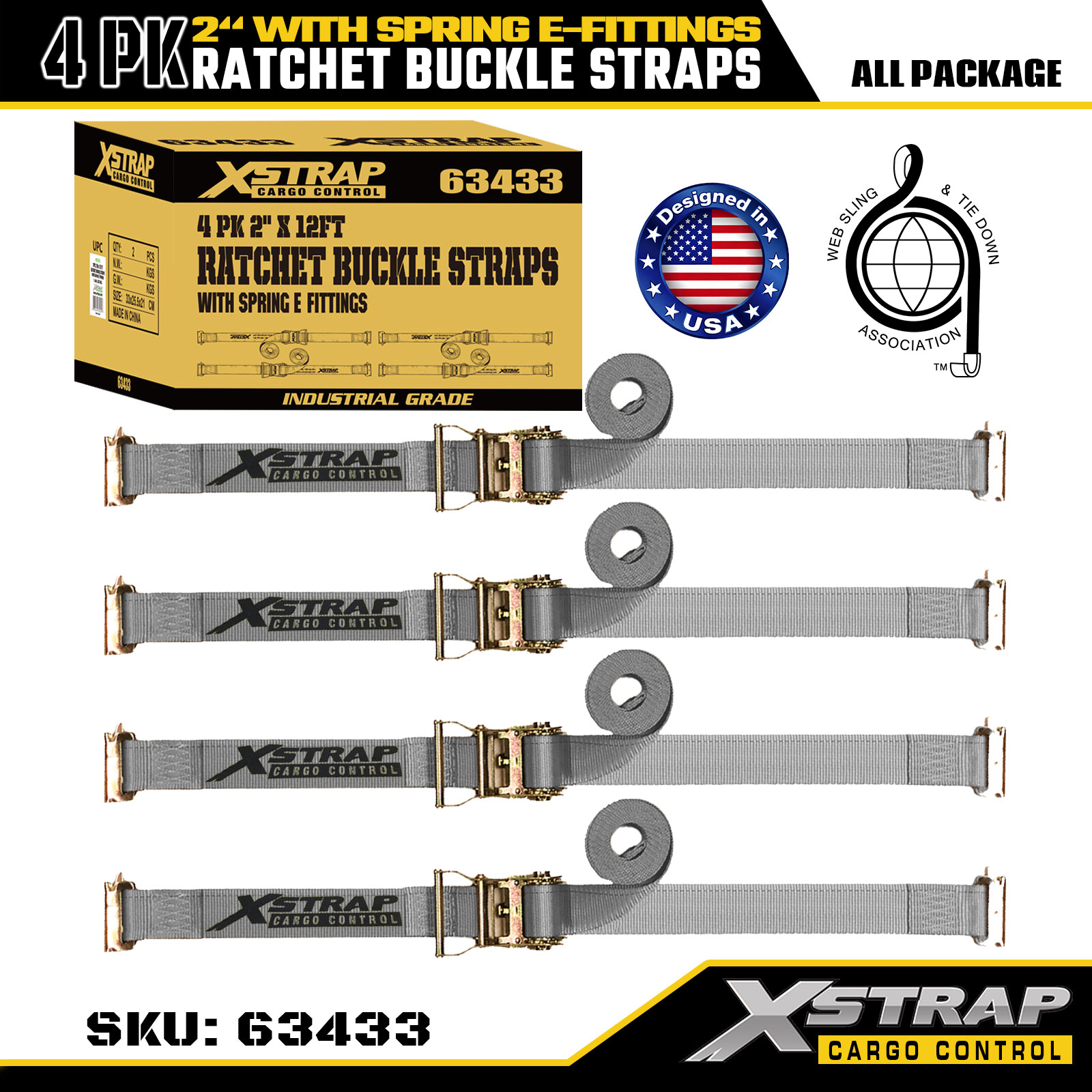 2" x 16' 4PK Ratchet Buckle Straps na may Spring E-Fittings