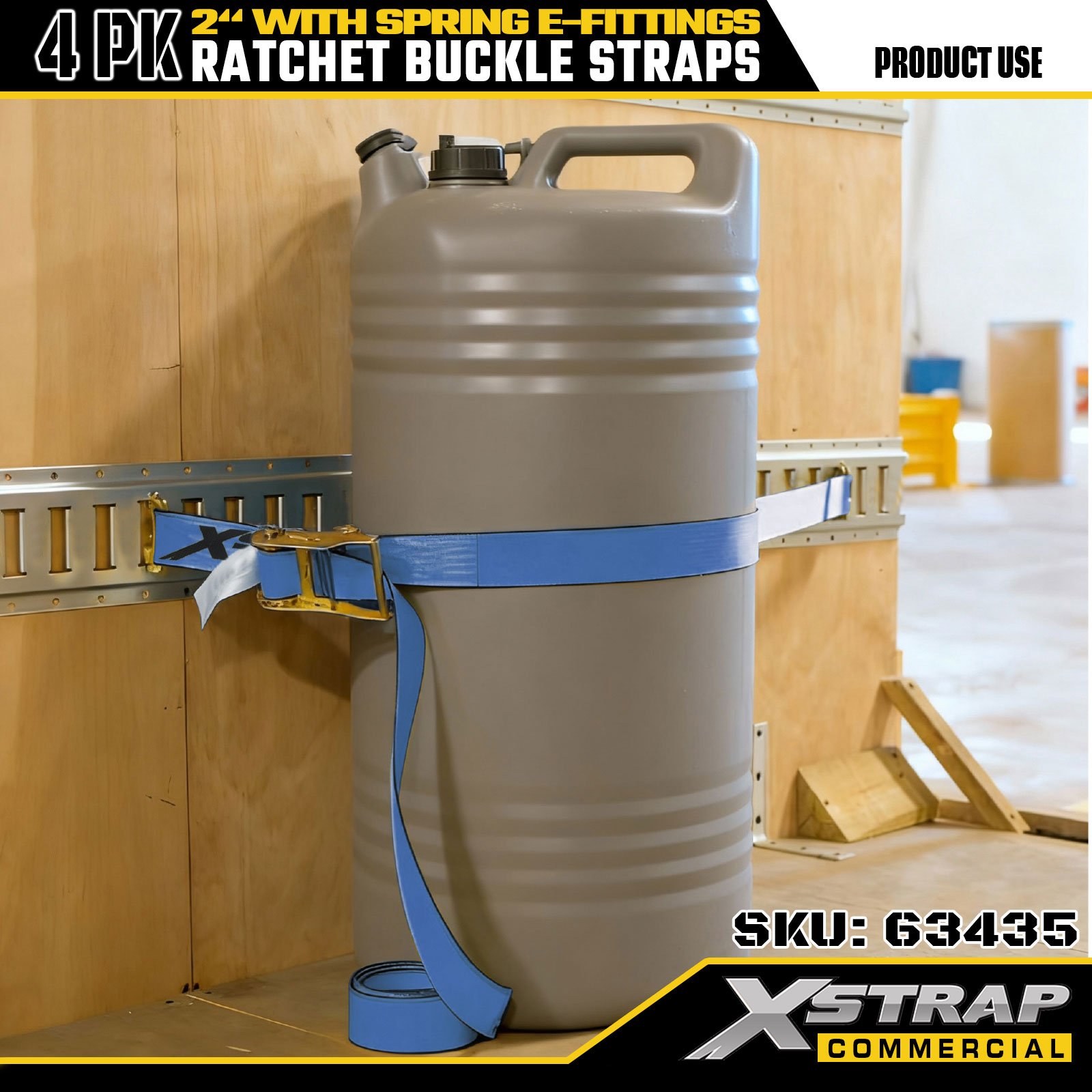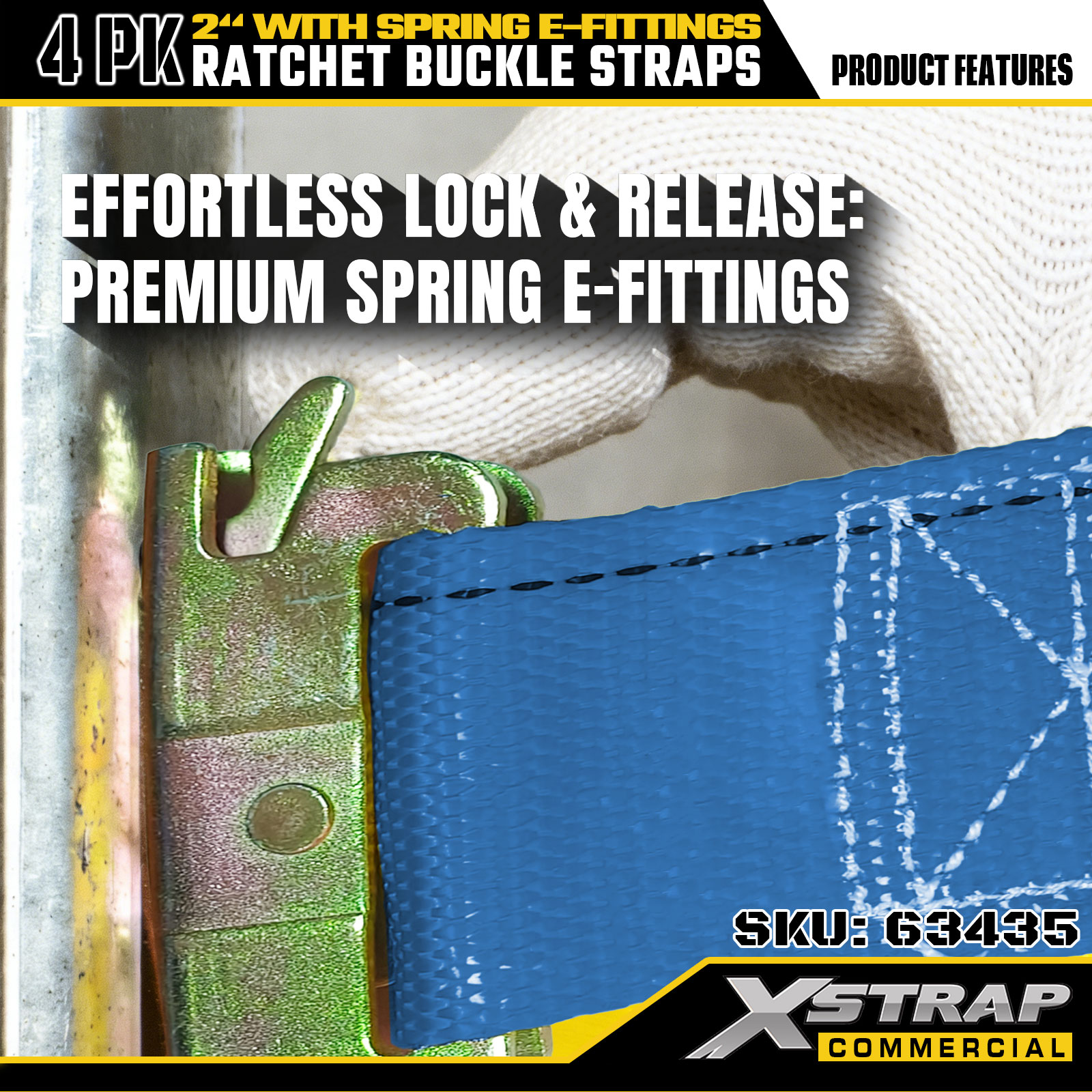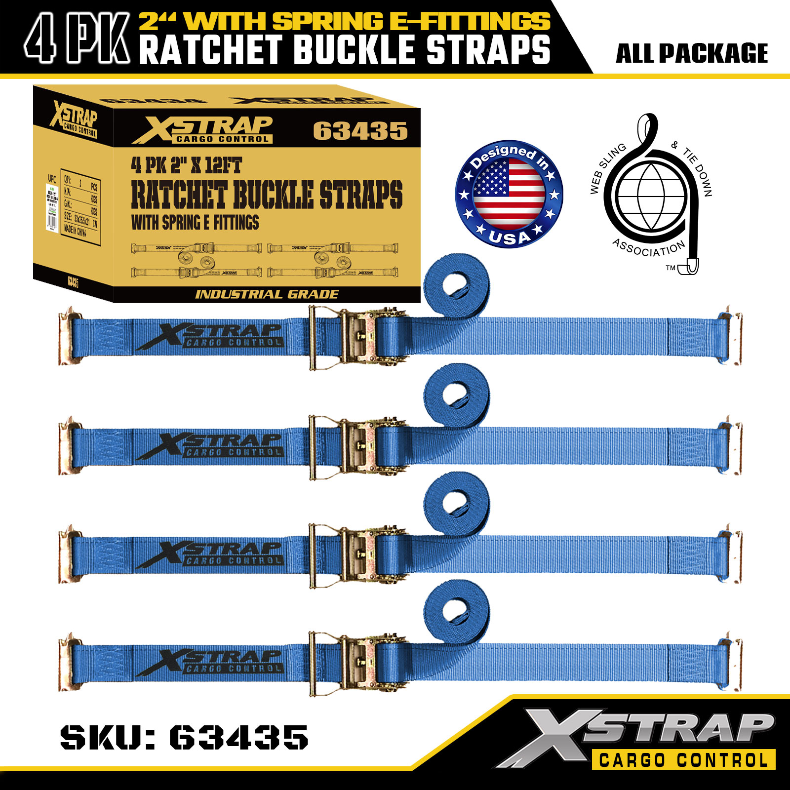 2" x 12' 4PK Ratchet Buckle Straps na may Spring E-Fittings