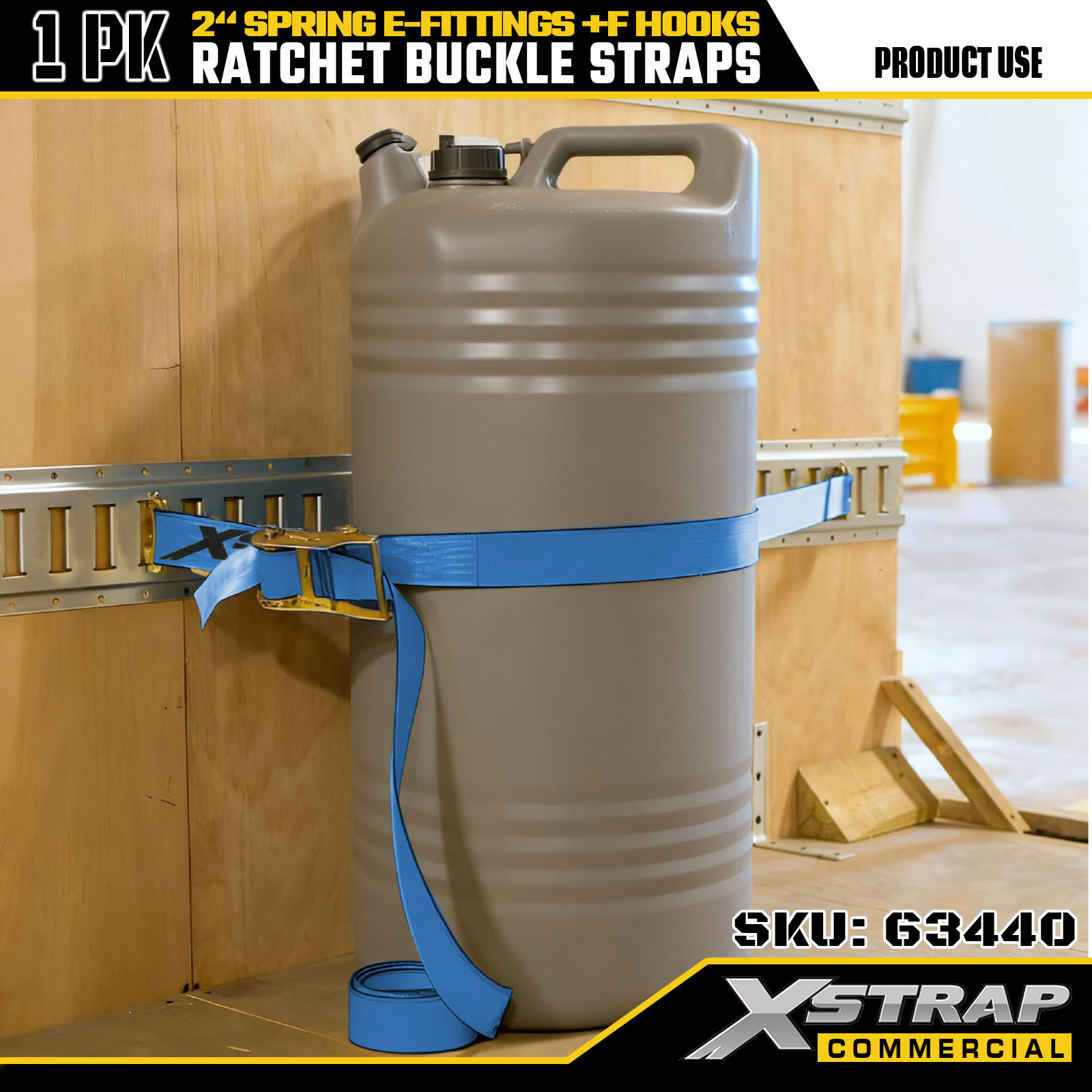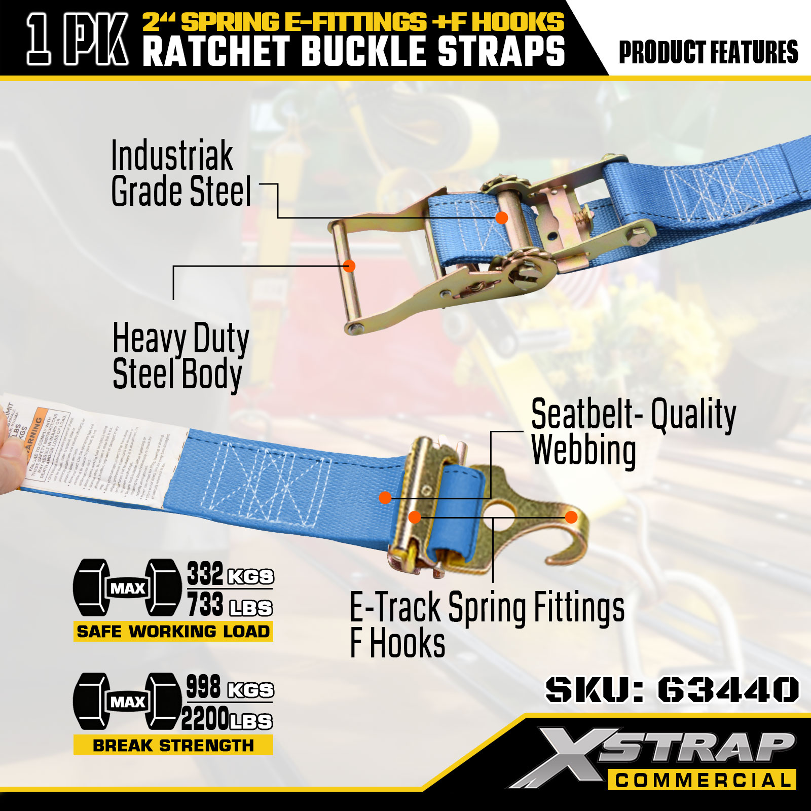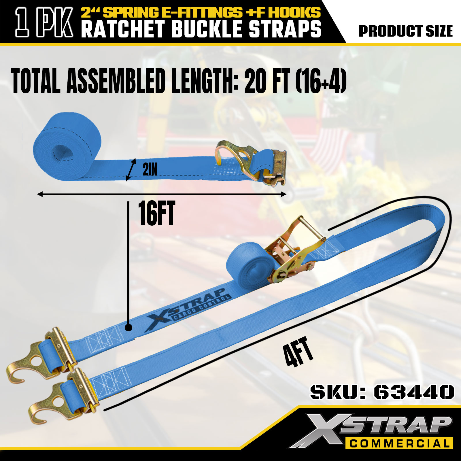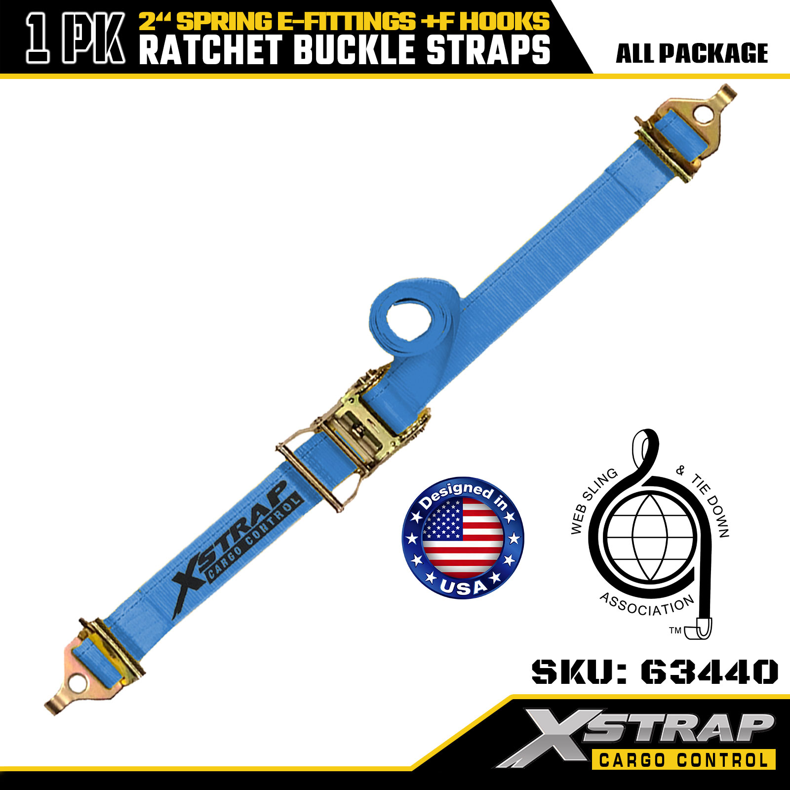 Xstrap 63440 Heavy-Duty Ratchet Strap 2" x 20' (1PK) - Asul Webbing, Spring E-Fittings at F Hooks, 733 lbs SWL para sa Paglipat, Cargo Transport at Paggamit ng Truck