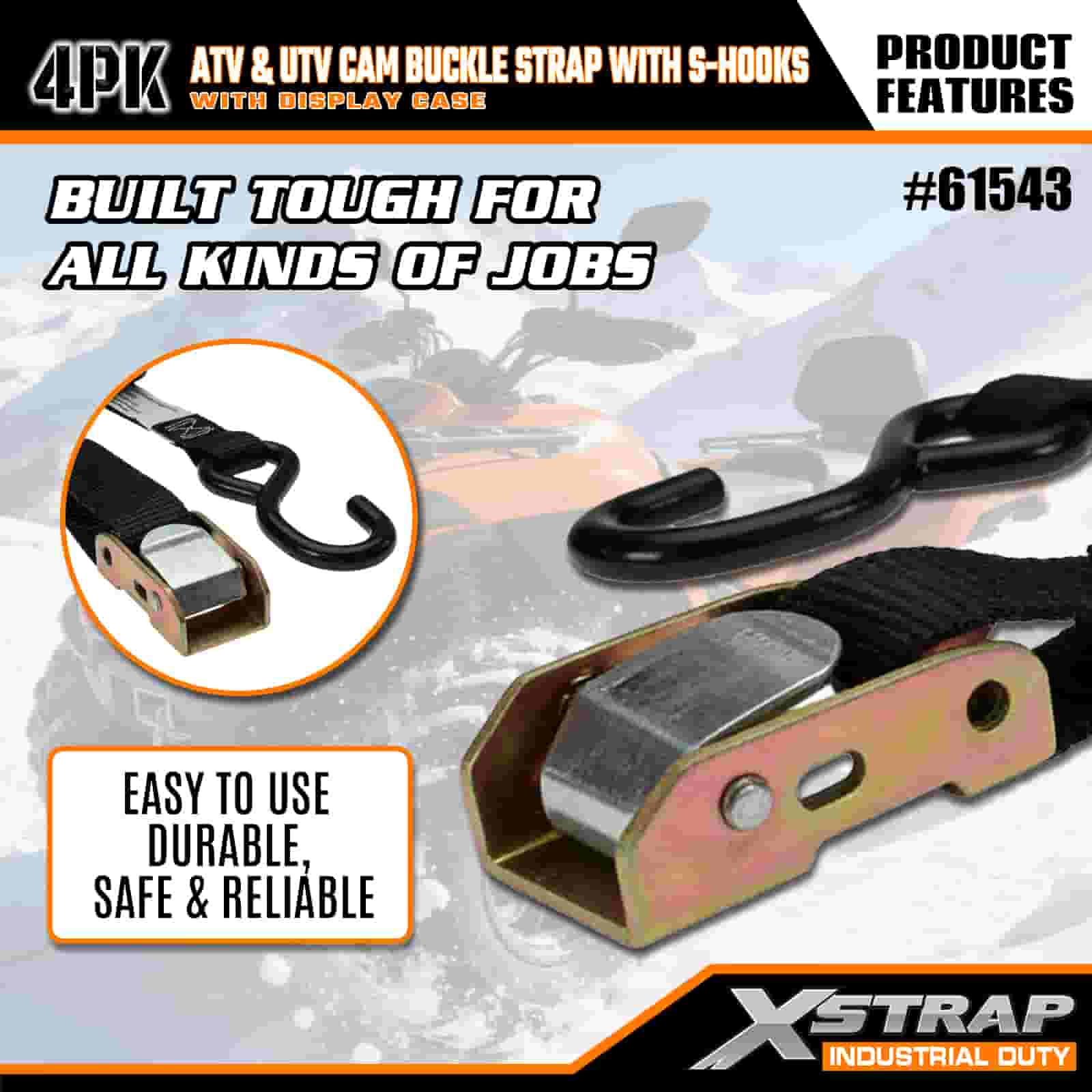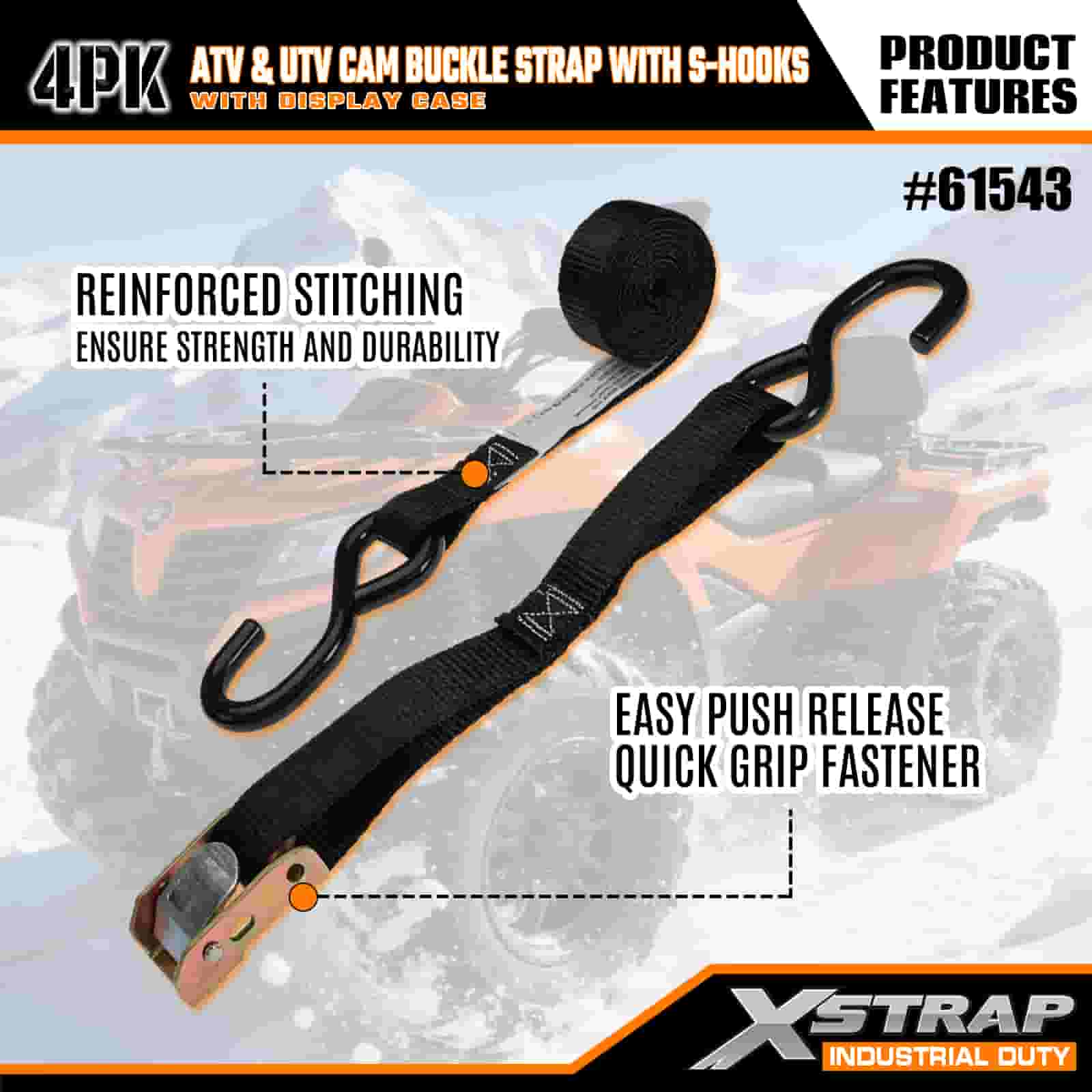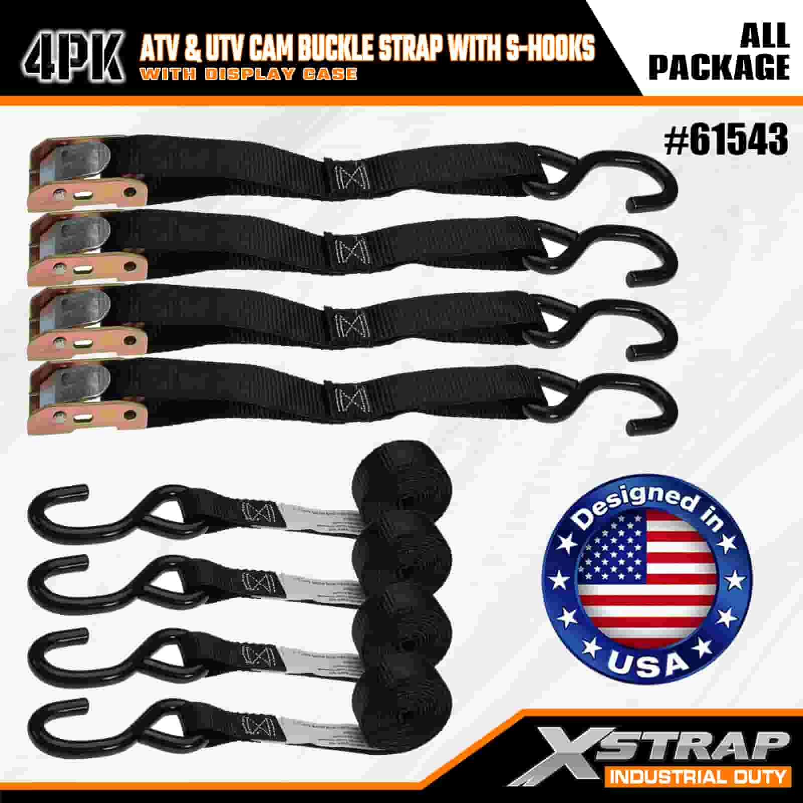 Xstrap 4PK ATV at AUV Cam Buckle Strap na may S Hooks, 1” x 6’ Polyester Tie Down Strap Pull Ratchet Buckle Strap, 400lbs Kapasidad Cargo Lashing Securing Straps na may S Hook para sa Seryosong Propesyonal na Mag-secure ng Cargo Trailer, Flat Bed Trailer, Ski Boat, Maliit na Kotse.