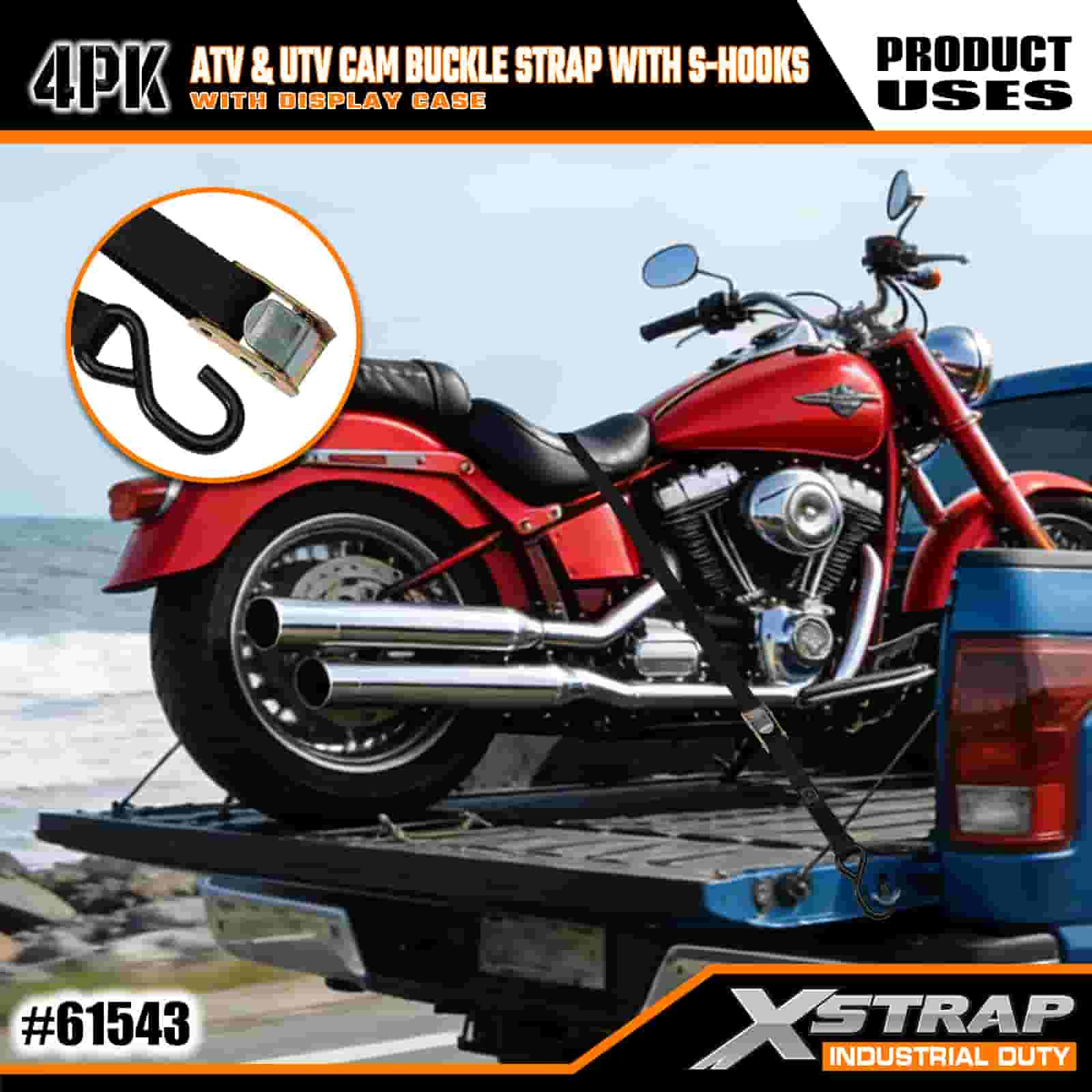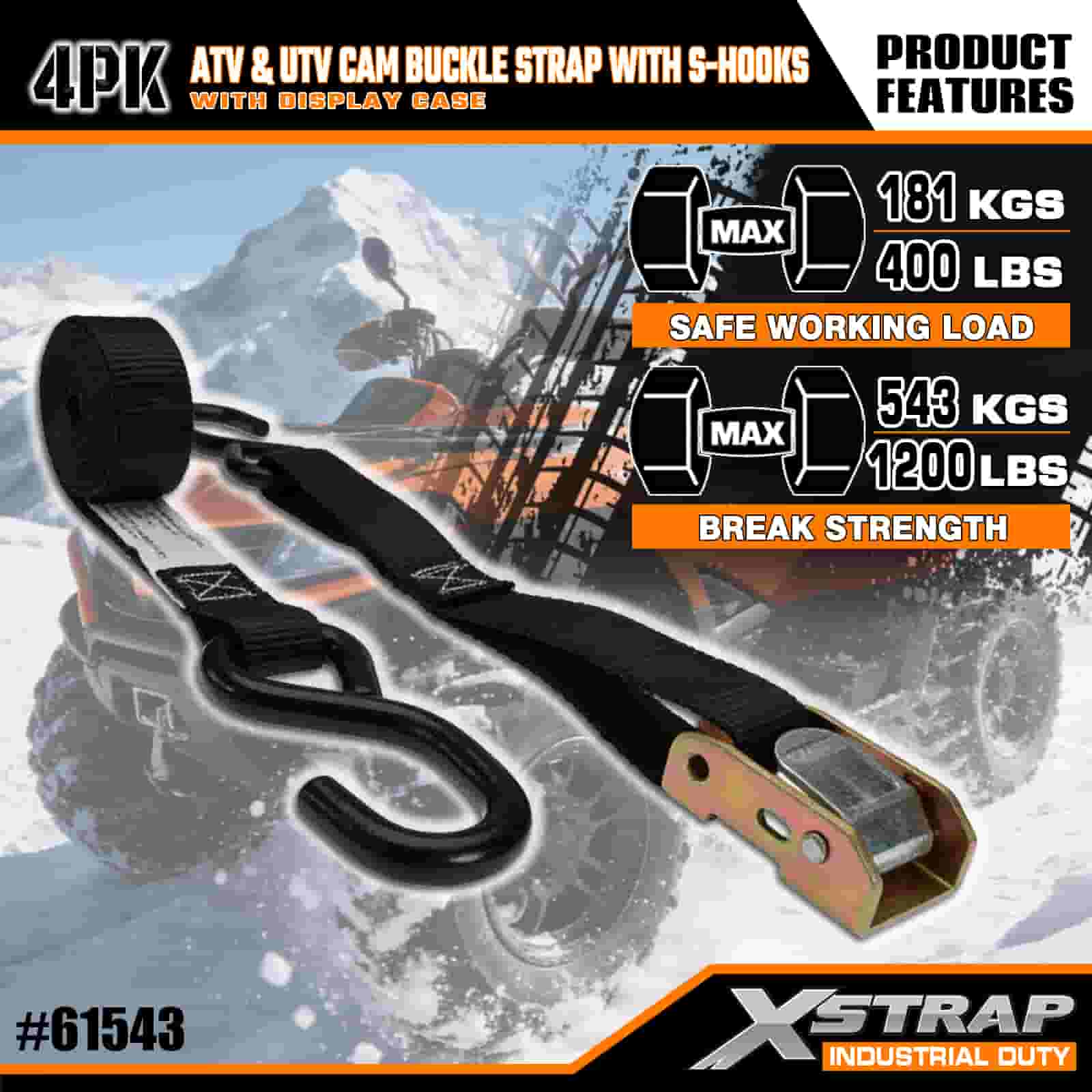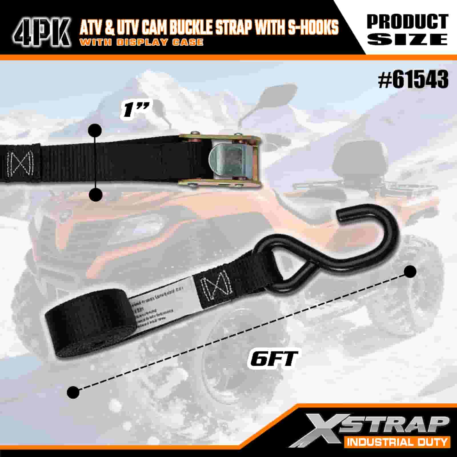 1” x 6’ 4PK ATV at AUV Cam Buckle Strap na may S Hooks