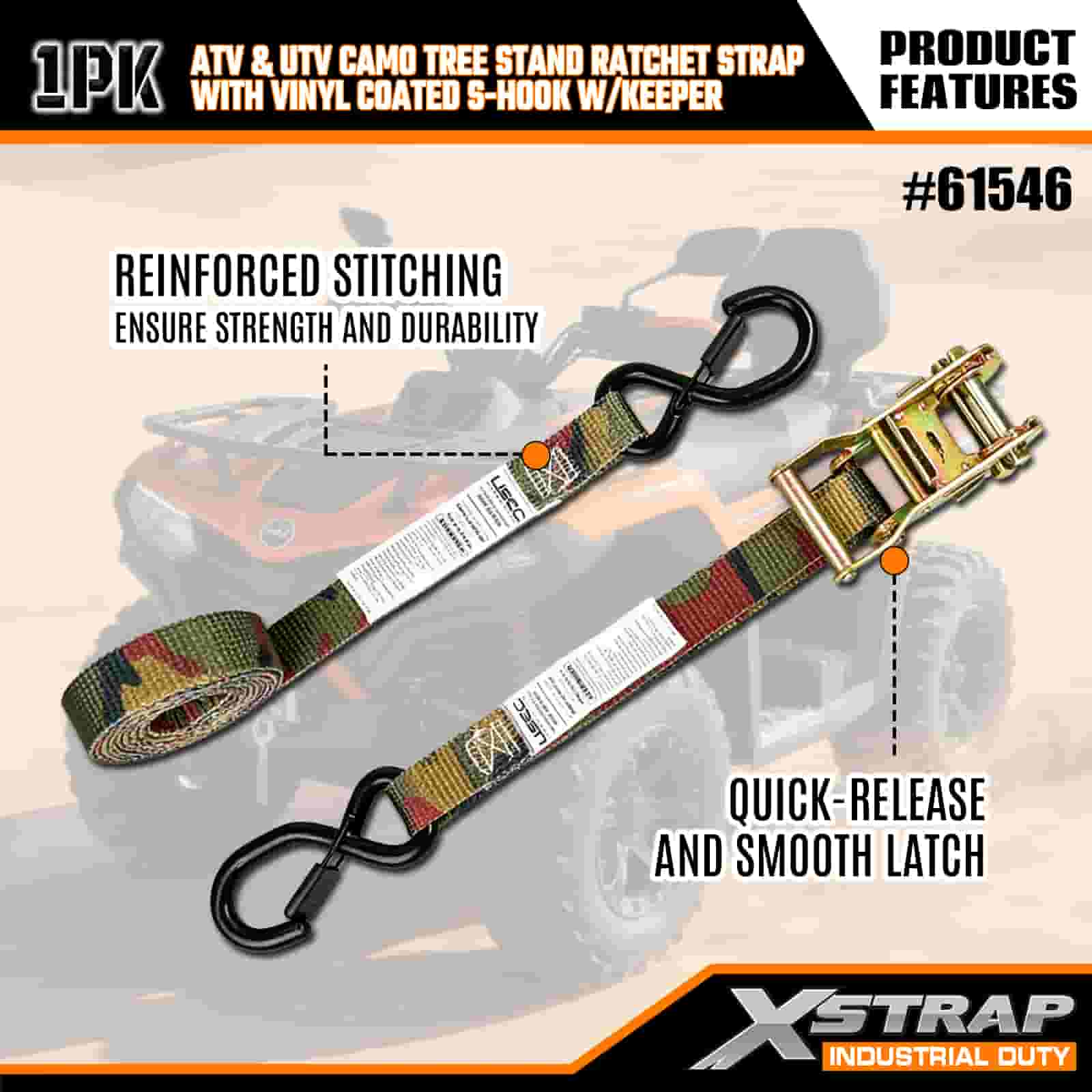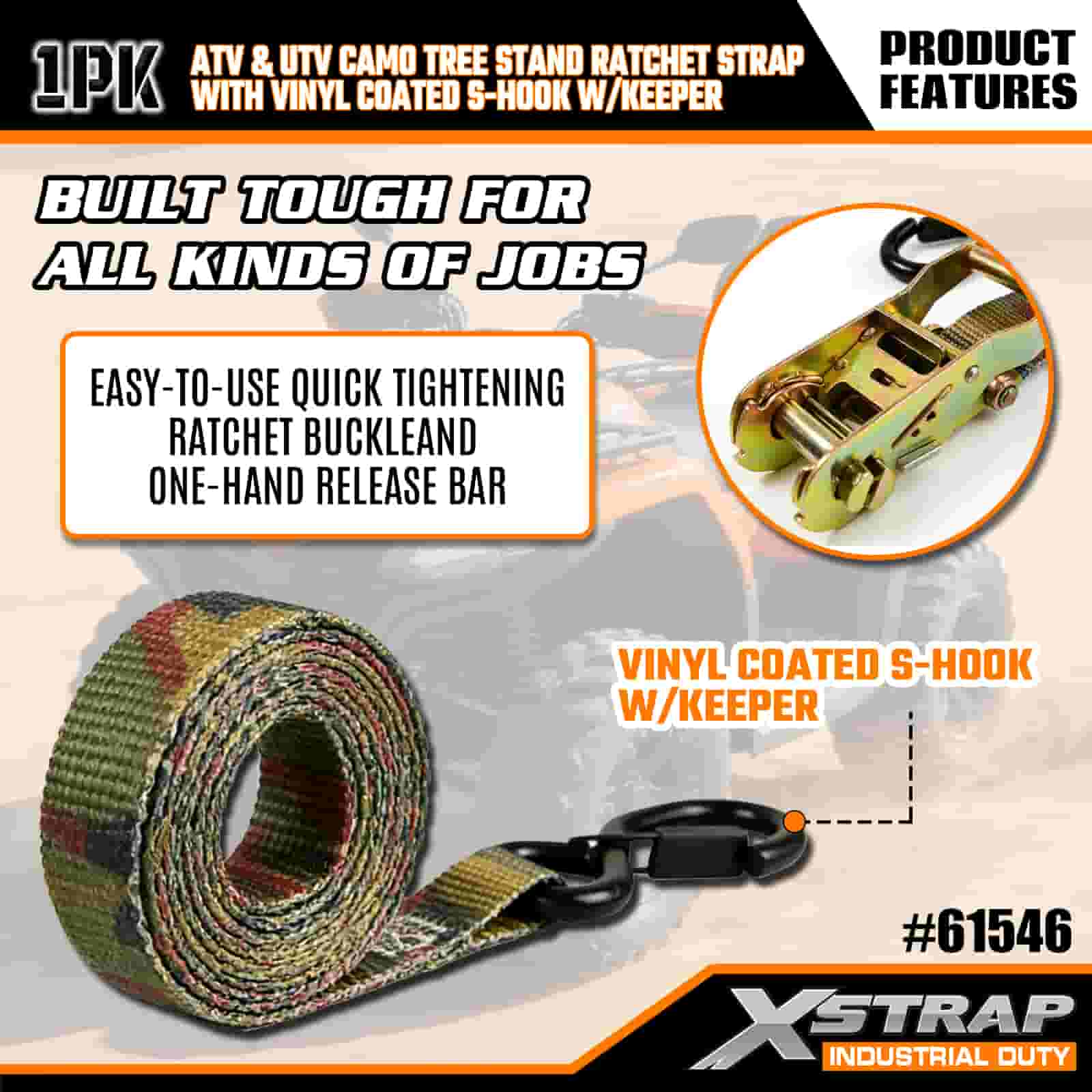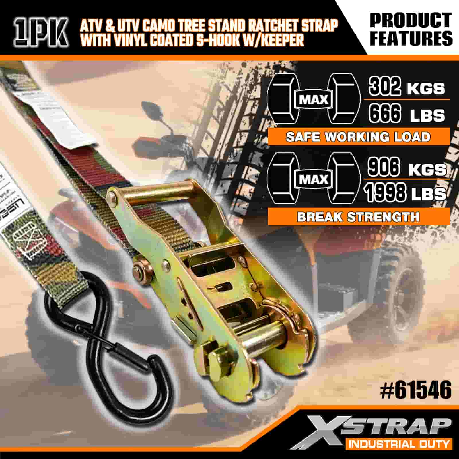 - Blend In, Lock In:Ang disenyo ng camouflage ay nagbibigay-daan sa strap na maghalo sa panlabas na kapaligiran, habang ang reinforced stitching at heavy-duty na ratchet nito ay nagpapanatili sa iyong ATV, tree stand, o motorsiklo na nakakandado nang mahigpit. Wala nang pag-aalala tungkol sa paglilipat ng mga load sa masungit na lupain.