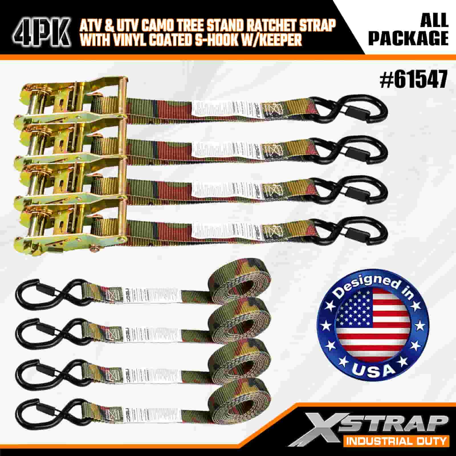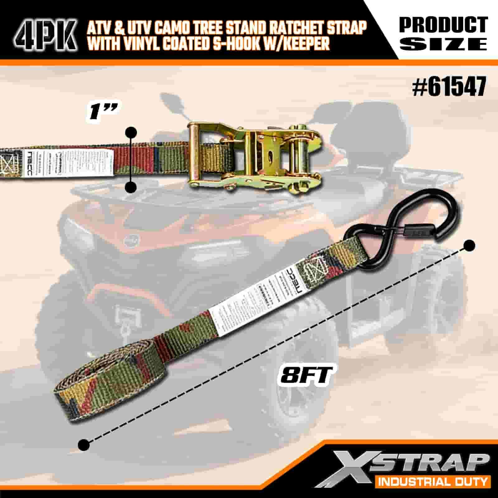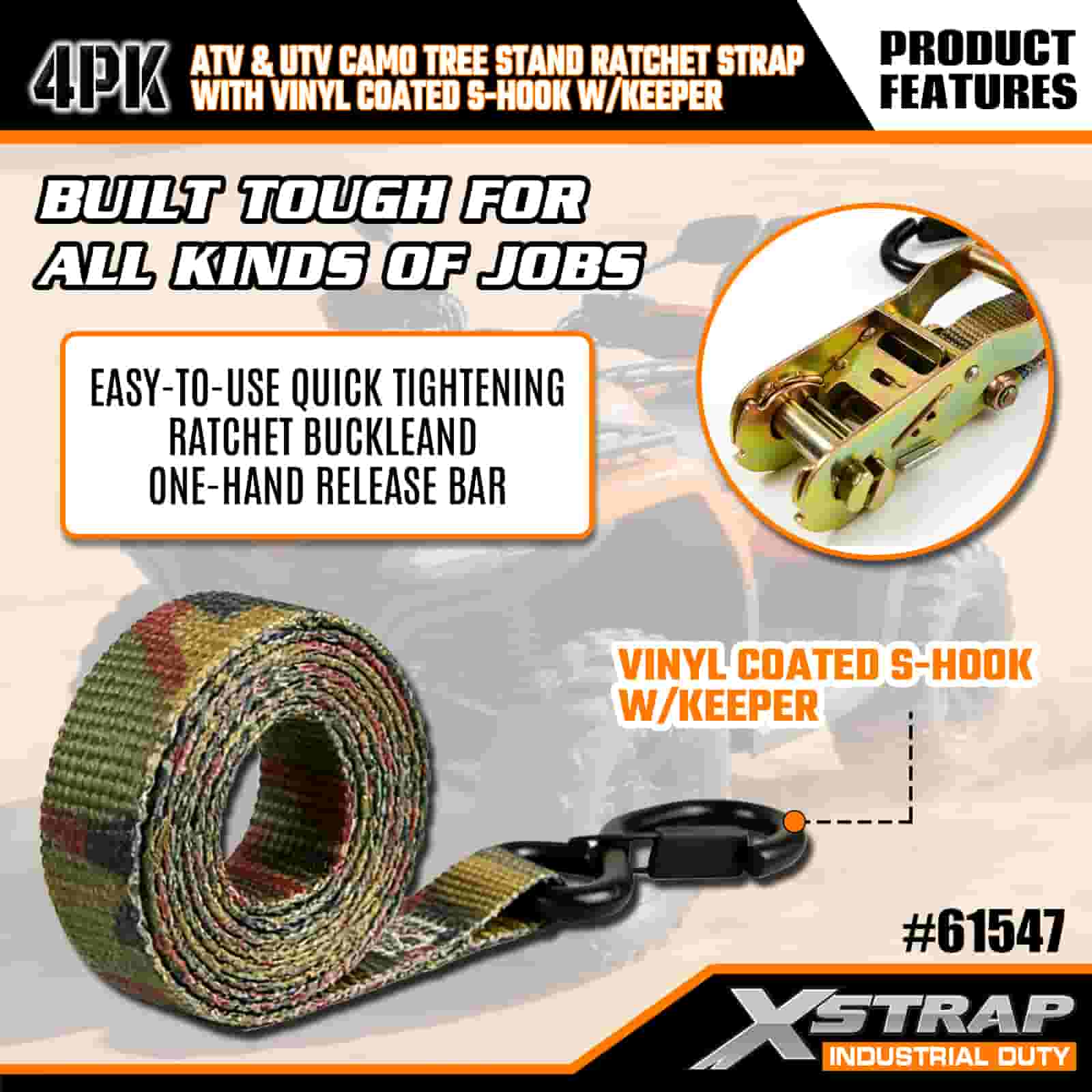 Xstrap 4PK Ratcet Ratchet Strap na may Vinyl Coated Safety S Hooks, 1” x 8’ Polyester Tie Down Strap Ratchet Strap, 400lbs Kapasidad Cargo Lashing Securing Straps na may Safety S Hooks para sa Trailer, Flat Bed Trailer Ski Boat, Maliit na Kotse, Malakas na Kagamitan.