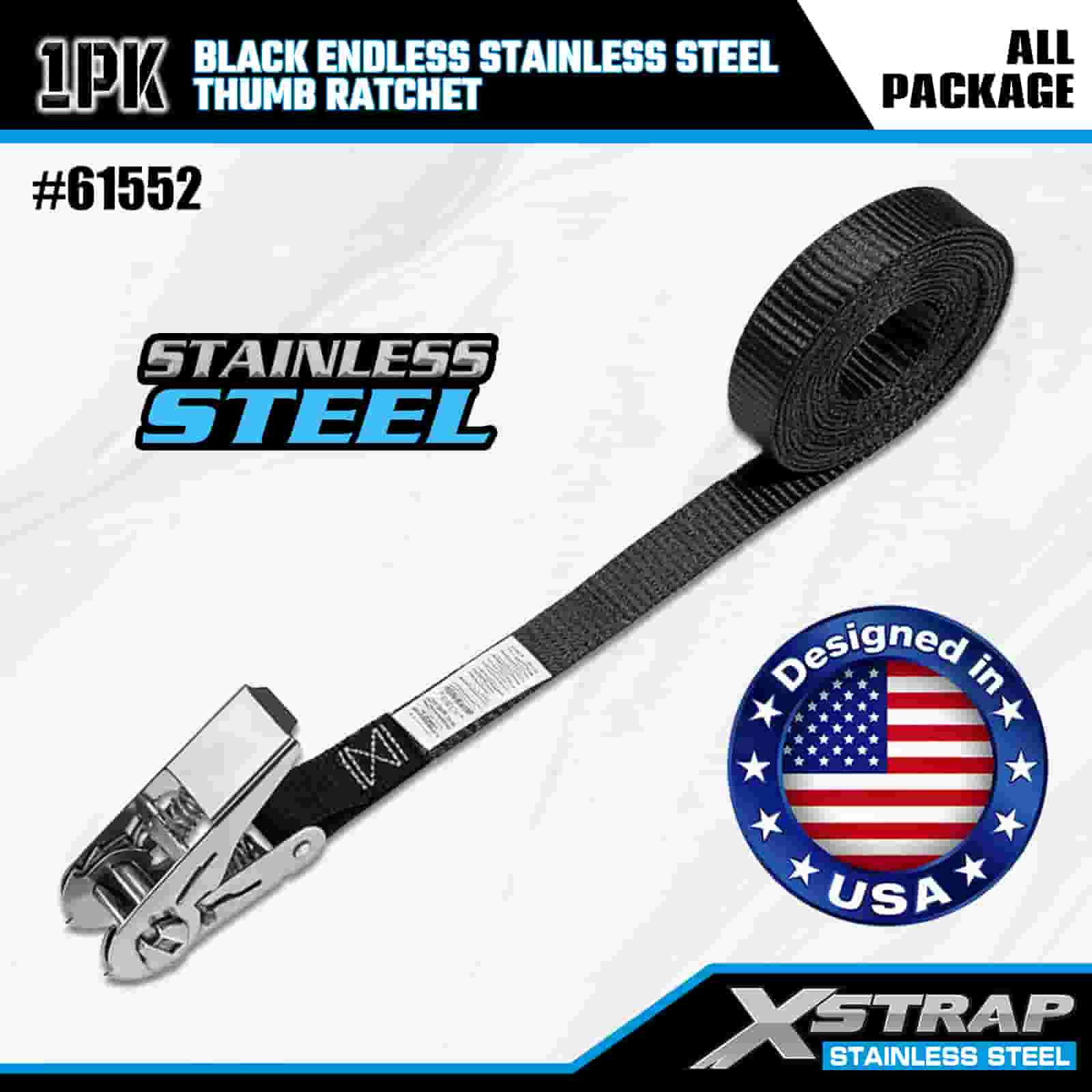 1” x 15’ Black Endless Stainless Steel Thumb Ratchet