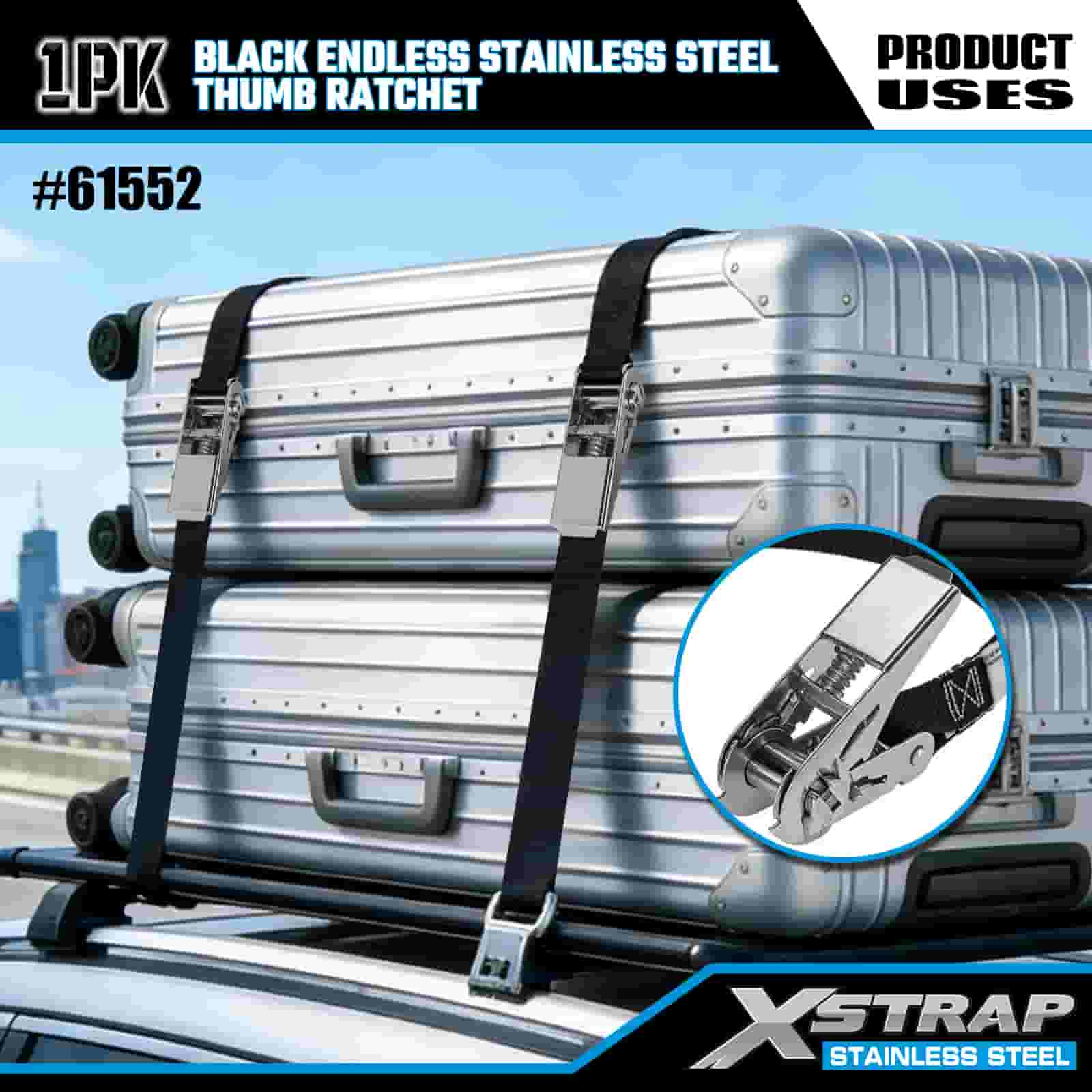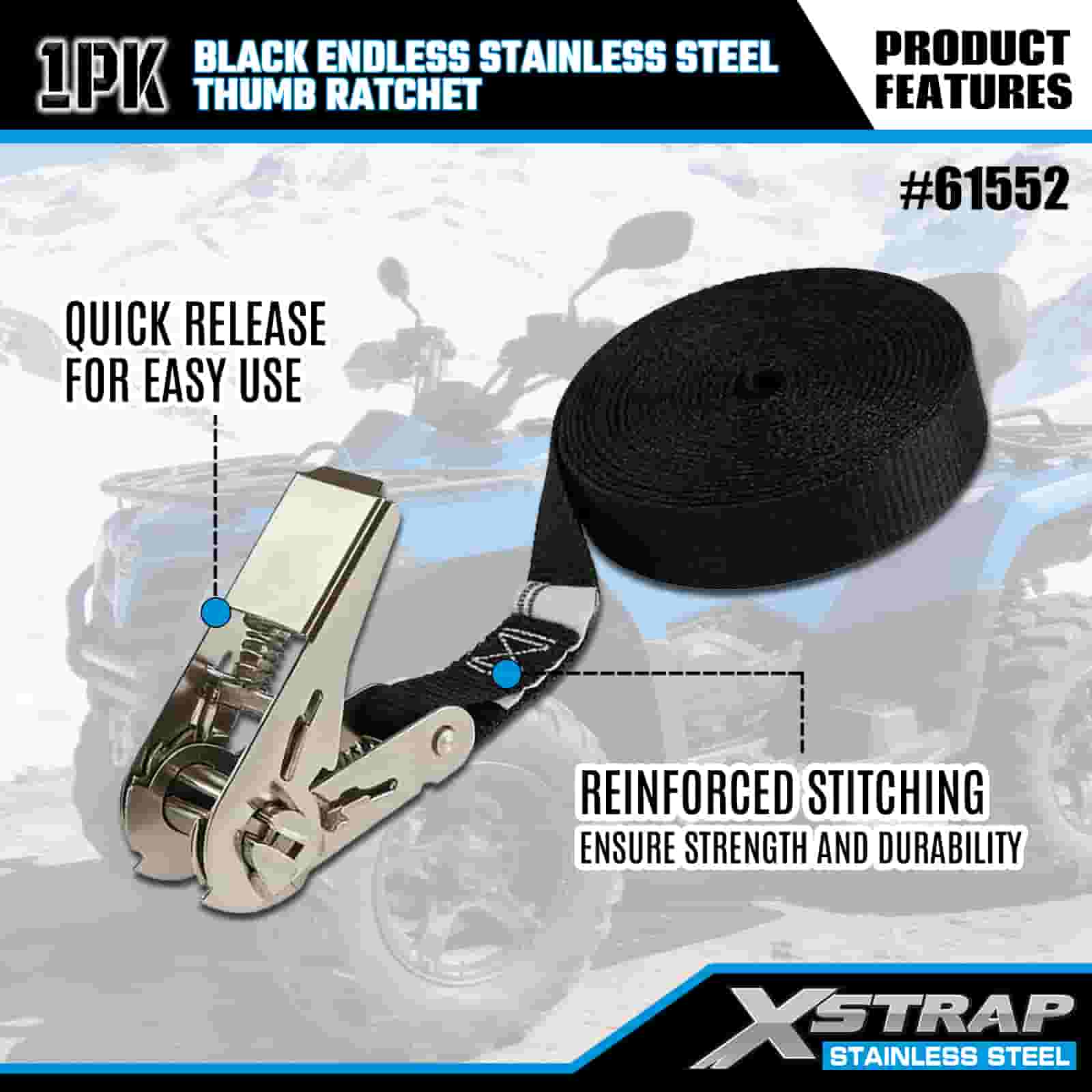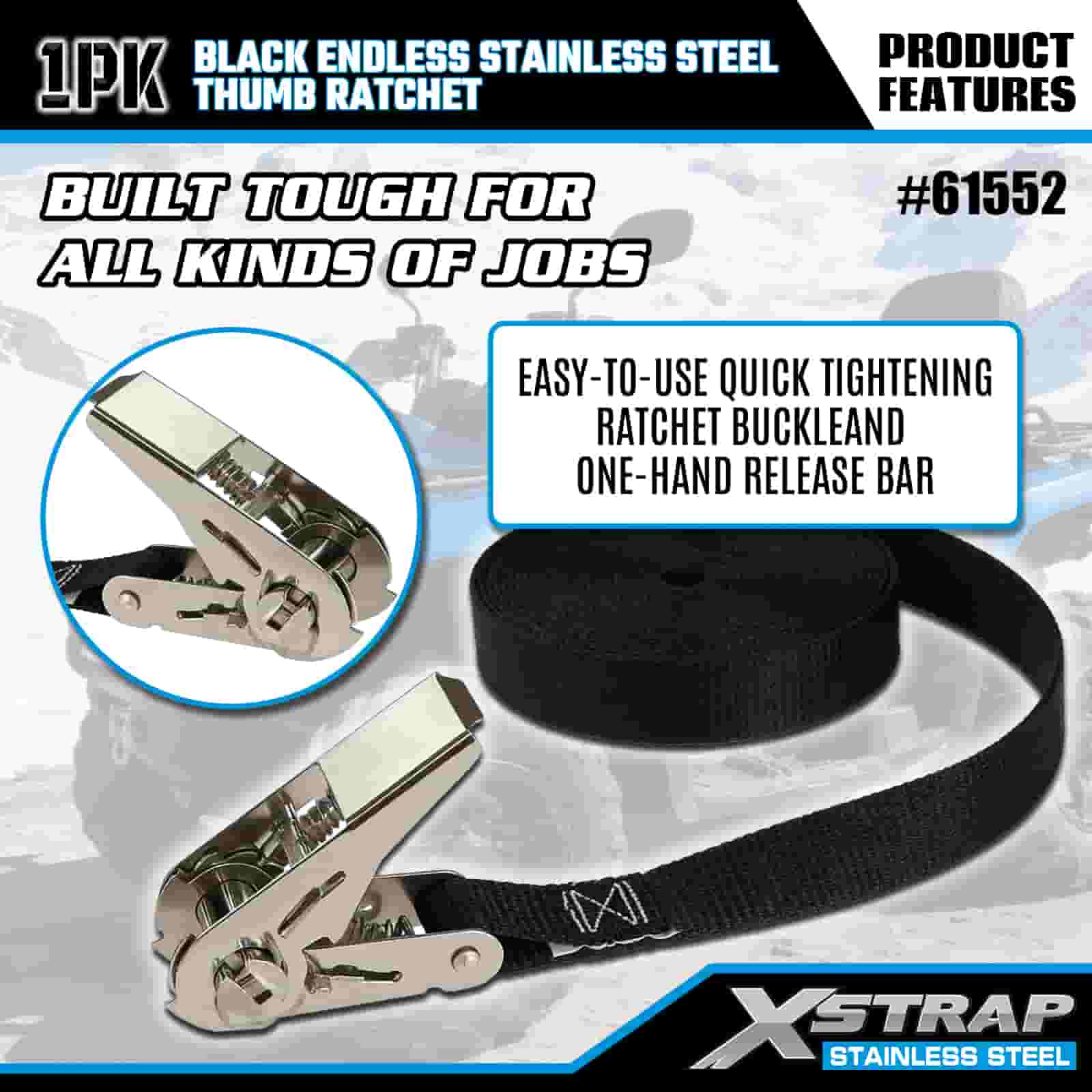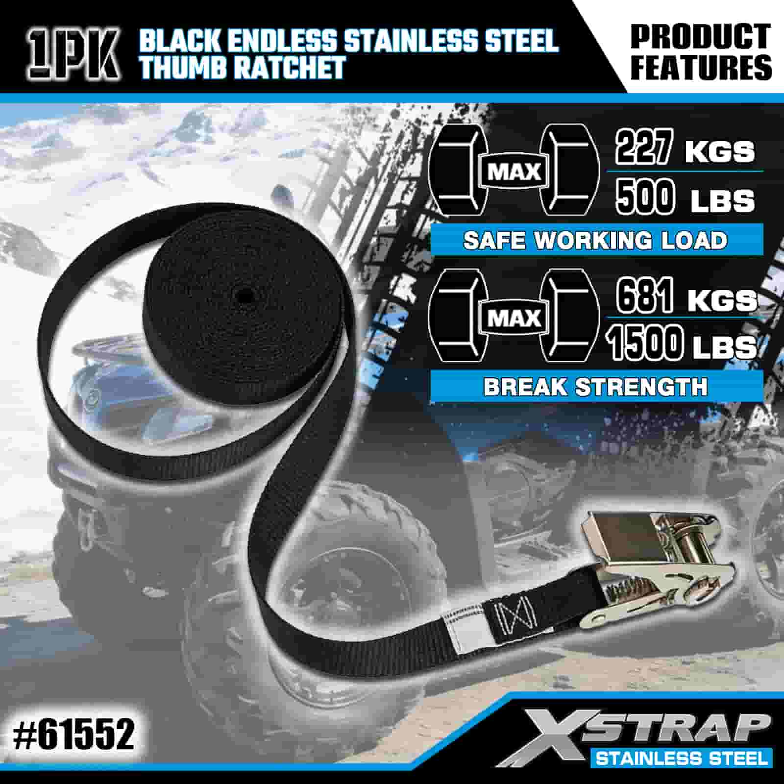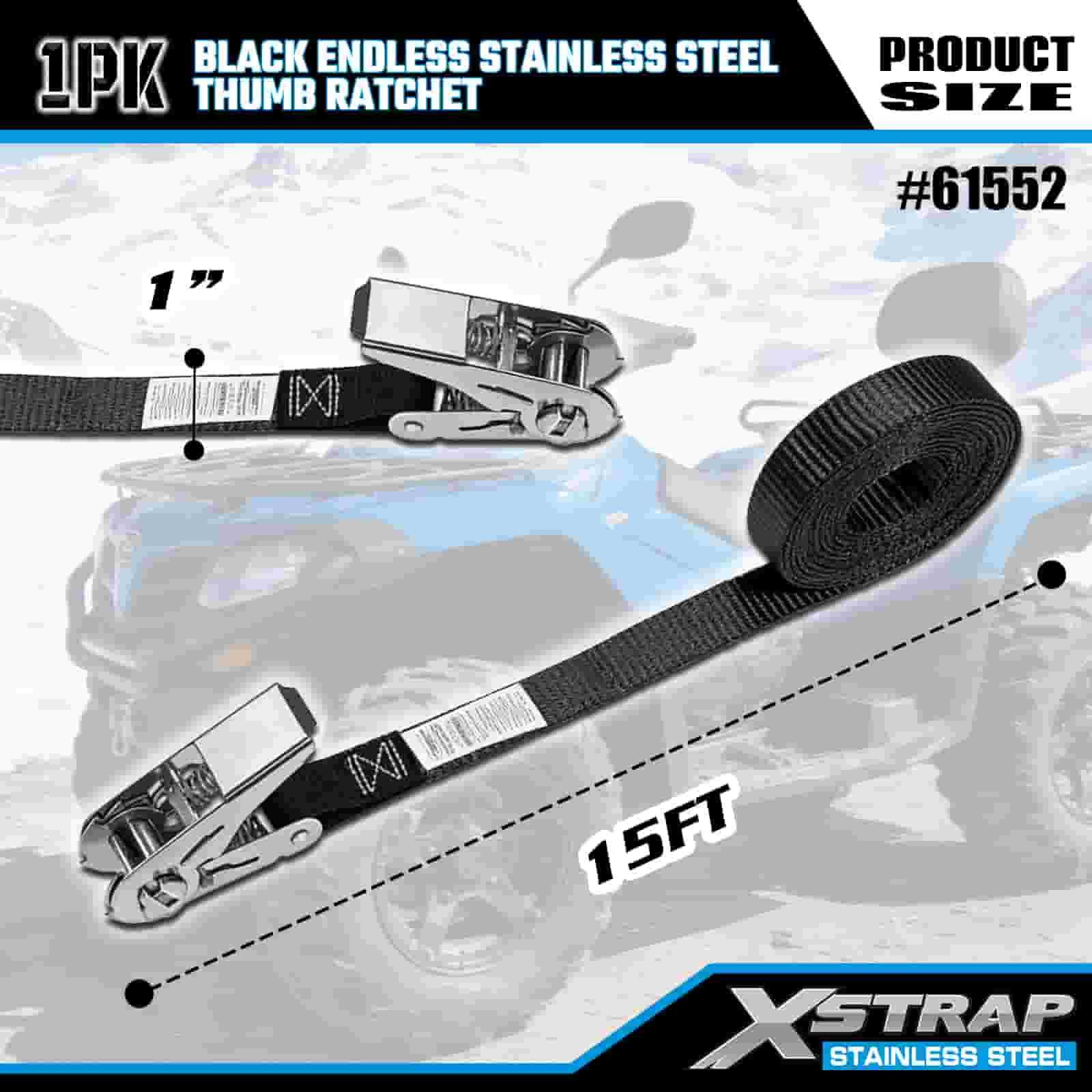 Xstrap Itim Endless Stainless Steel Thumb Ratchet, 1” x 15’ Polyester Tie Down Strap Ratchet Strap, 500lbs Kapasidad Cargo Lashing Securing Straps para sa Trailer, Flat Bed Trailer Ski Boat, Maliit na Kotse, Malakas na Kagamitan.