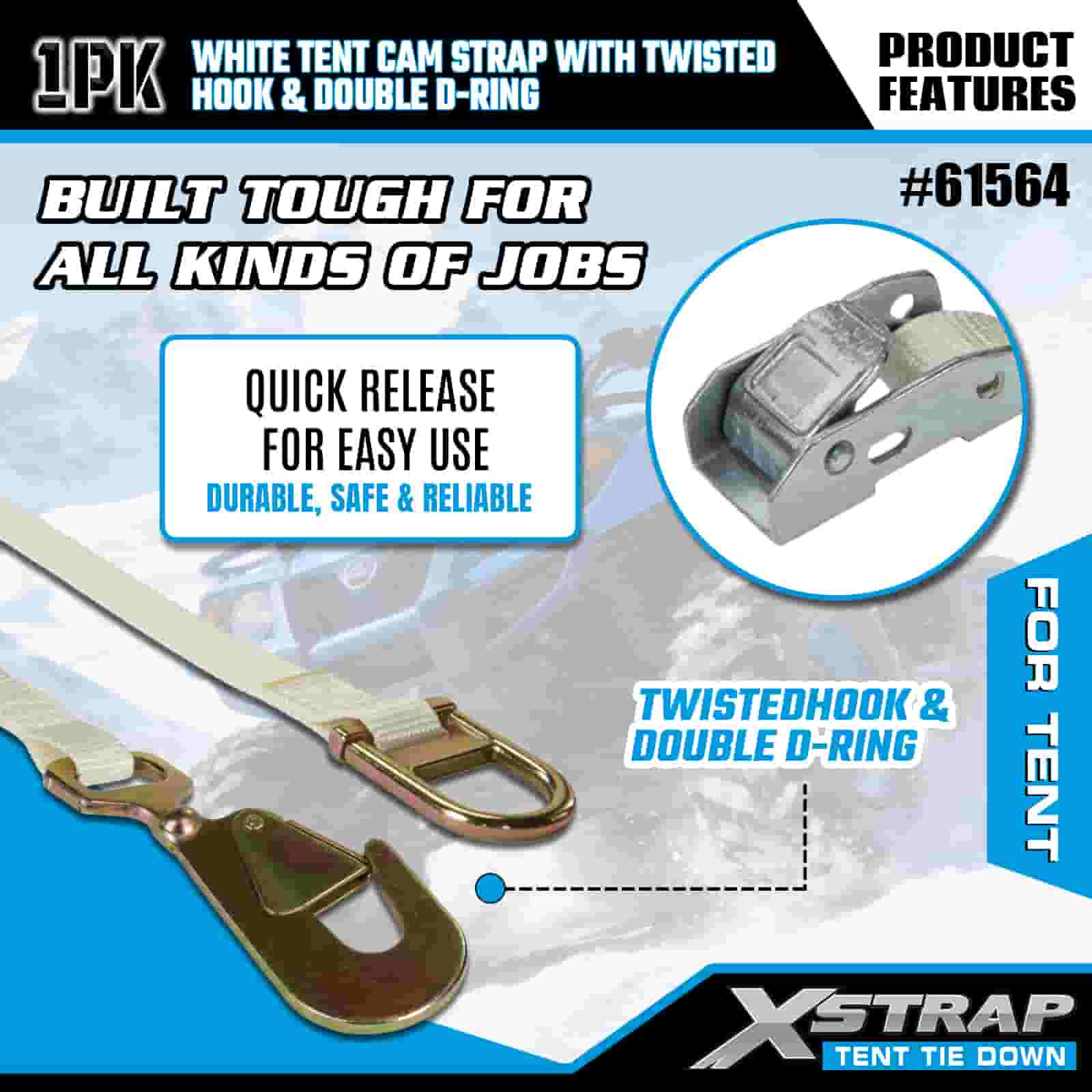 - Mahalaga ang Camping at Event, Binuo para sa Hangin at Panahon: Partikular na idinisenyo para i-secure ang mga tent, canopy, at silungan ng event, pinapanatili ng cam strap na ito ang iyong outdoor setup na stable kahit sa bugso ng hangin o ulan. Tinitiyak ng 20 taon ng kadalubhasaan sa pagkontrol ng kargamento ng XStrap na mananatiling nakaangkla ang iyong kanlungan, anuman ang hula.