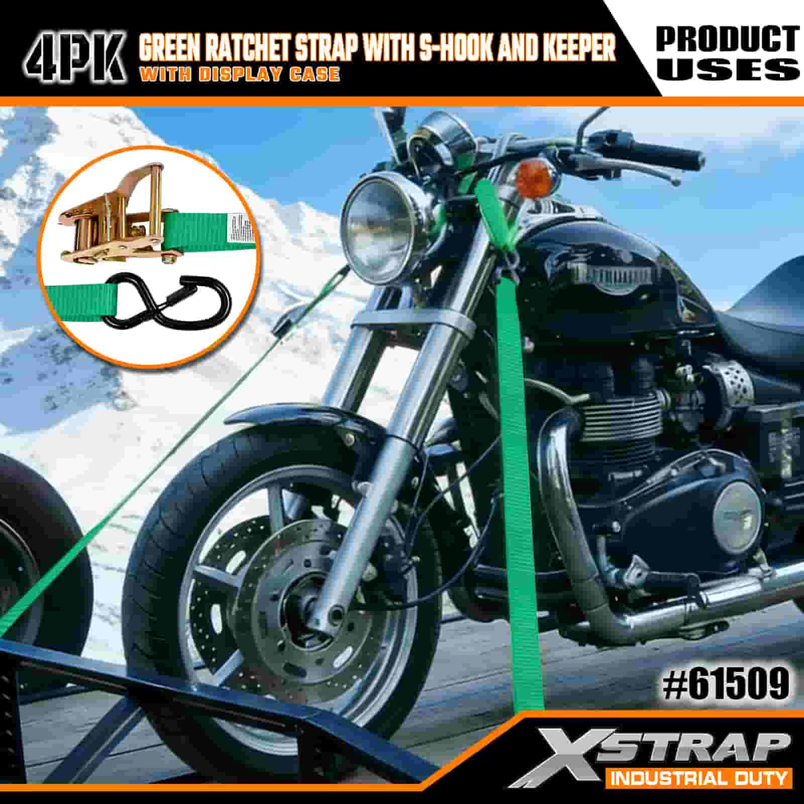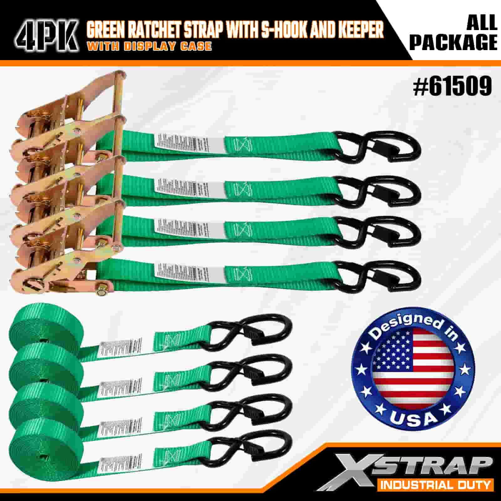 Xstrap 4 Pack Ratchet Strap na may Safety S Hooks, 1" x 15' Polyester Tie Down Strap Pull Ratchet Strap, 400lbs Kapasidad Cargo Lashing Securing Straps na may Safety S Hooks para sa Seryosong Propesyonal sa Pag-secure ng Cargo Trailer, Flat Bed Trailer, Ski Boat, Maliit na Kotse.