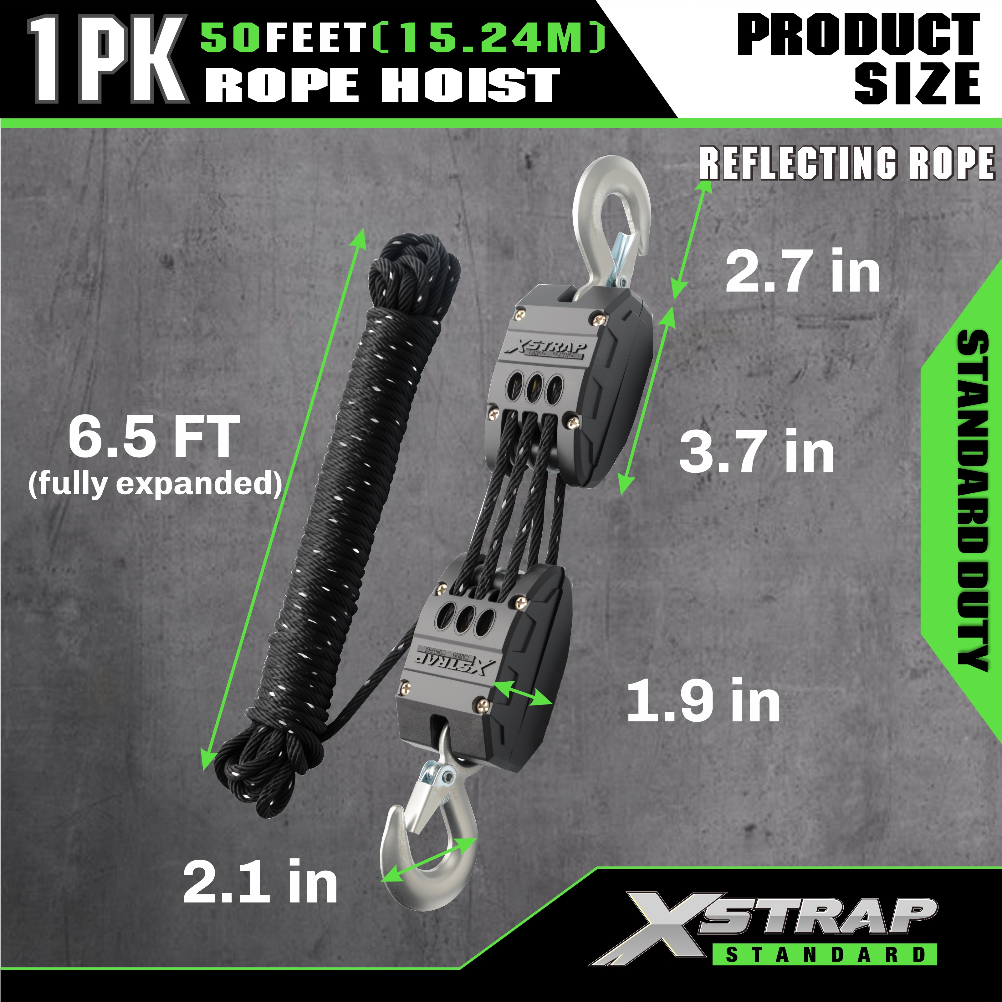 XSTRAP AHLT0003-reflective black Rope Hoist Pulley System 1000LB