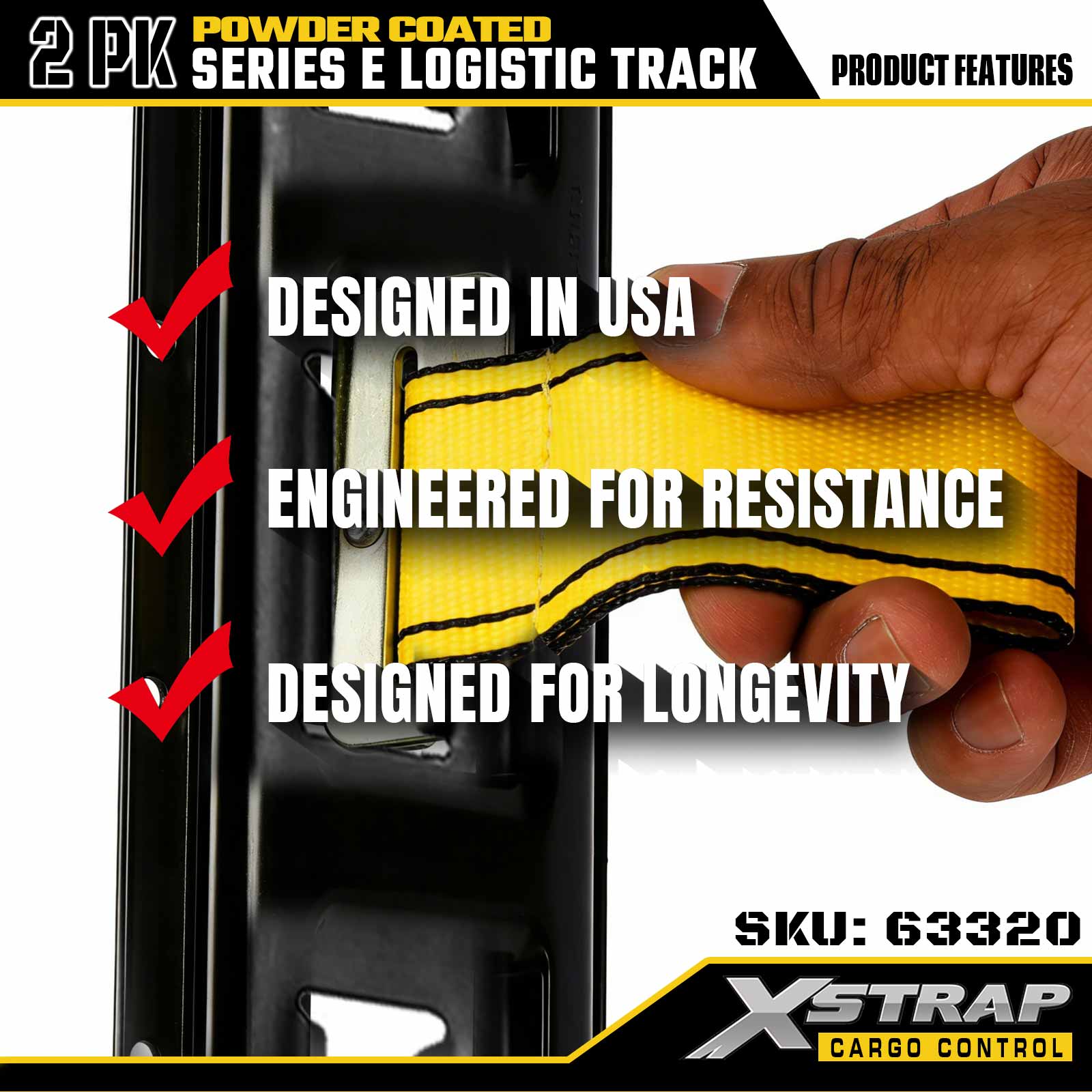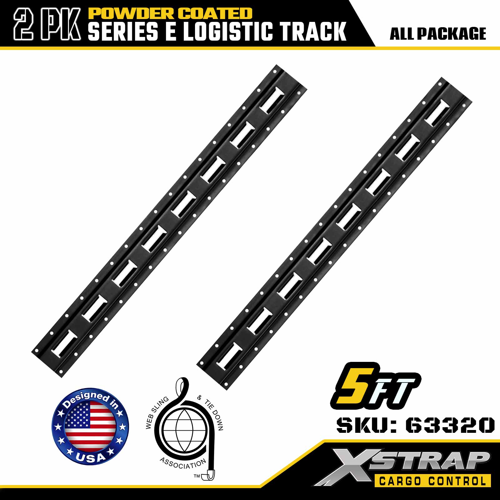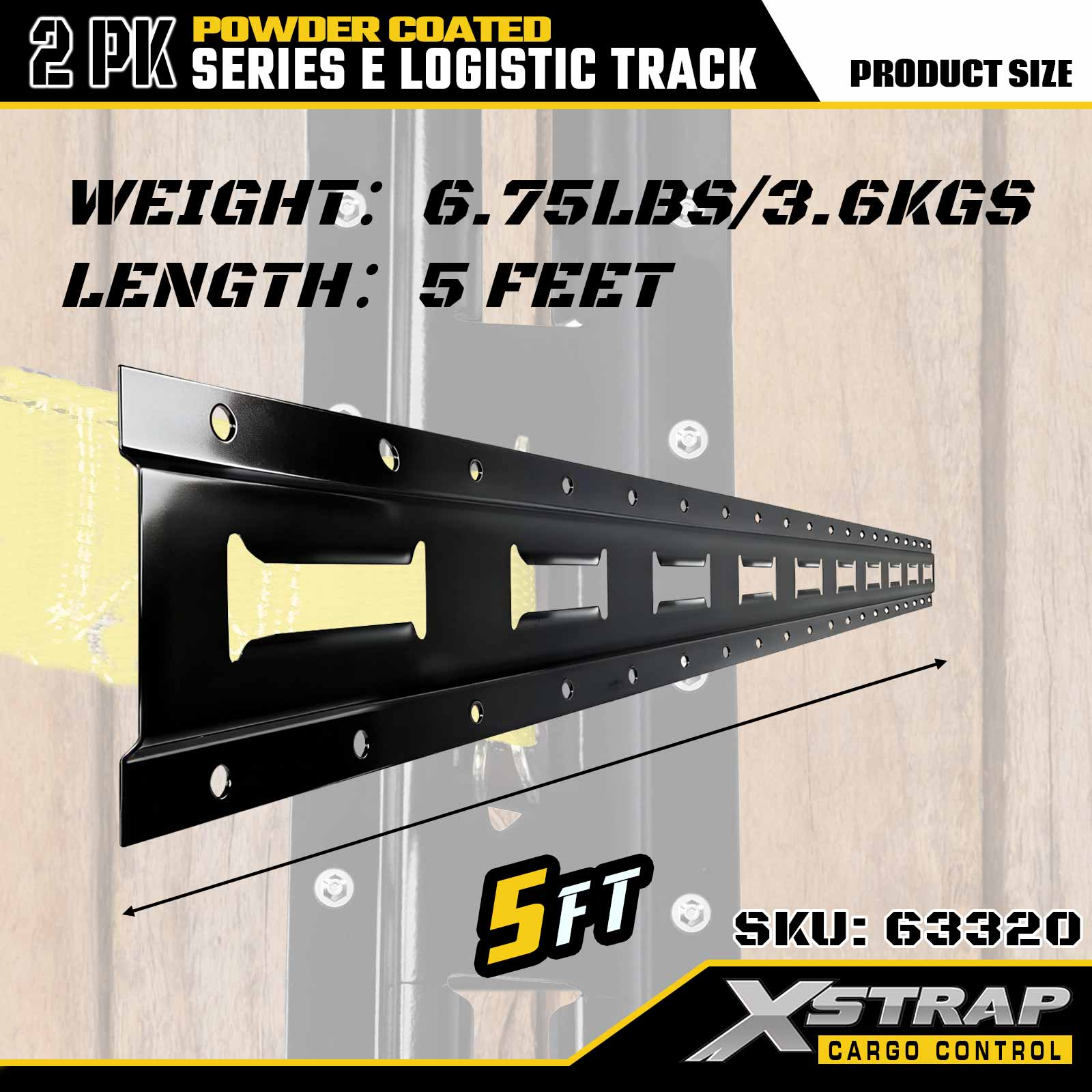 Xstrap 63320 5 ' Gray E-Type Logistics Rail - 12-Gauge Steel na may Powder Coating, 6000LBS Load Kapasidad, 2PK para sa Cargo Restraint