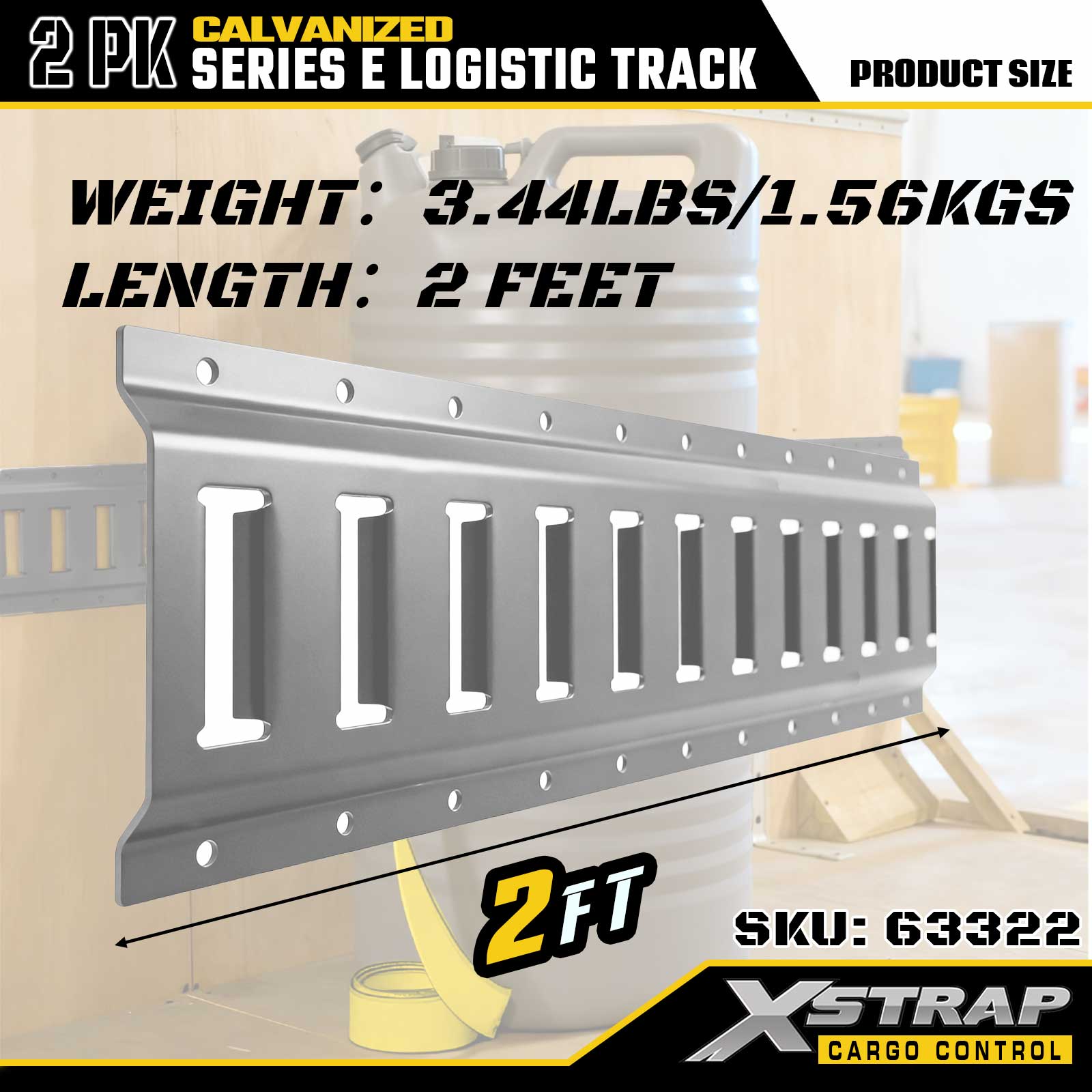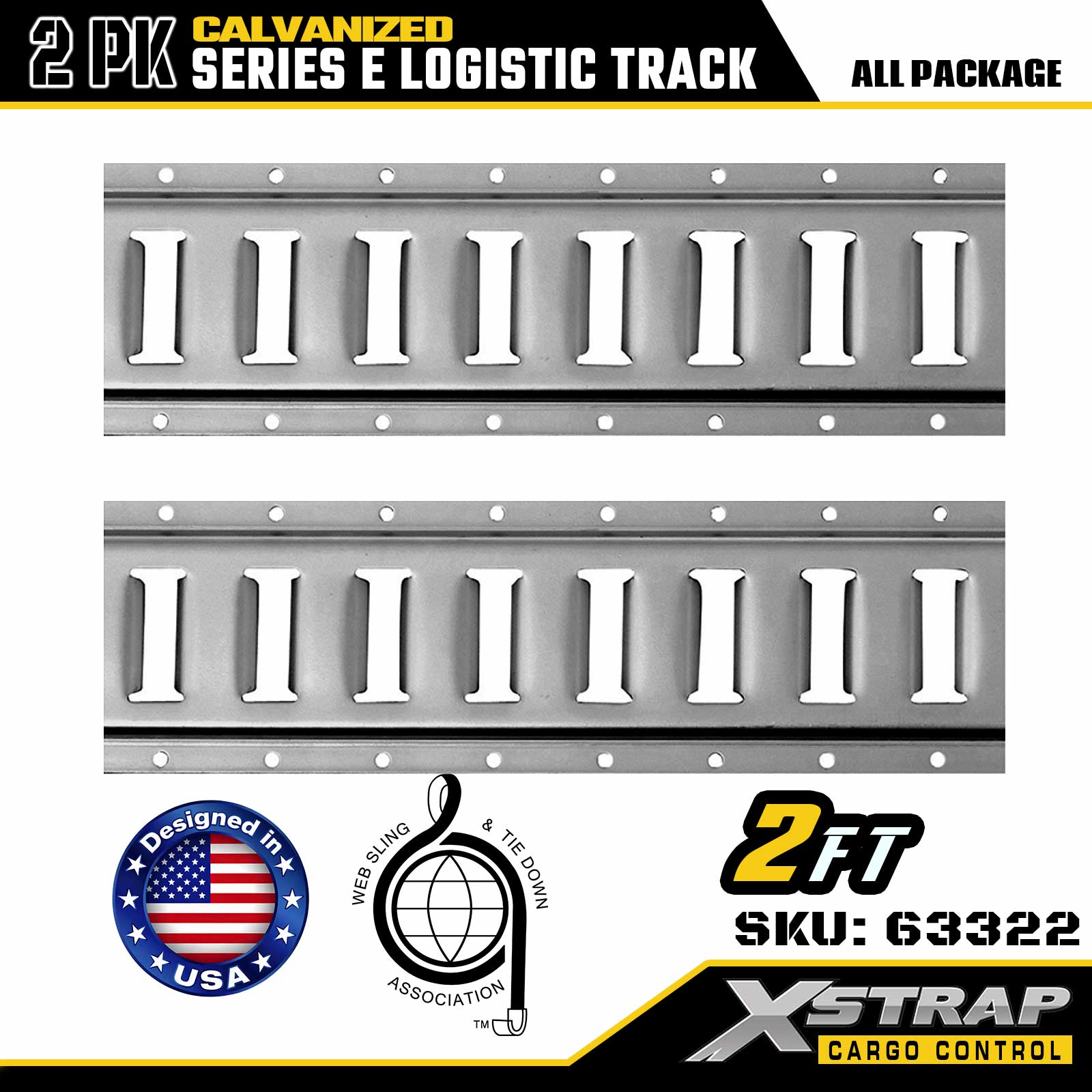 Xstrap 63322 2ft Electroplated Silver E-Type Cargo Rail - 12-Gauge Steel na may Galvanized Coating, 6000LBS Load Rating, 2PK para sa