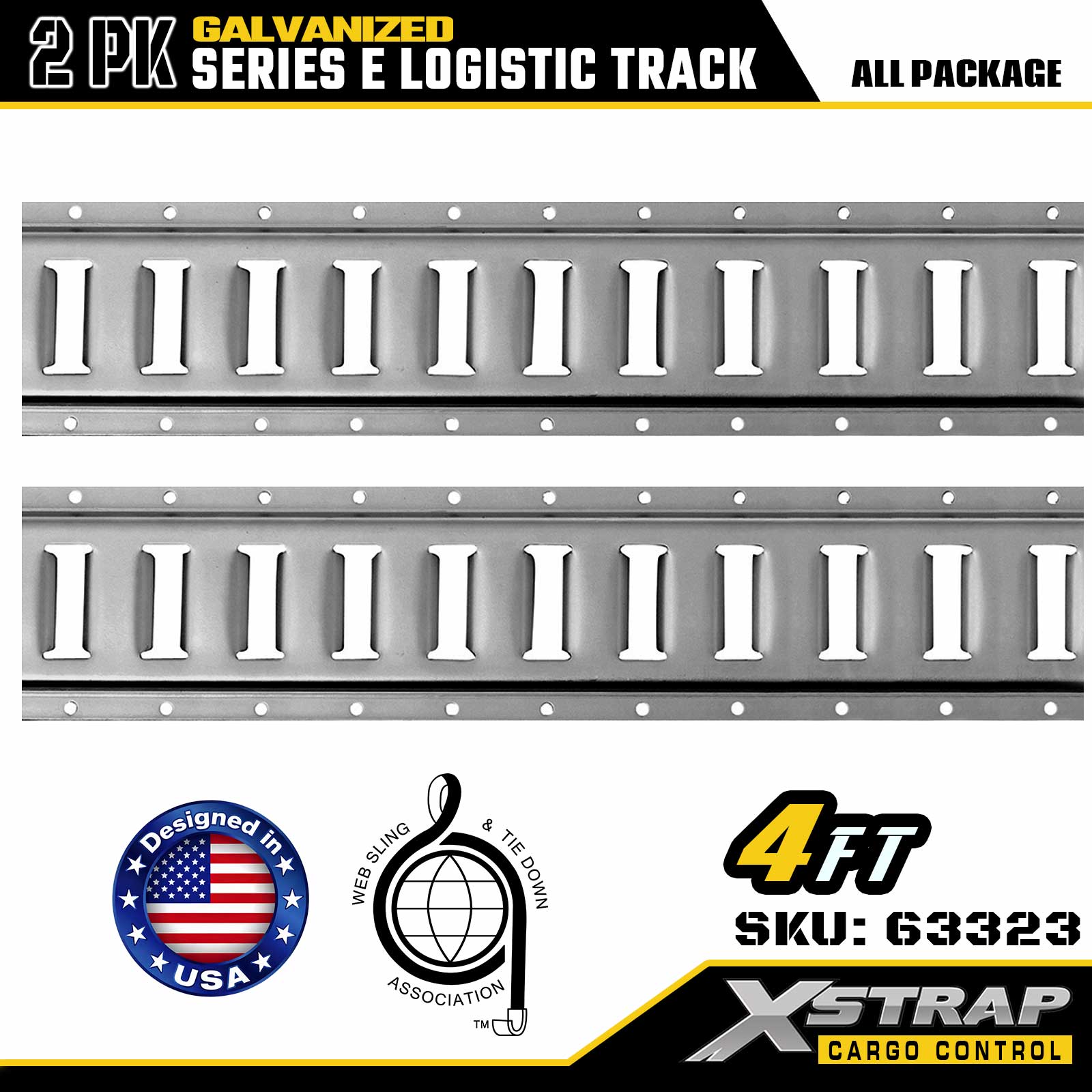 Xstrap 63322 4ft Electroplated Silver E-Track Tie-Down Rail - 12-Gauge Steel na may Galvanized Finish, 6000LBS Load Kapasidad, 2-Pack para sa Cargo Securing