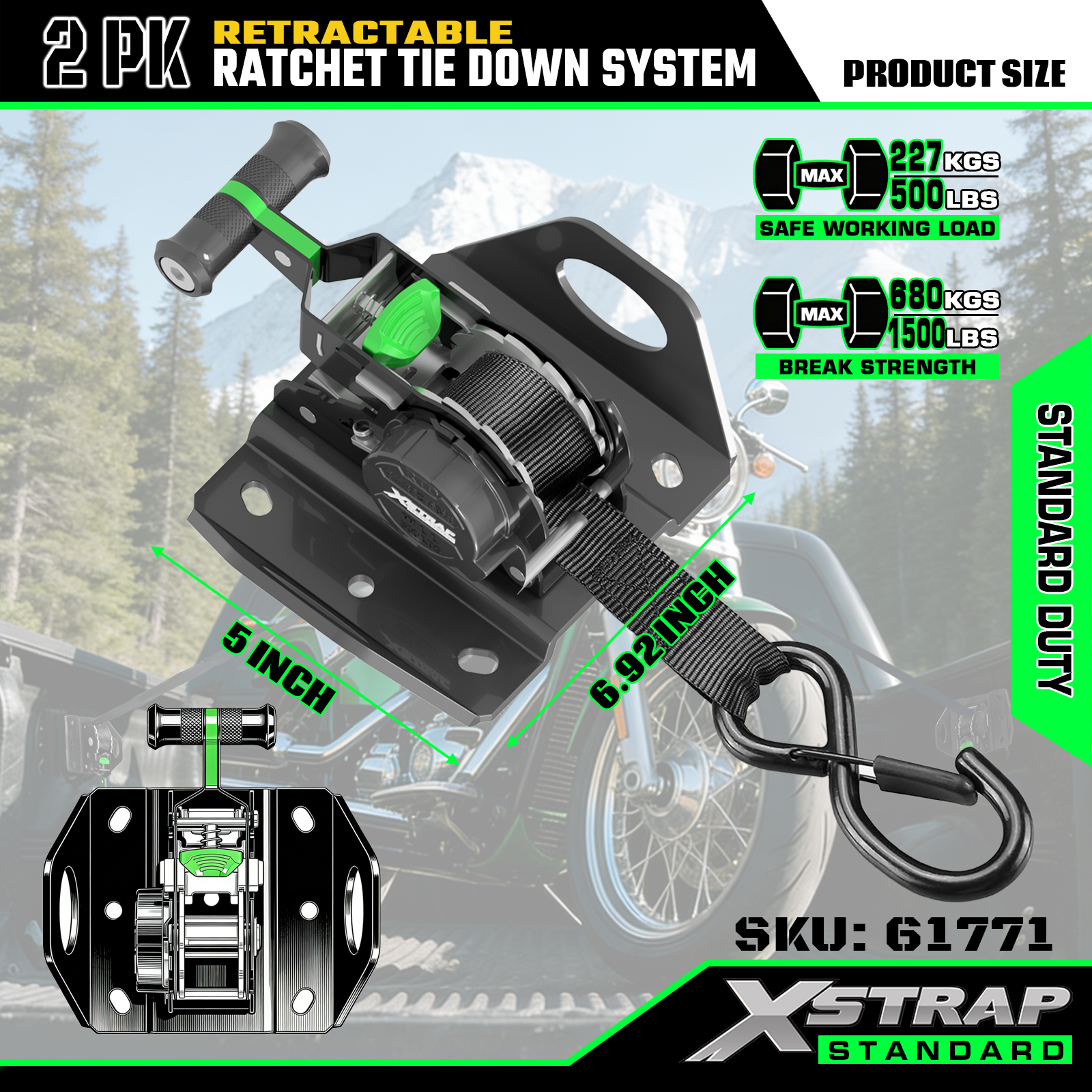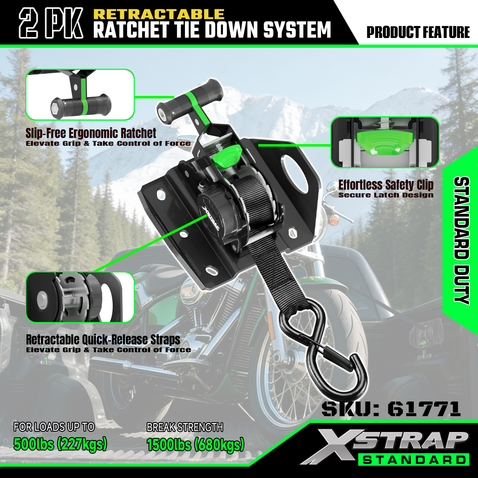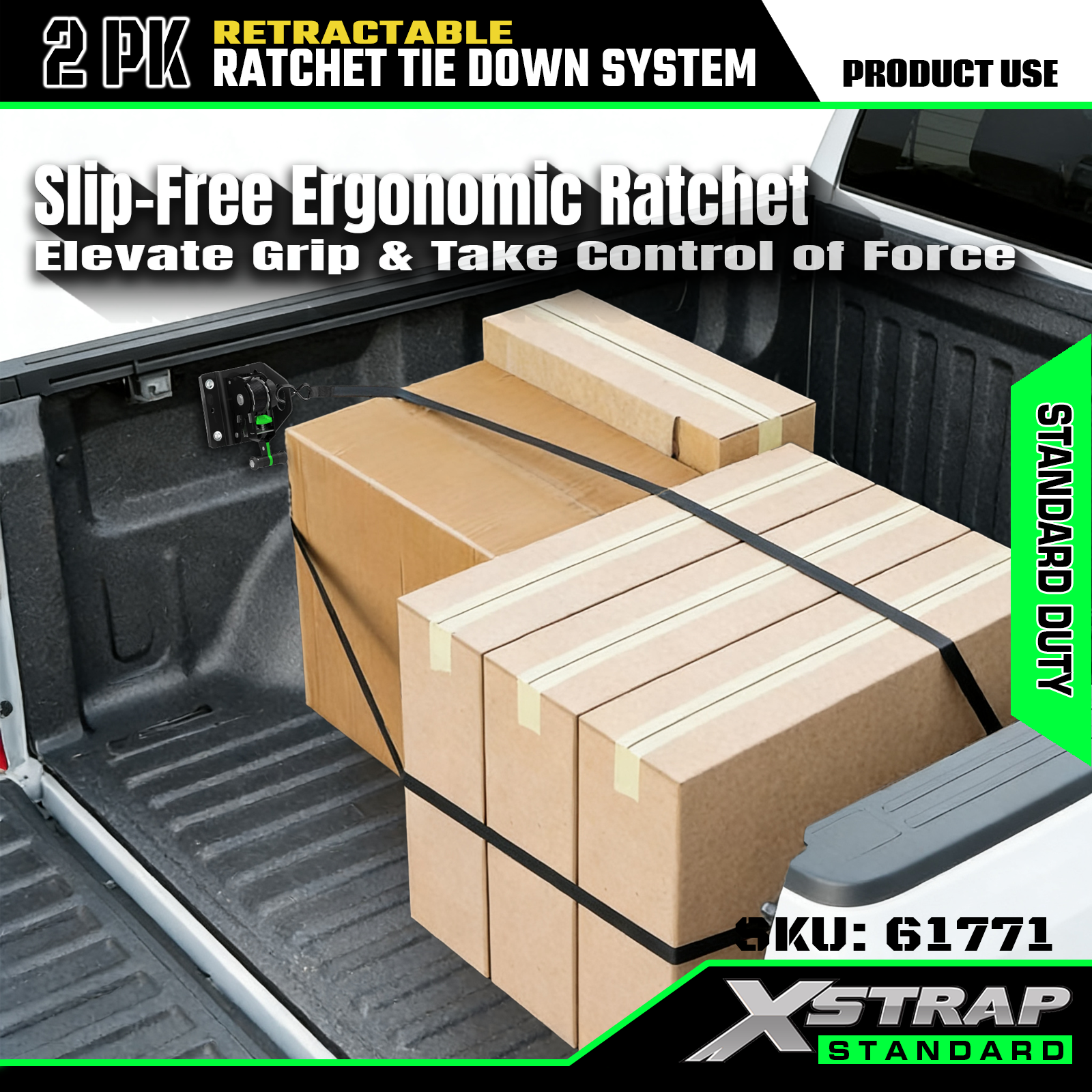 Ang Xstrap 61771 na Retractable Ratchet Straps ay Kasya para sa F150 Car Accessories 500LB SWL