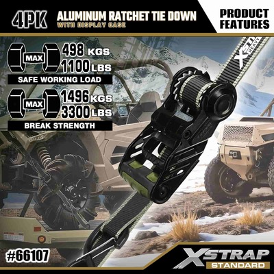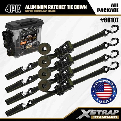 Xstrap 4 Pack aluminyo Ratchet Tie Down, 1-1/4" x 14' Polyester Tie Down Strap na may malambot na loop Pull Ratchet Strap, 1000lbs Kapasidad Cargo Lashing Securing Straps na may Safety S Hooks para sa Cargo control Pickup Truck, SUV, Car Top Racks Motorsiklo.