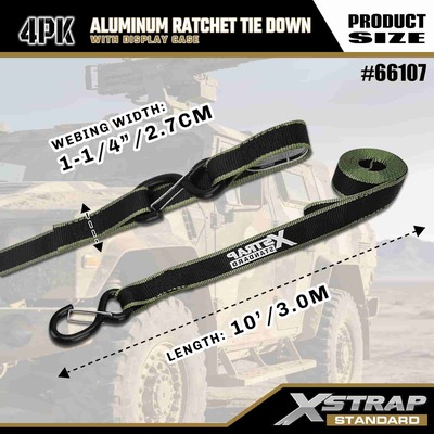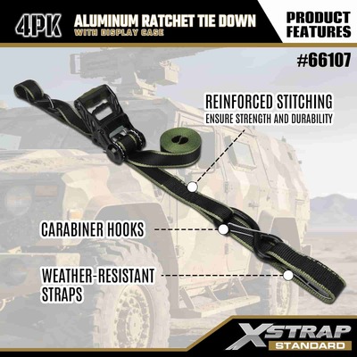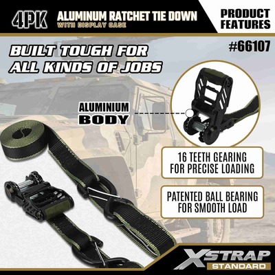 1-1/4" x 14’ 4PK Aluminum Ratchet Tie Down Straps