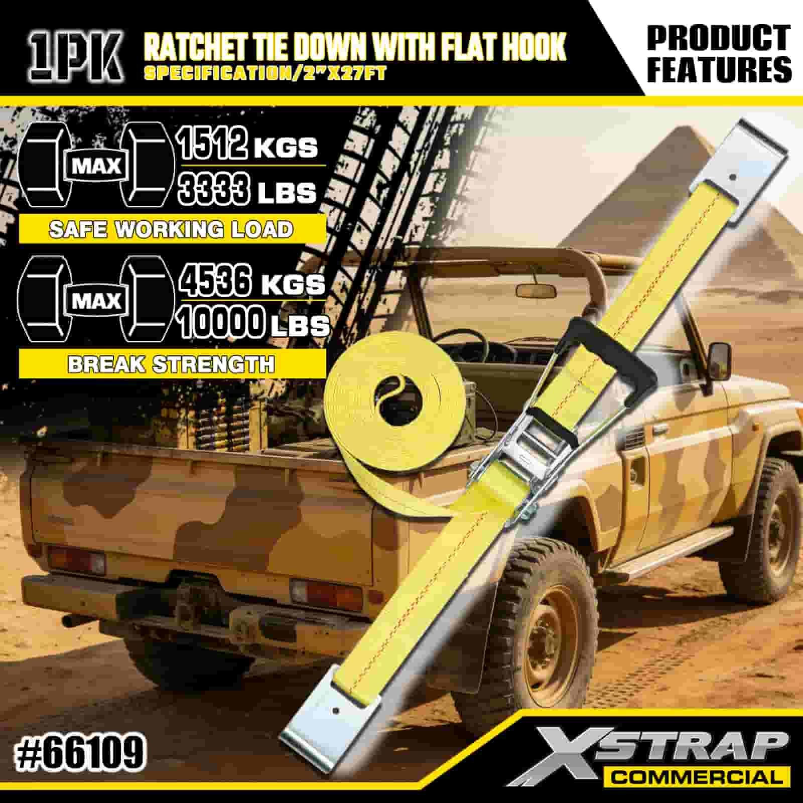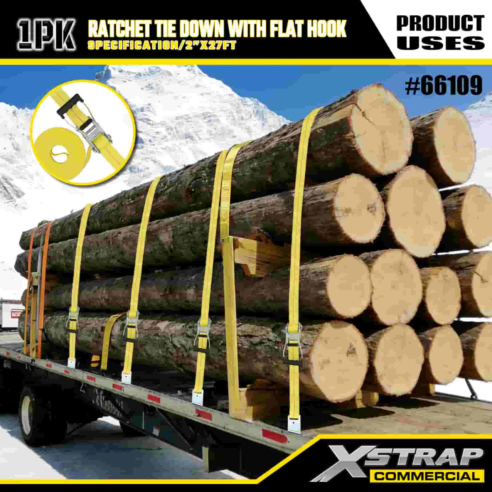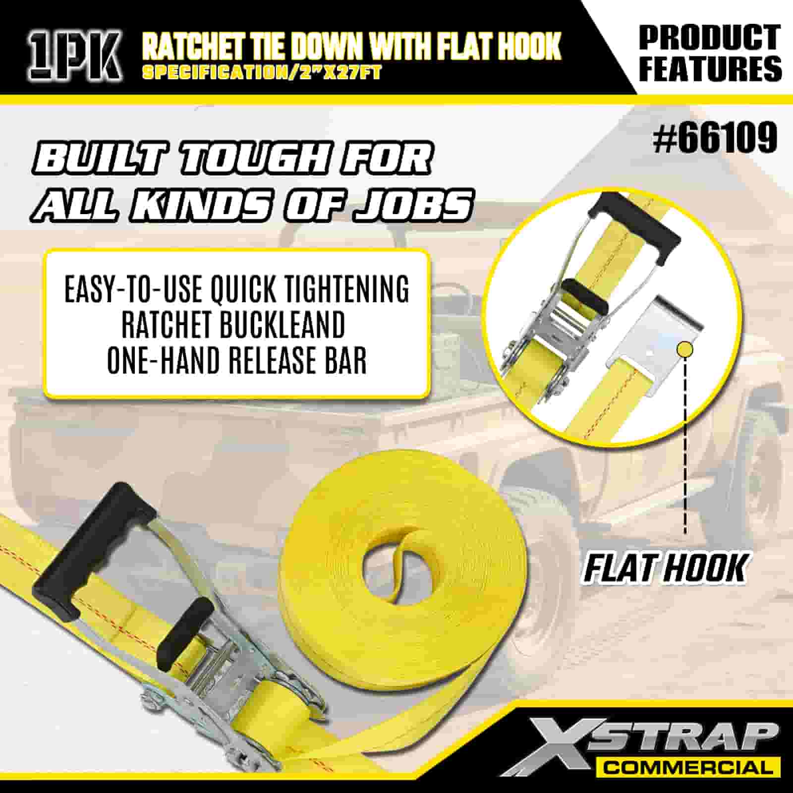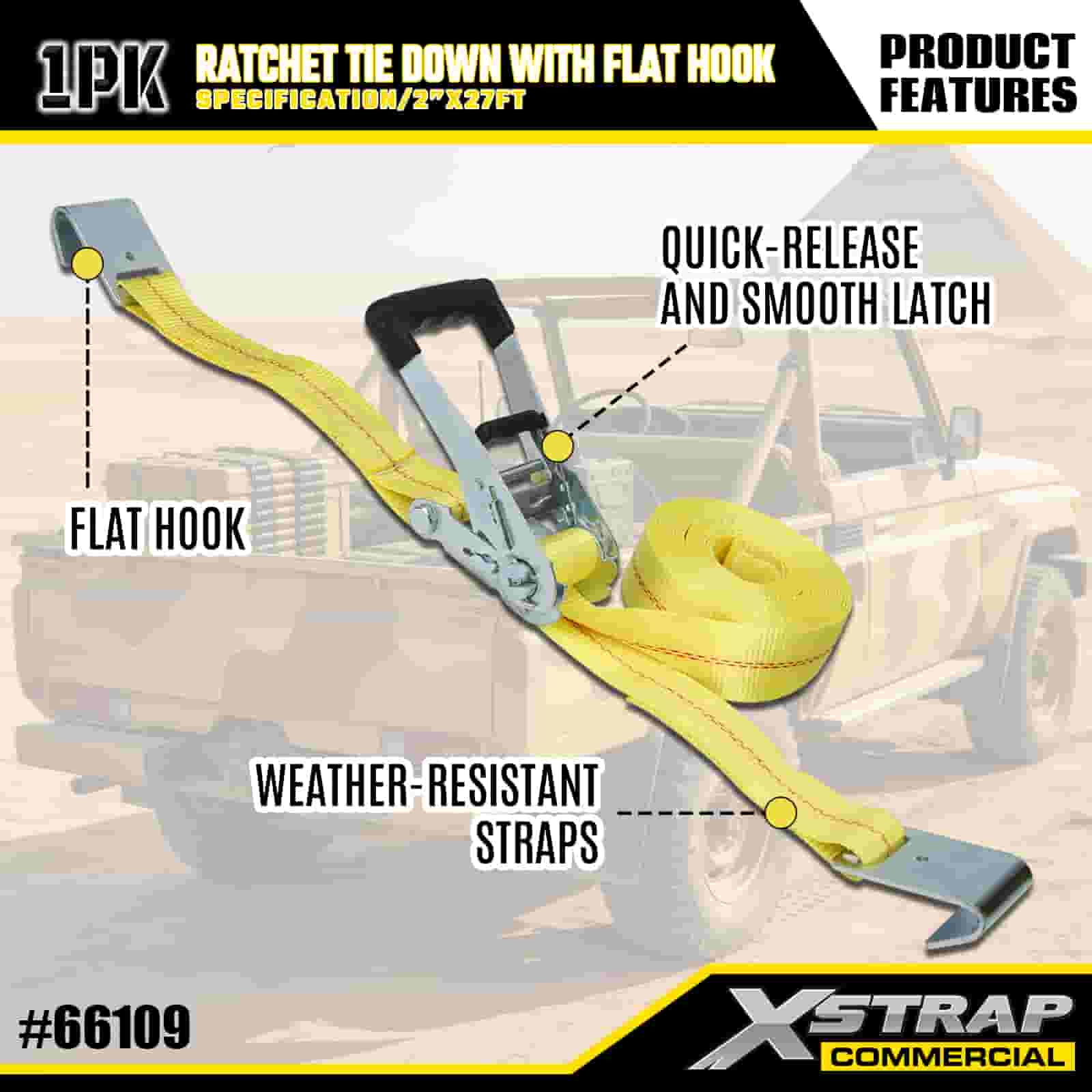 2” x 27’ Ratchet Tie Down gamit ang Flat Hooks