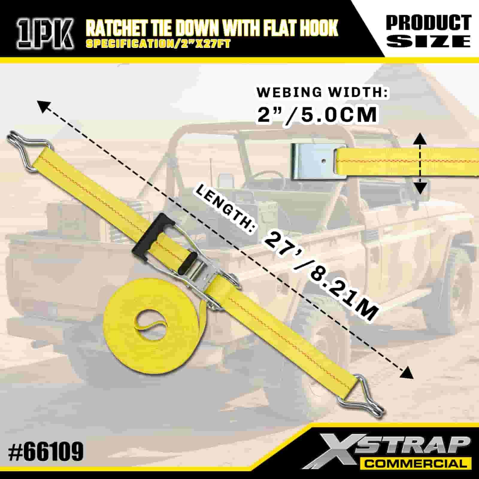 Xstrap Ratchet Tie Down na may Flat Hooks, 2" x 27' Polyester Tie Down Strap Pull Ratchet Strap, 3333lbs Kapasidad Cargo Lashing Securing Straps na may Flat Hooks para sa Cargo control Pickup Truck, SUV, Car Top Racks Motorsiklo,.