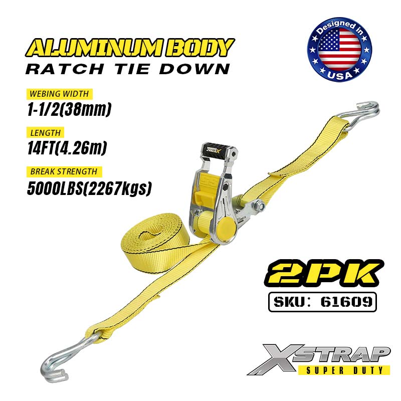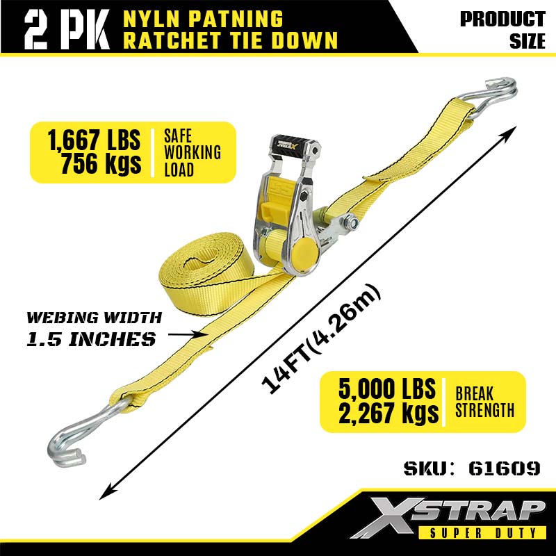 1-1/2" x 14’ 2PK Ratcet Tie Down gamit ang Double J Hooks