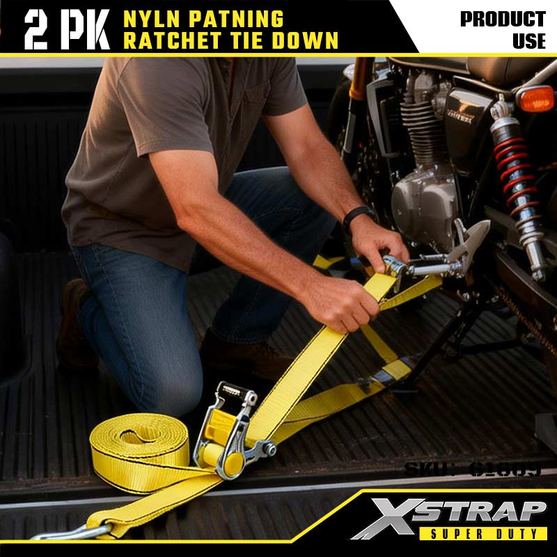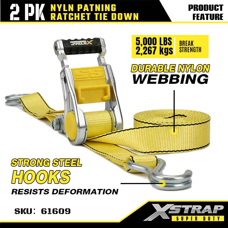 Xstrap 2PK Ratcet Tie Down na may Double J Hooks, 2” x 3.6’ Polyester Tie Down Strap Ratchet Strap, 1667lbs Kapasidad Cargo Lashing Securing Straps na may Double J Hooks para sa Heavy Duty Trailer, Flat Bed Trailer Ski Boat, Maliit na Kotse, Mabigat na Kagamitan.